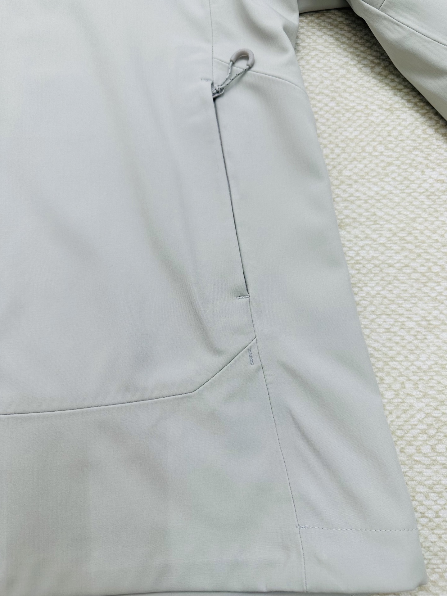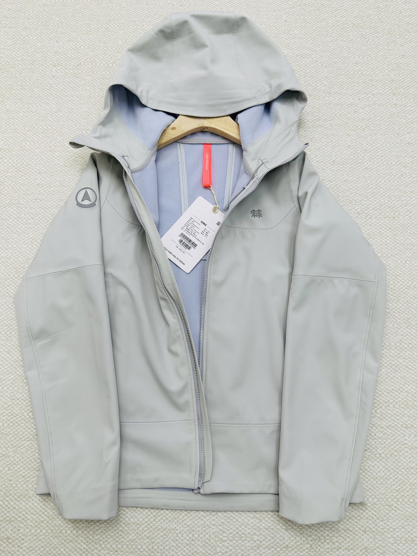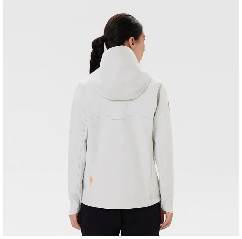 面料是90的锦纶,10的氨纶,高端的复合软壳面料,上身非常舒服,没有硬挺感,有点点弹力,活动更自如,还具有防泼水的功能结合薄薄的抓绒内衬贴合工艺,再加上成千上万个透气网的加持,让你穿着温暖舒适透气,不闷热,合身的版型,3D立体剪裁,上身更显气质,更显瘦,风帽立体剪裁,内置可塑帽檐及防风绳,调节收紧可提升防风性能,多口袋设计,可以携带随身物品,更方便,口袋内衬采用网眼抓绒面料,提升散热效率,更舒适,巨百搭,搭配任意一款裤子,都是户外达人的即视,