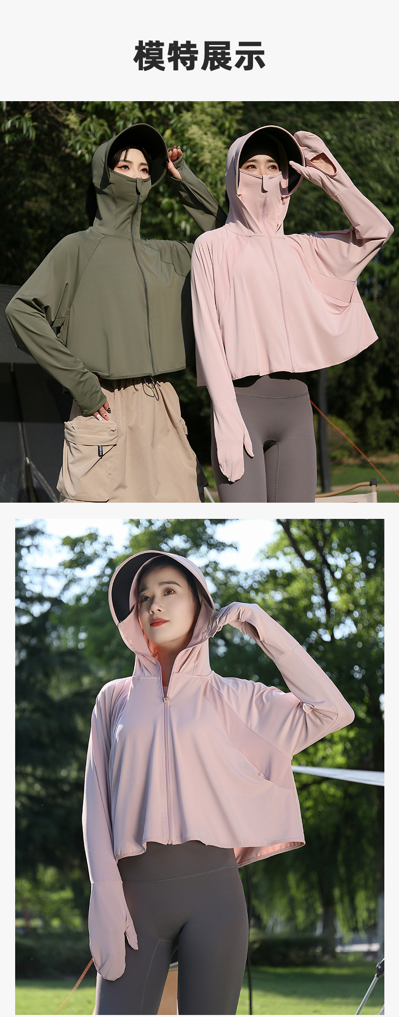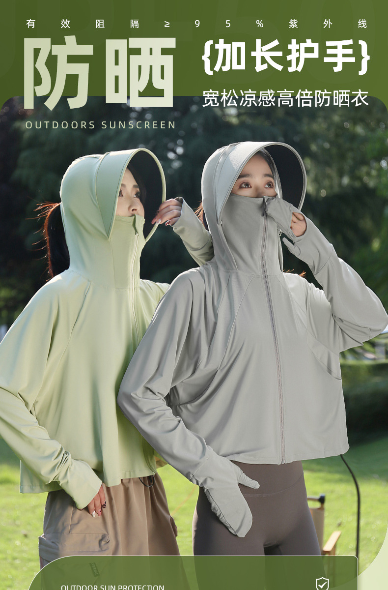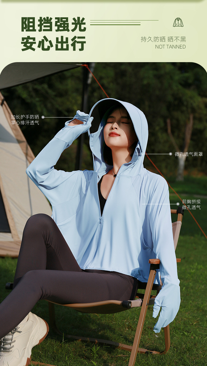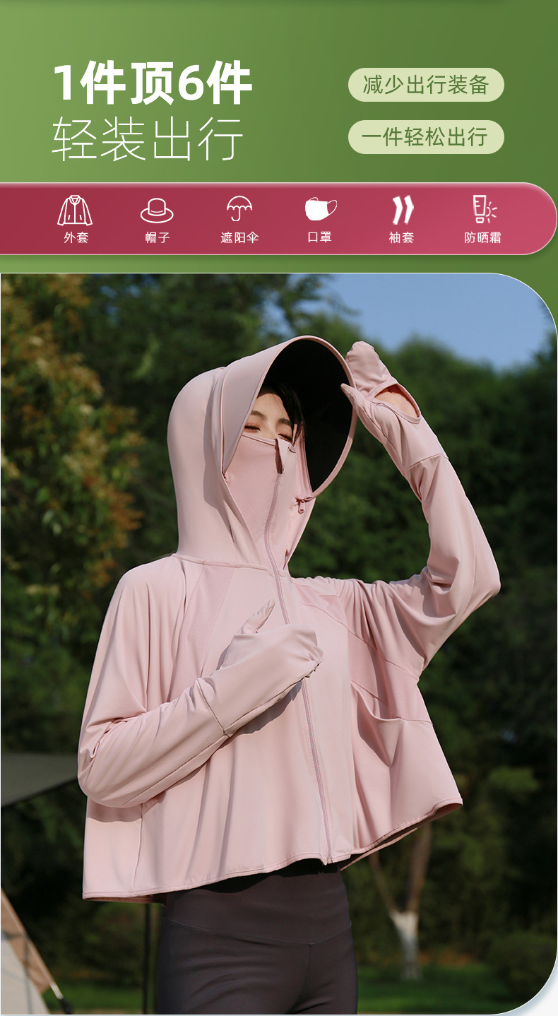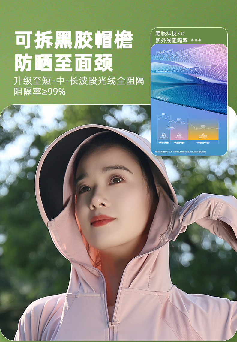 雀说新款黑胶帽檐户外防紫外线冰丝罩衫骑车薄防晒服AL2312-20