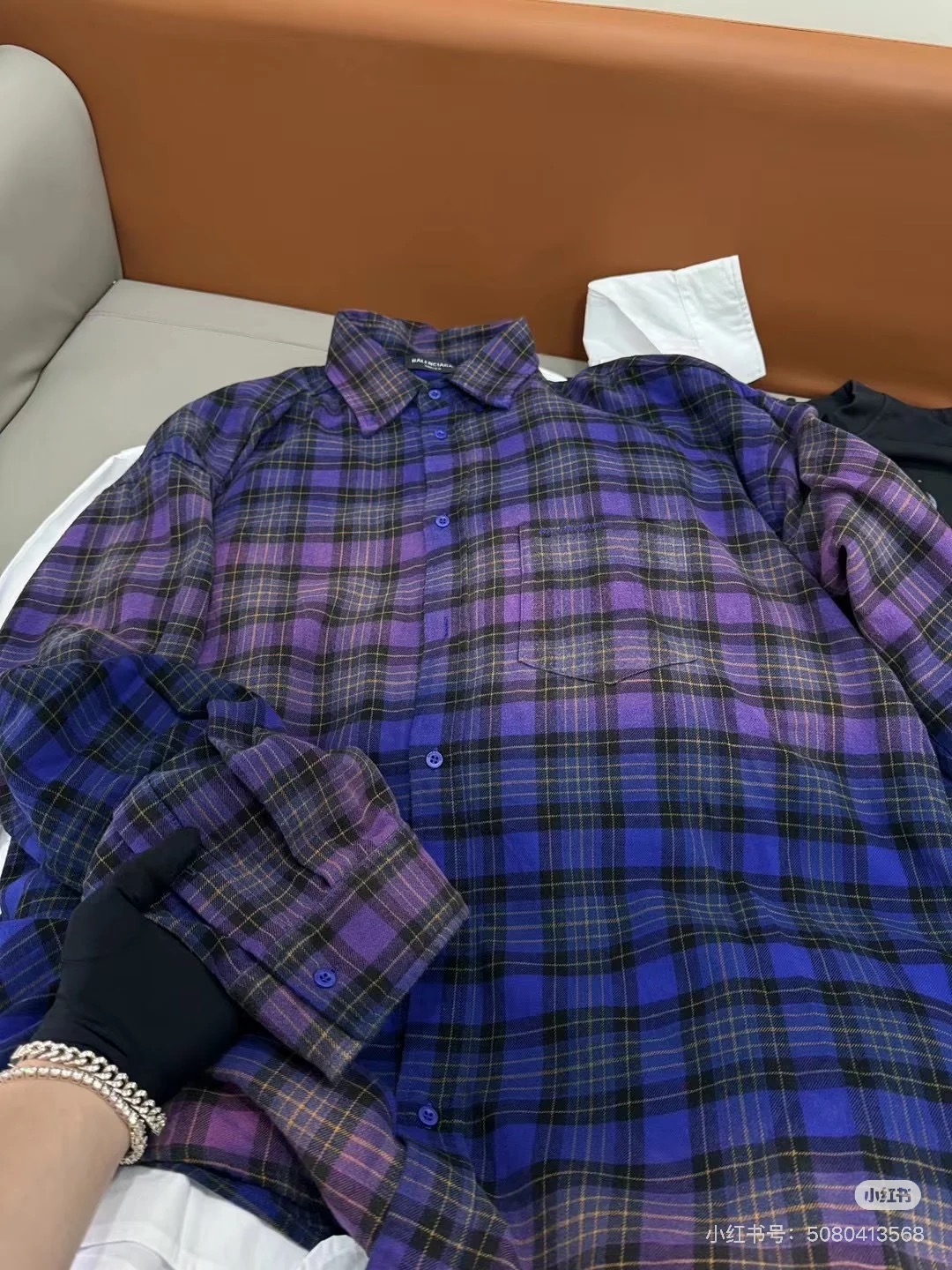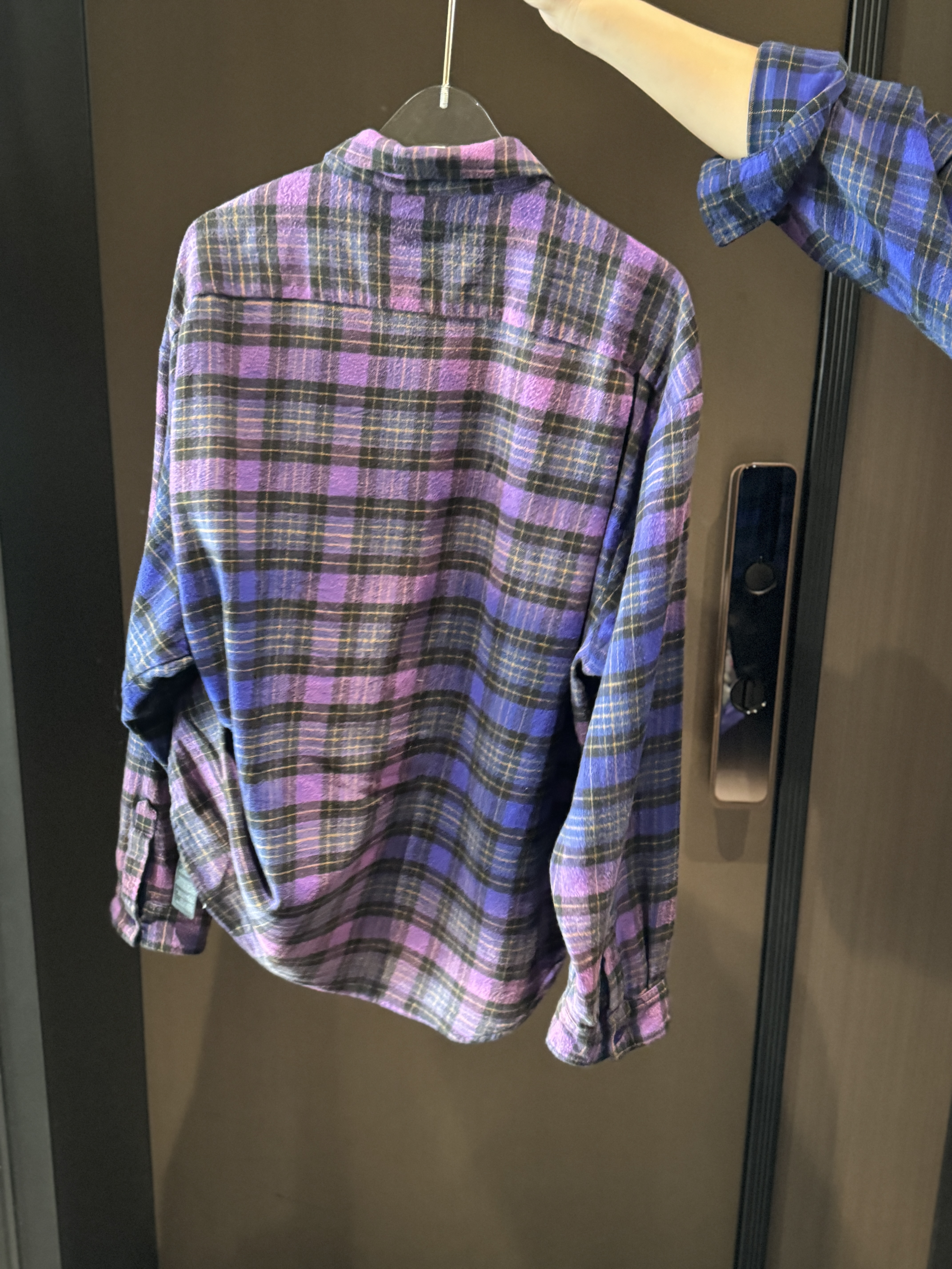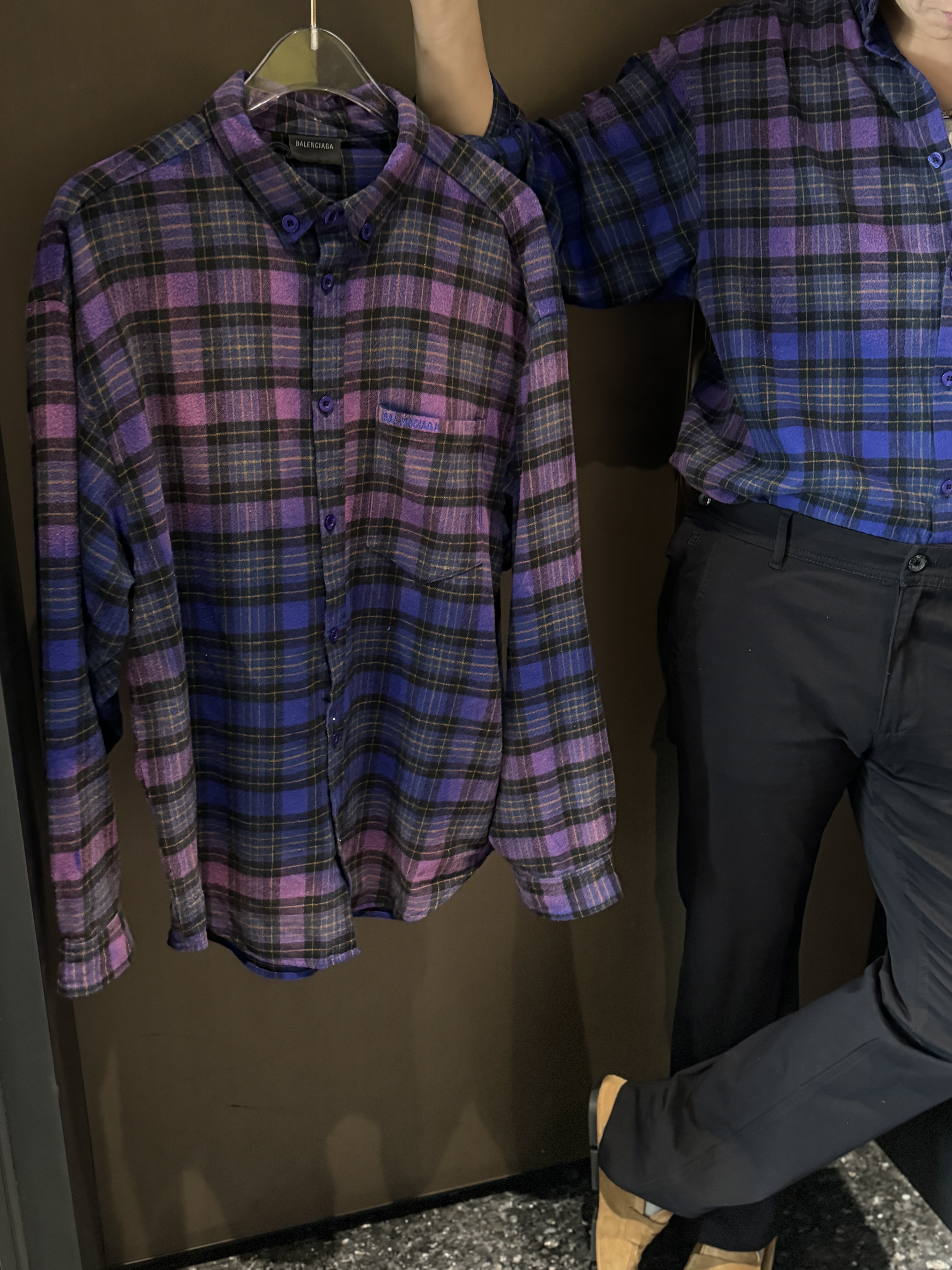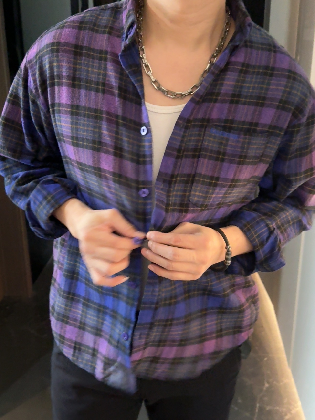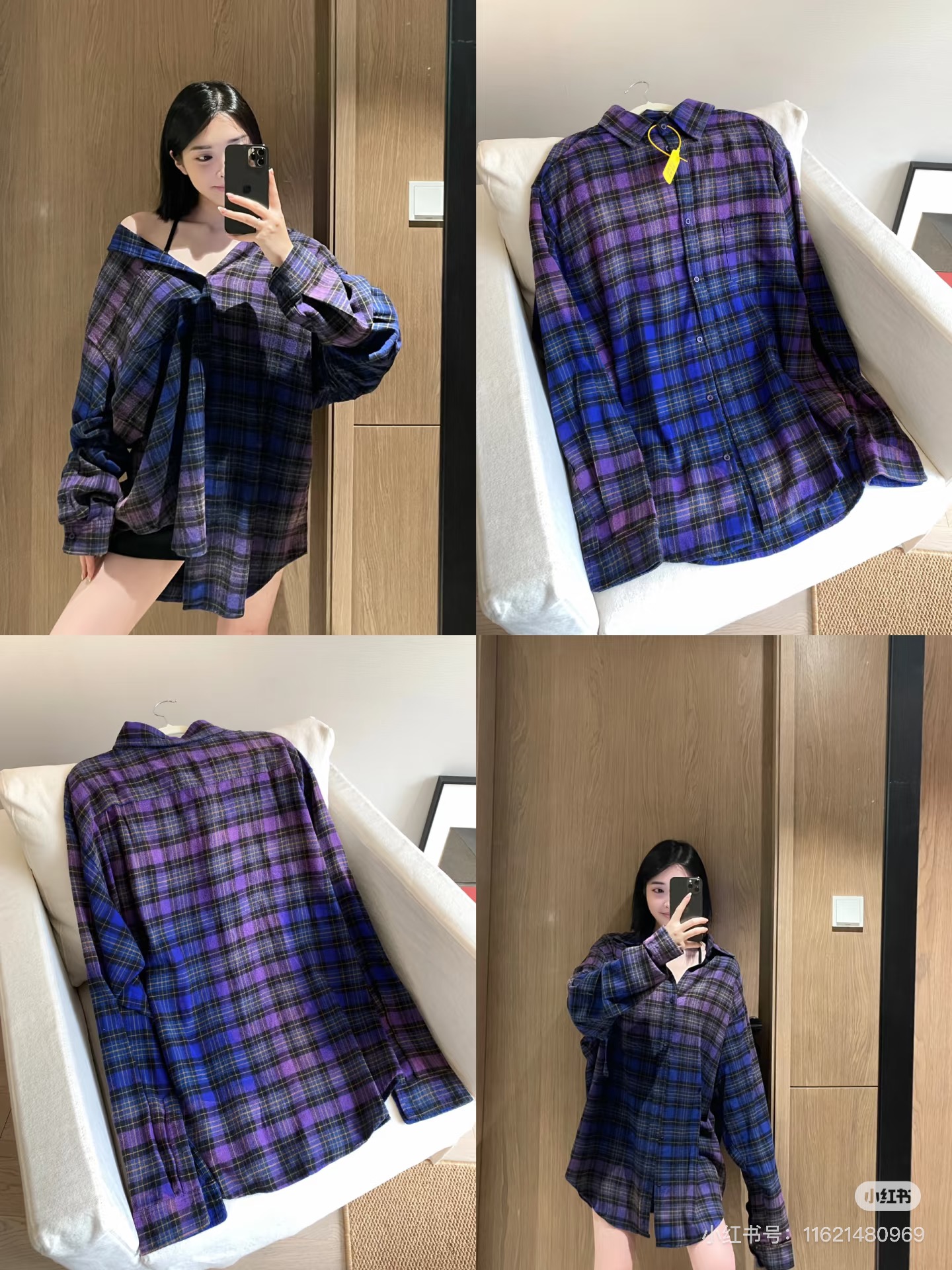 巴家新款|幻紫渐变格纹衬衫|颠覆经典 一眼入魂 高街玩家必入!Balenciaga 2025 秋冬重磅格纹衬衫,颠覆传统审美!【高定级面料】—— 指尖触碰即知阶级 采用意大利磨毛精棉混纺,表面呈现微绒雾面质感,每平方英寸经纬纱线加密20% ✅ 纽扣暗刻浮雕logo,指甲划过能感受到凹凸纹路!面料采用定织定染原版同款100%全面格子面料 手感柔软 上身质感十足垂感极佳
