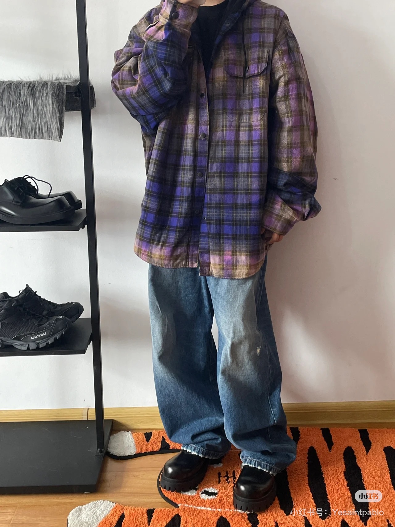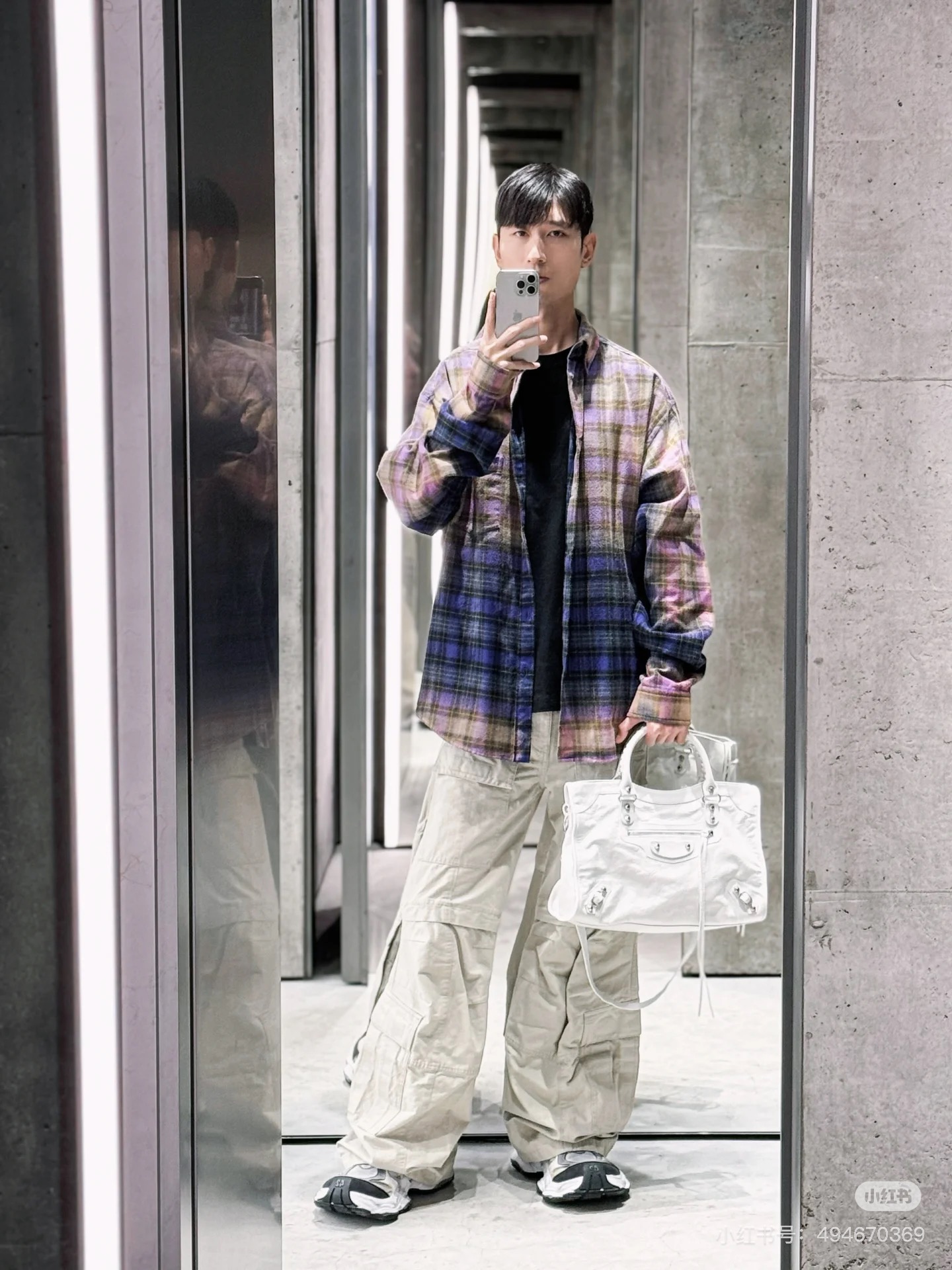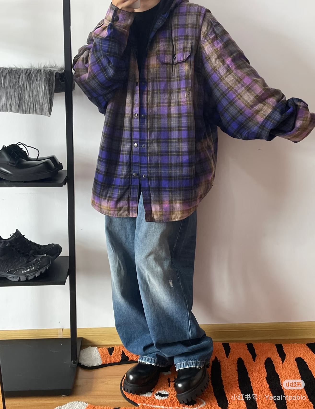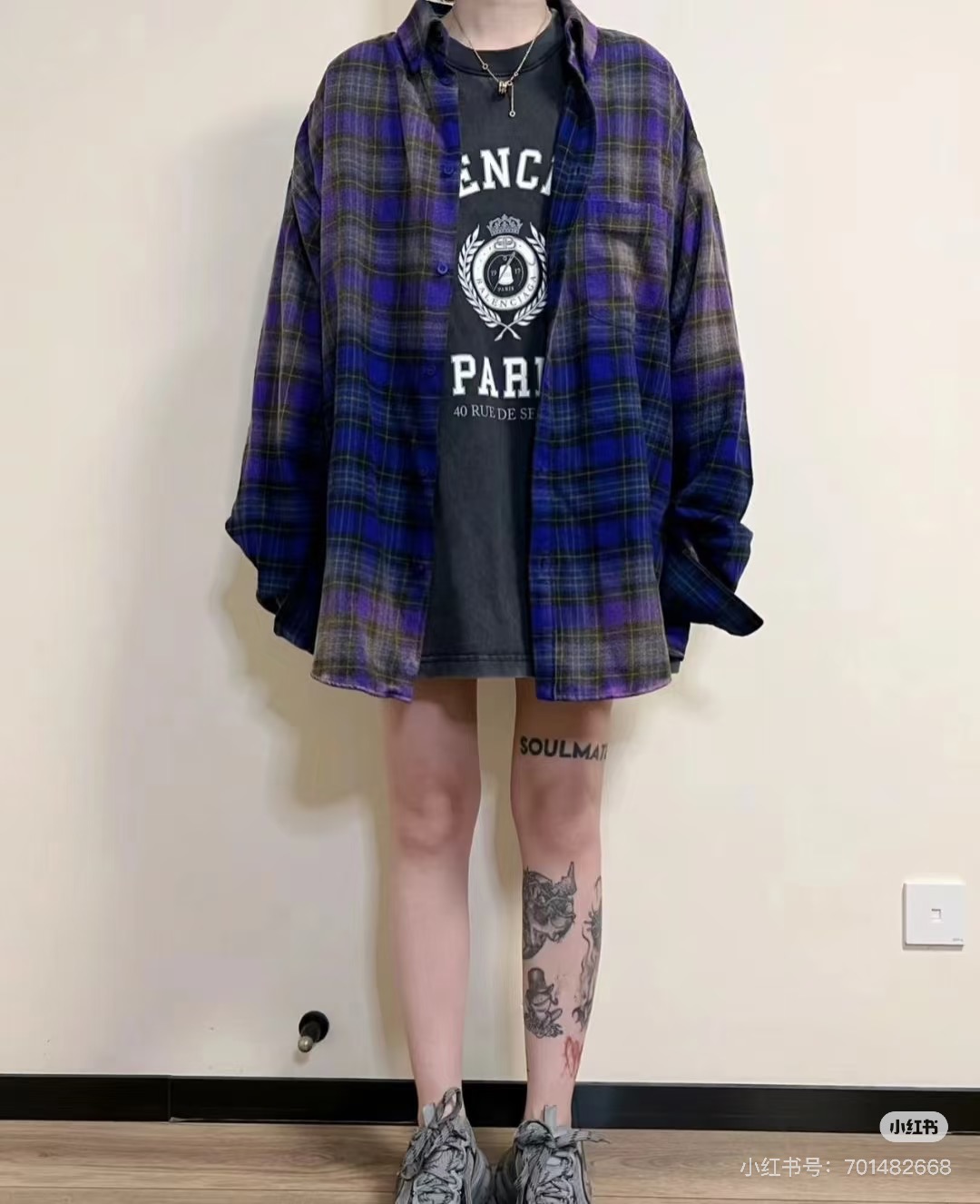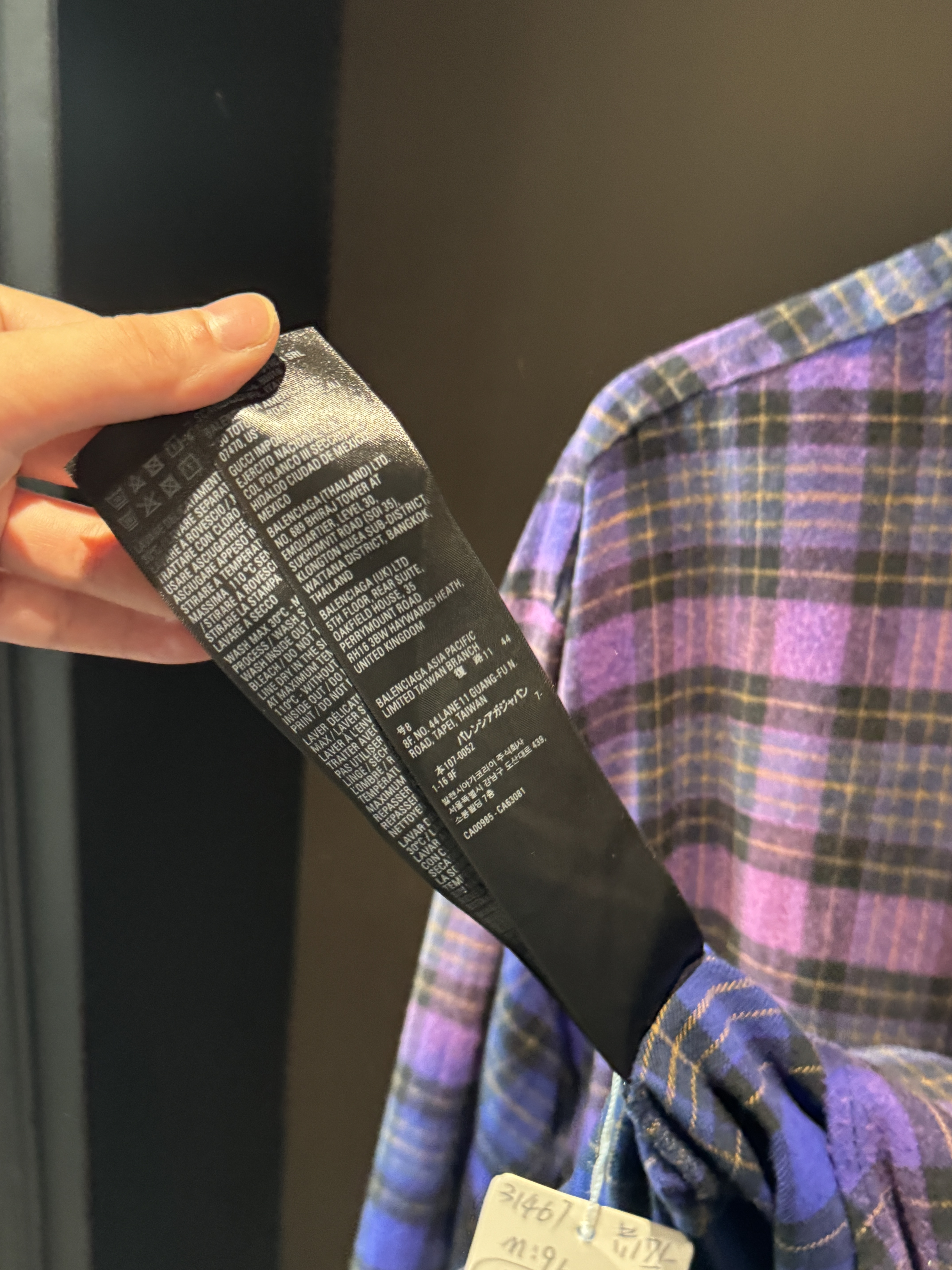 巴家新款|幻紫渐变格纹衬衫|颠覆经典 一眼入魂 高街玩家必入!Balenciaga 2025 秋冬重磅格纹衬衫,颠覆传统审美!【高定级面料】—— 指尖触碰即知阶级 采用意大利磨毛精棉混纺,表面呈现微绒雾面质感,每平方英寸经纬纱线加密20% ✅ 纽扣暗刻浮雕logo,指甲划过能感受到凹凸纹路!面料采用定织定染原版同款100%全面格子面料 手感柔软 上身质感十足垂感极佳