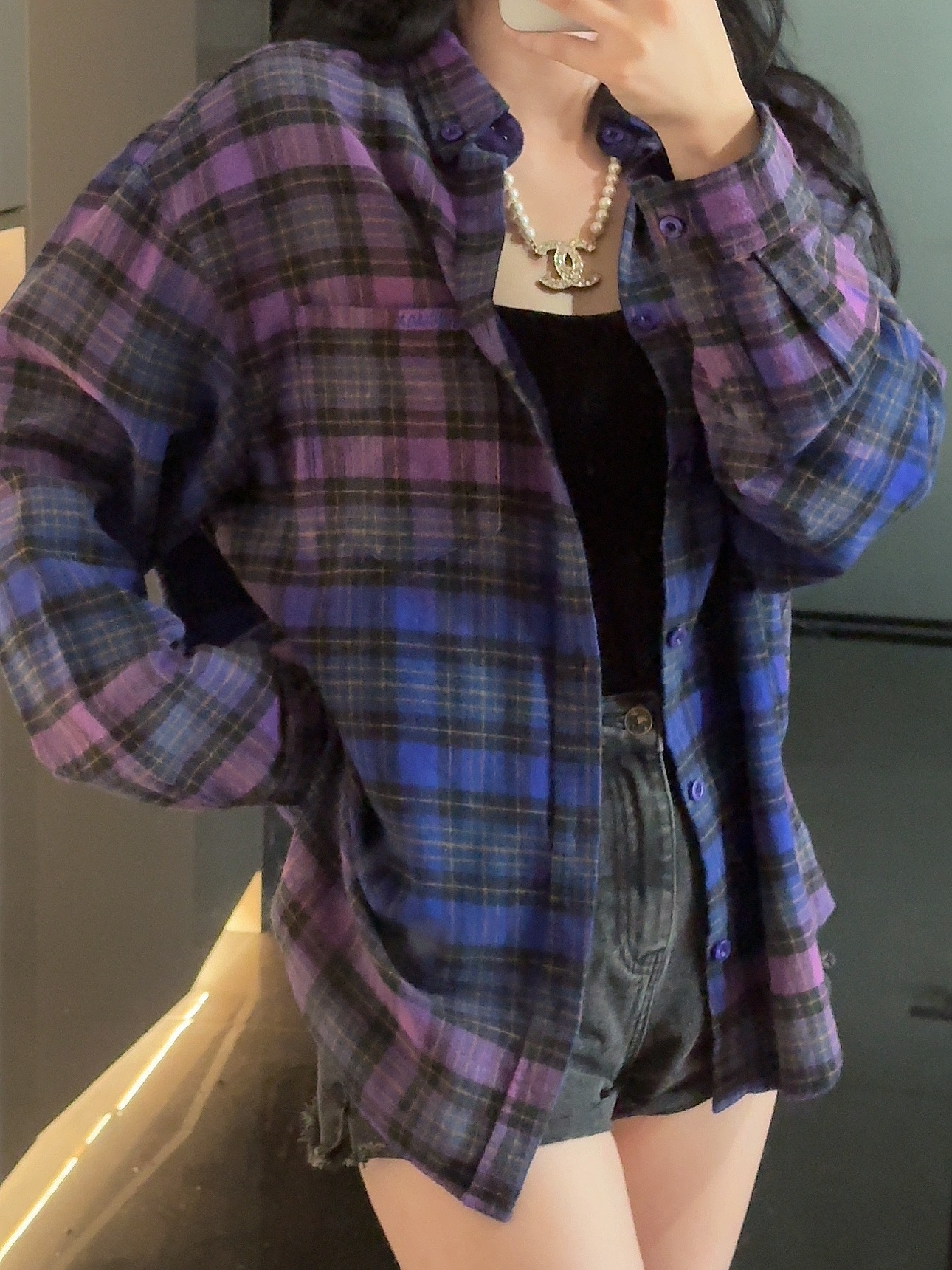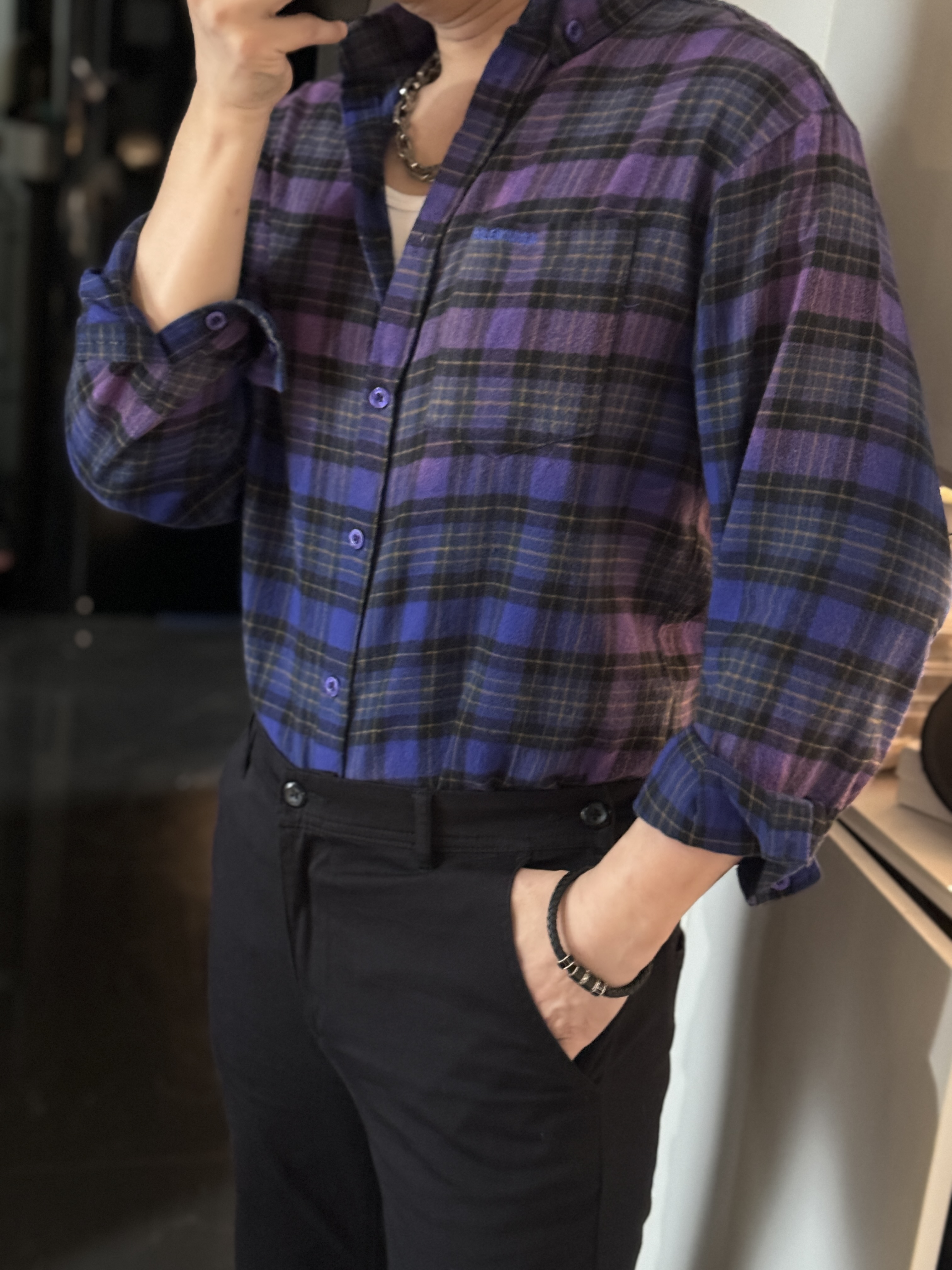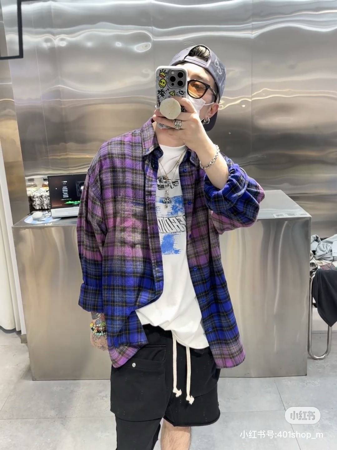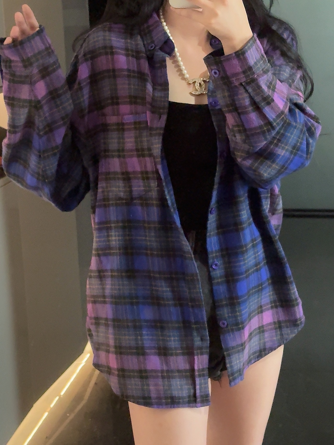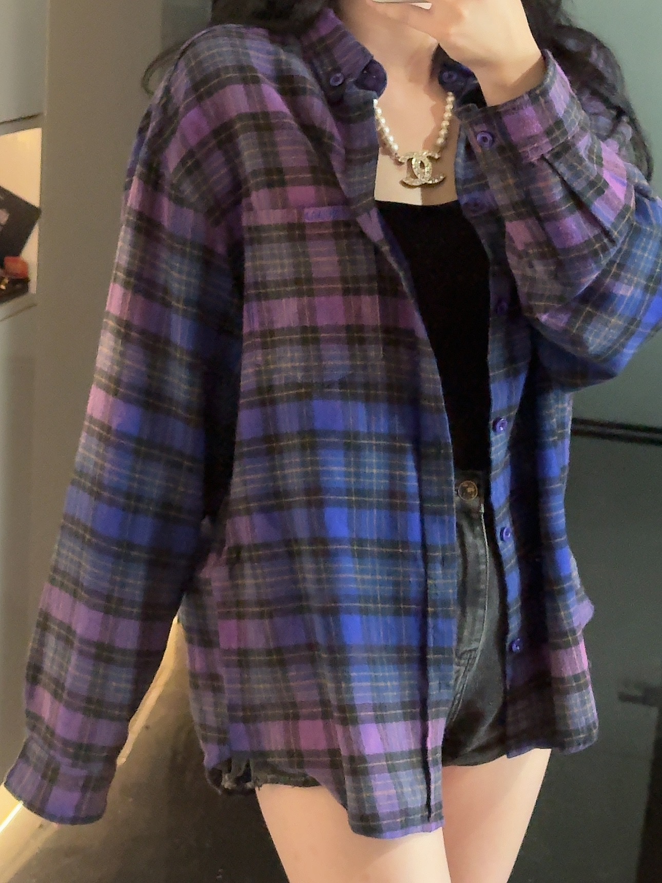 巴家新款|幻紫渐变格纹衬衫|颠覆经典 一眼入魂 高街玩家必入!Balenciaga 2025 秋冬重磅格纹衬衫,颠覆传统审美!【高定级面料】—— 指尖触碰即知阶级 采用意大利磨毛精棉混纺,表面呈现微绒雾面质感,每平方英寸经纬纱线加密20% ✅ 纽扣暗刻浮雕logo,指甲划过能感受到凹凸纹路!面料采用定织定染原版同款100%全面格子面料 手感柔软 上身质感十足垂感极佳