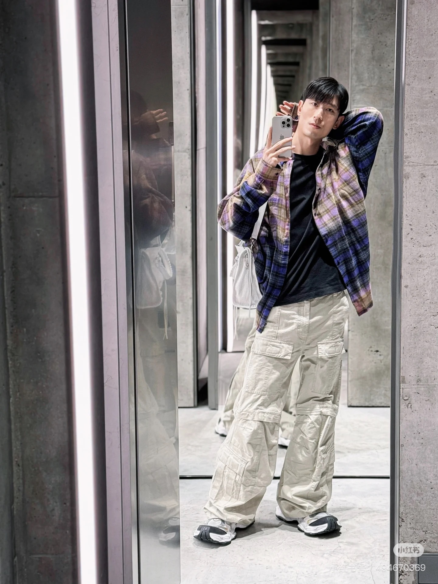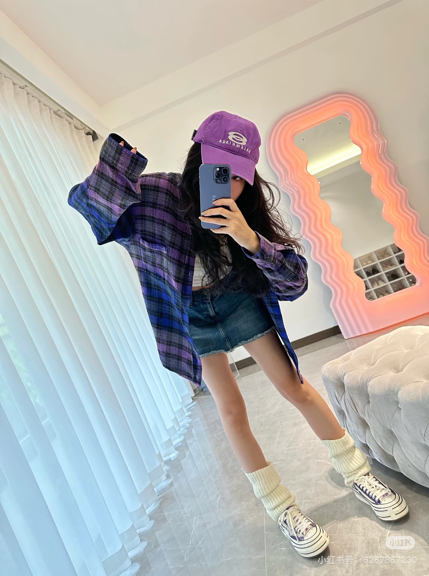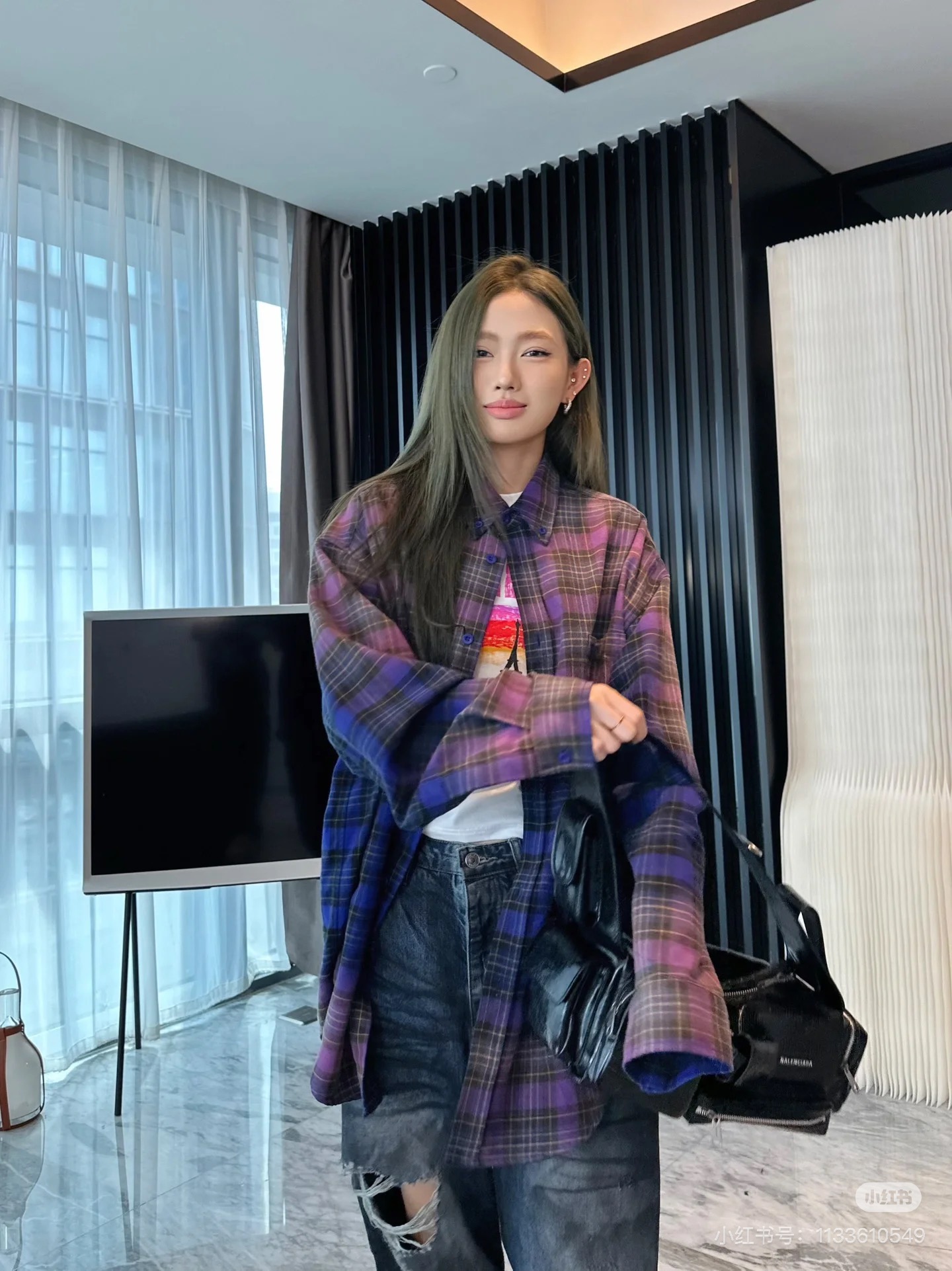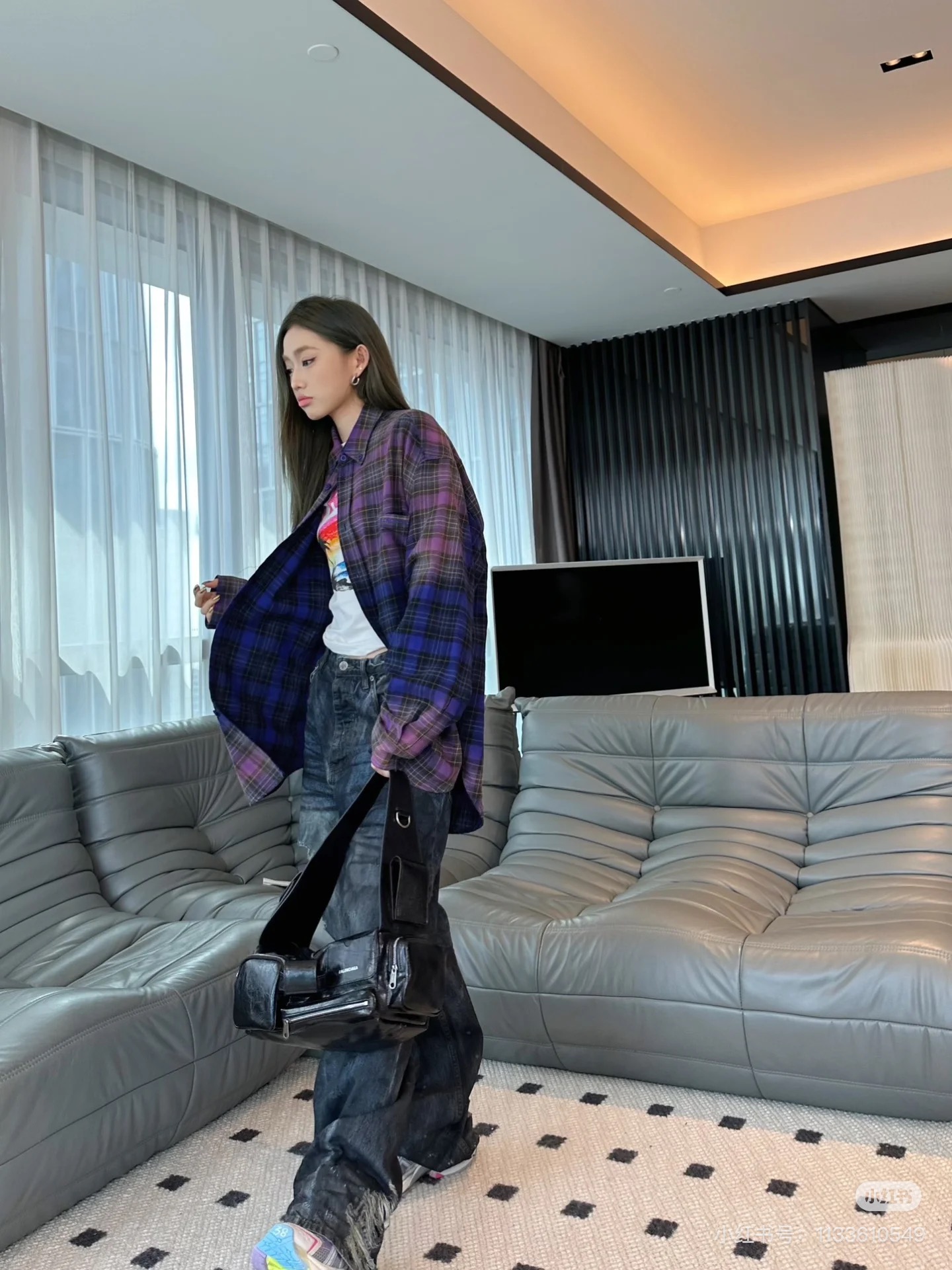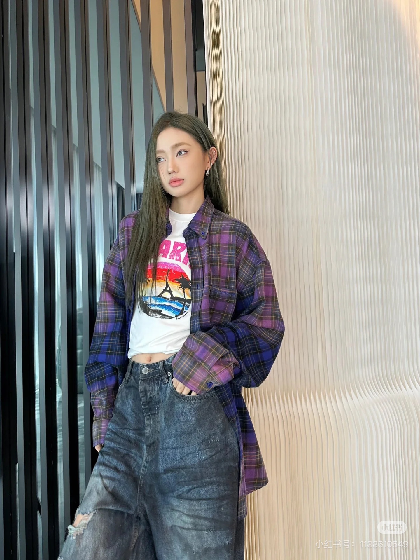 巴家新款|幻紫渐变格纹衬衫|颠覆经典 一眼入魂 高街玩家必入!Balenciaga 2025 秋冬重磅格纹衬衫,颠覆传统审美!【高定级面料】—— 指尖触碰即知阶级 采用意大利磨毛精棉混纺,表面呈现微绒雾面质感,每平方英寸经纬纱线加密20% ✅ 纽扣暗刻浮雕logo,指甲划过能感受到凹凸纹路!面料采用定织定染原版同款100%全面格子面料 手感柔软 上身质感十足垂感极佳