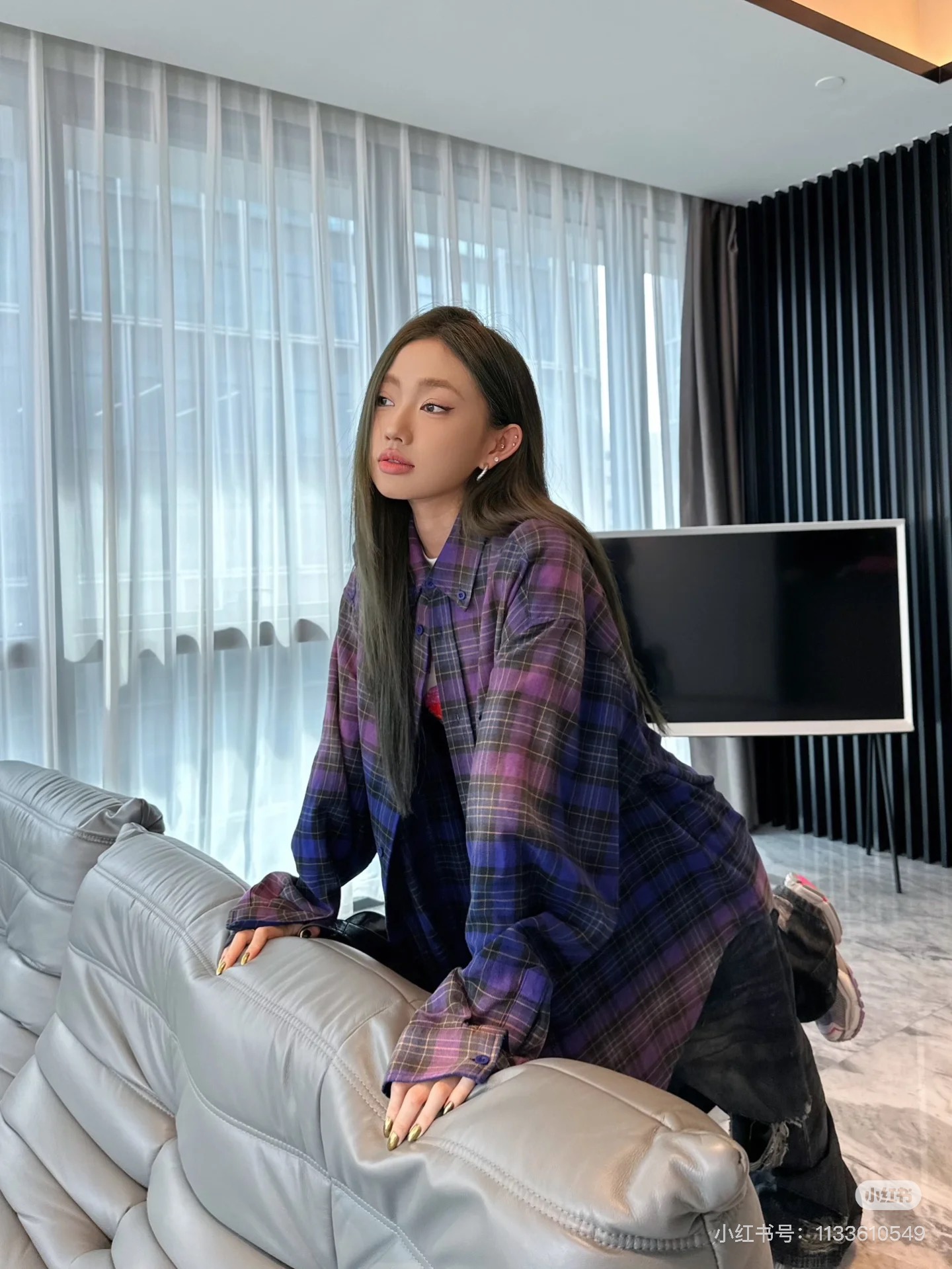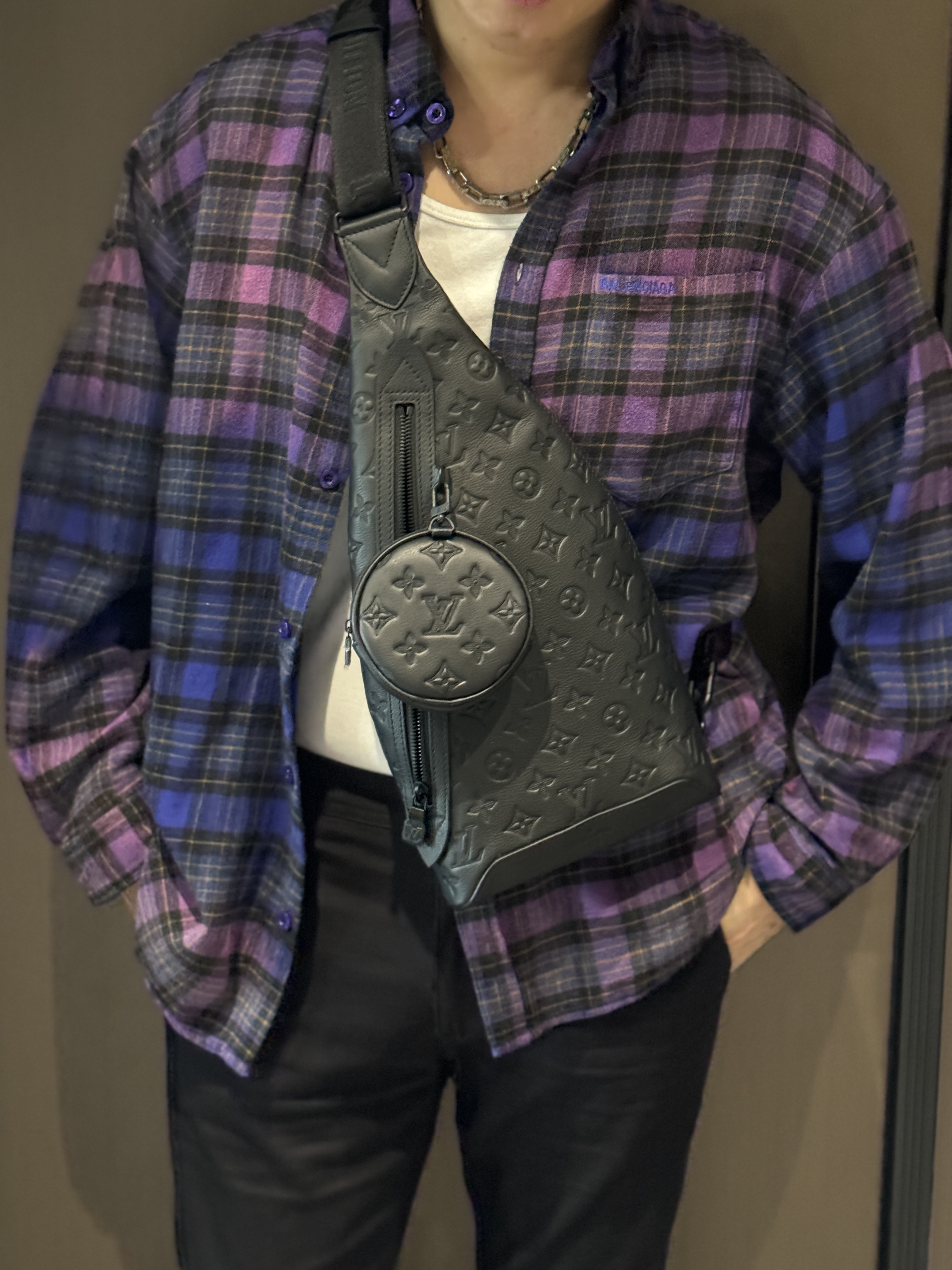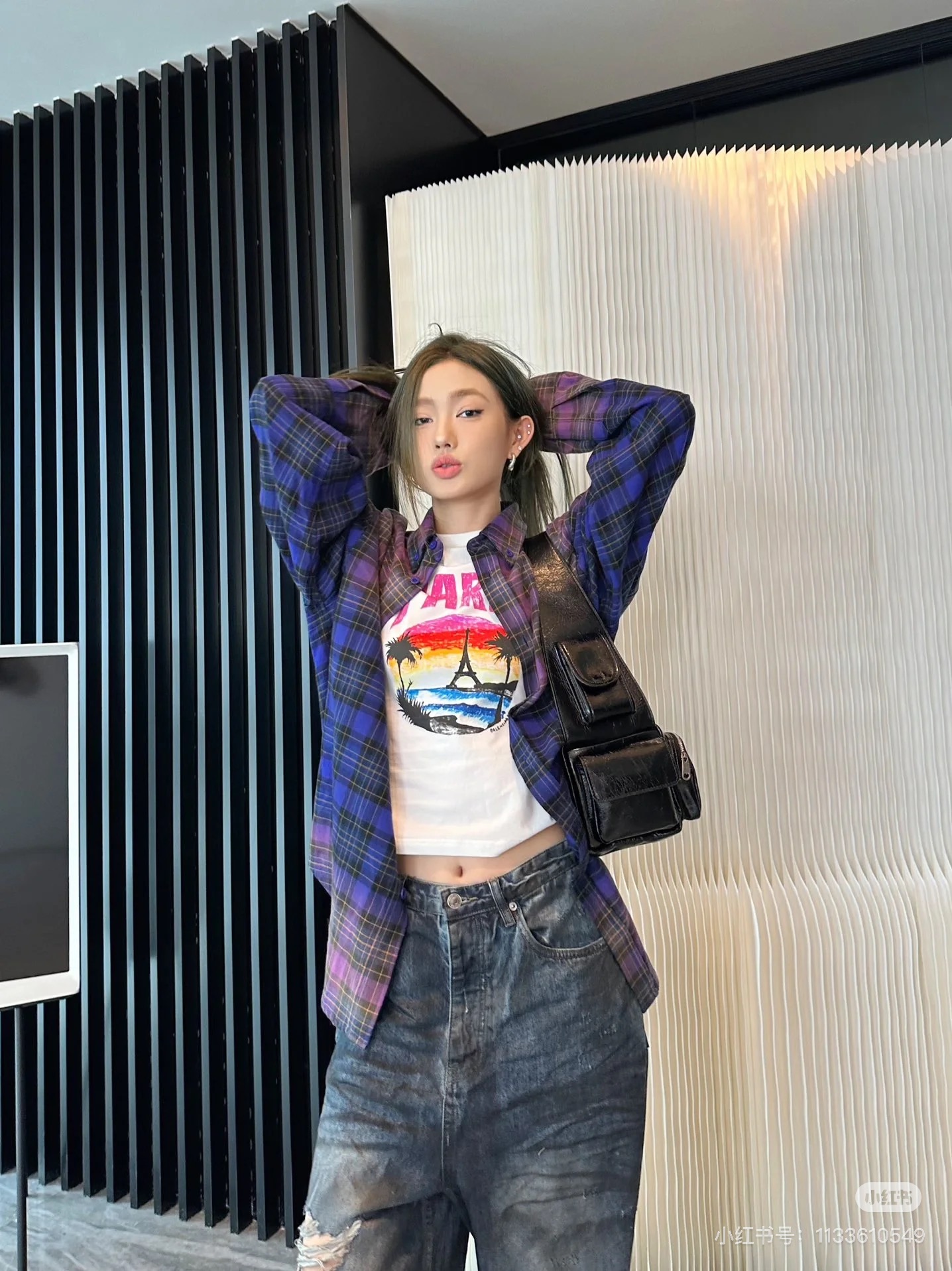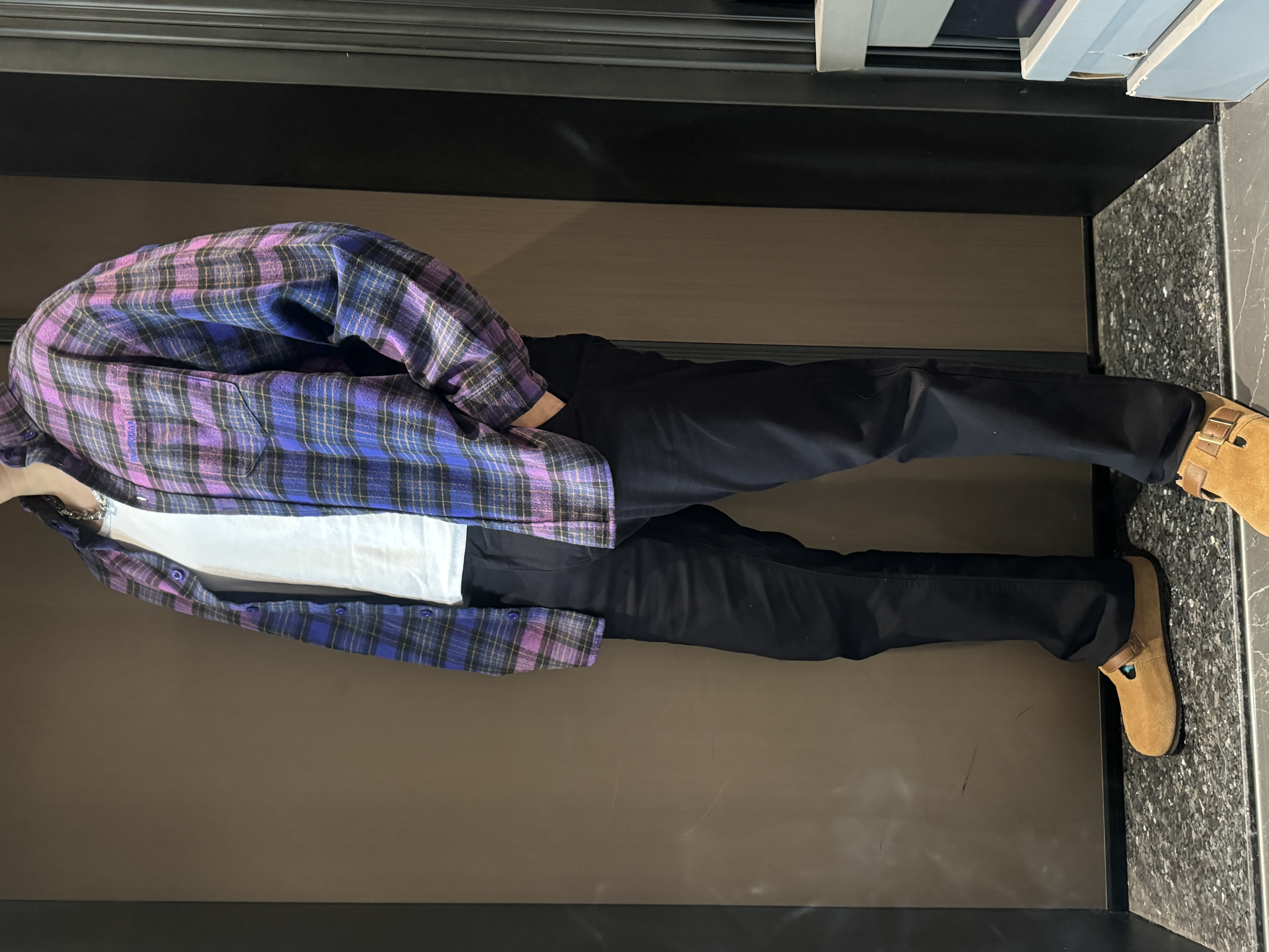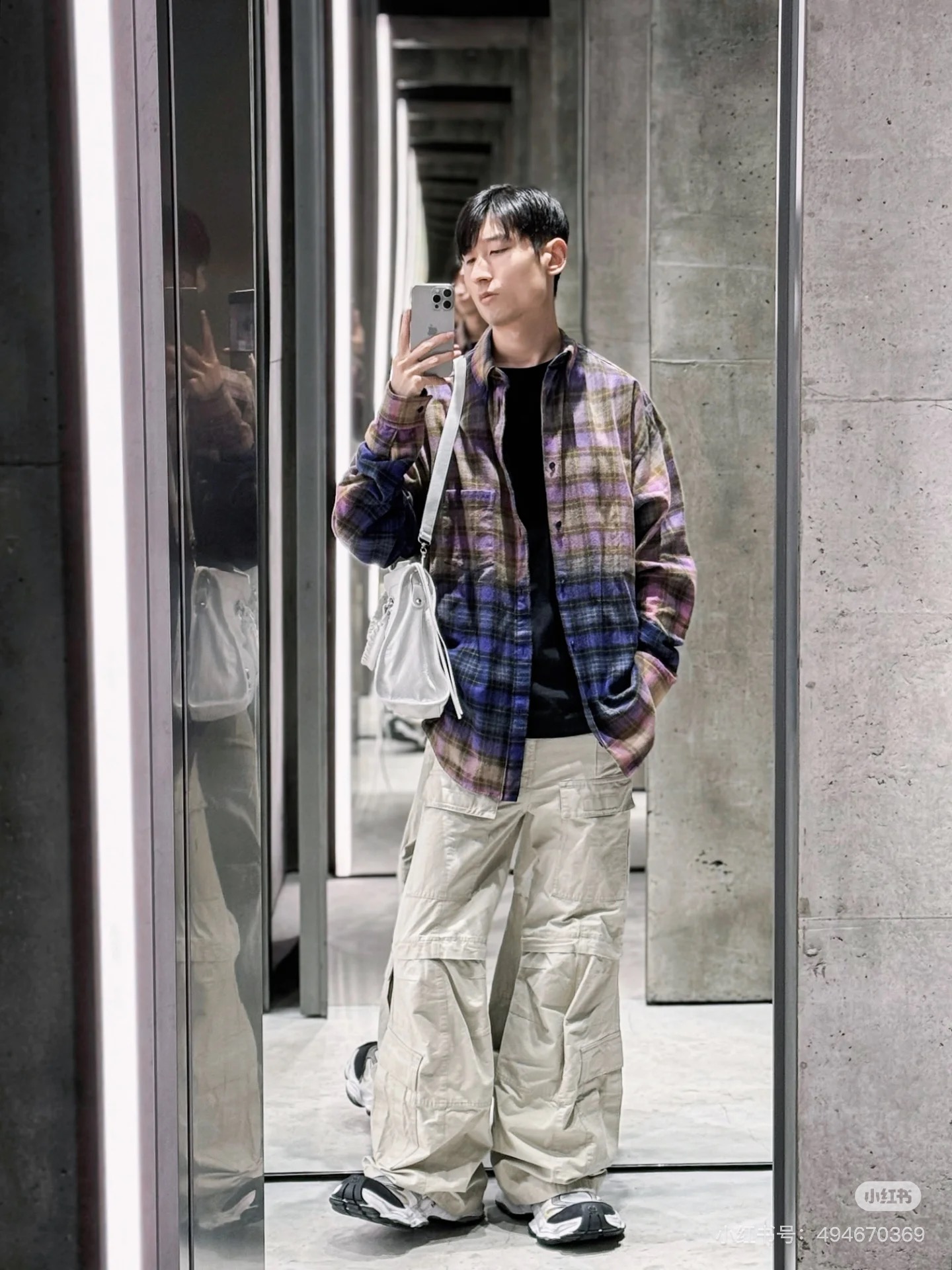 巴家新款|幻紫渐变格纹衬衫|颠覆经典 一眼入魂 高街玩家必入!Balenciaga 2025 秋冬重磅格纹衬衫,颠覆传统审美!【高定级面料】—— 指尖触碰即知阶级 采用意大利磨毛精棉混纺,表面呈现微绒雾面质感,每平方英寸经纬纱线加密20% ✅ 纽扣暗刻浮雕logo,指甲划过能感受到凹凸纹路!面料采用定织定染原版同款100%全面格子面料 手感柔软 上身质感十足垂感极佳