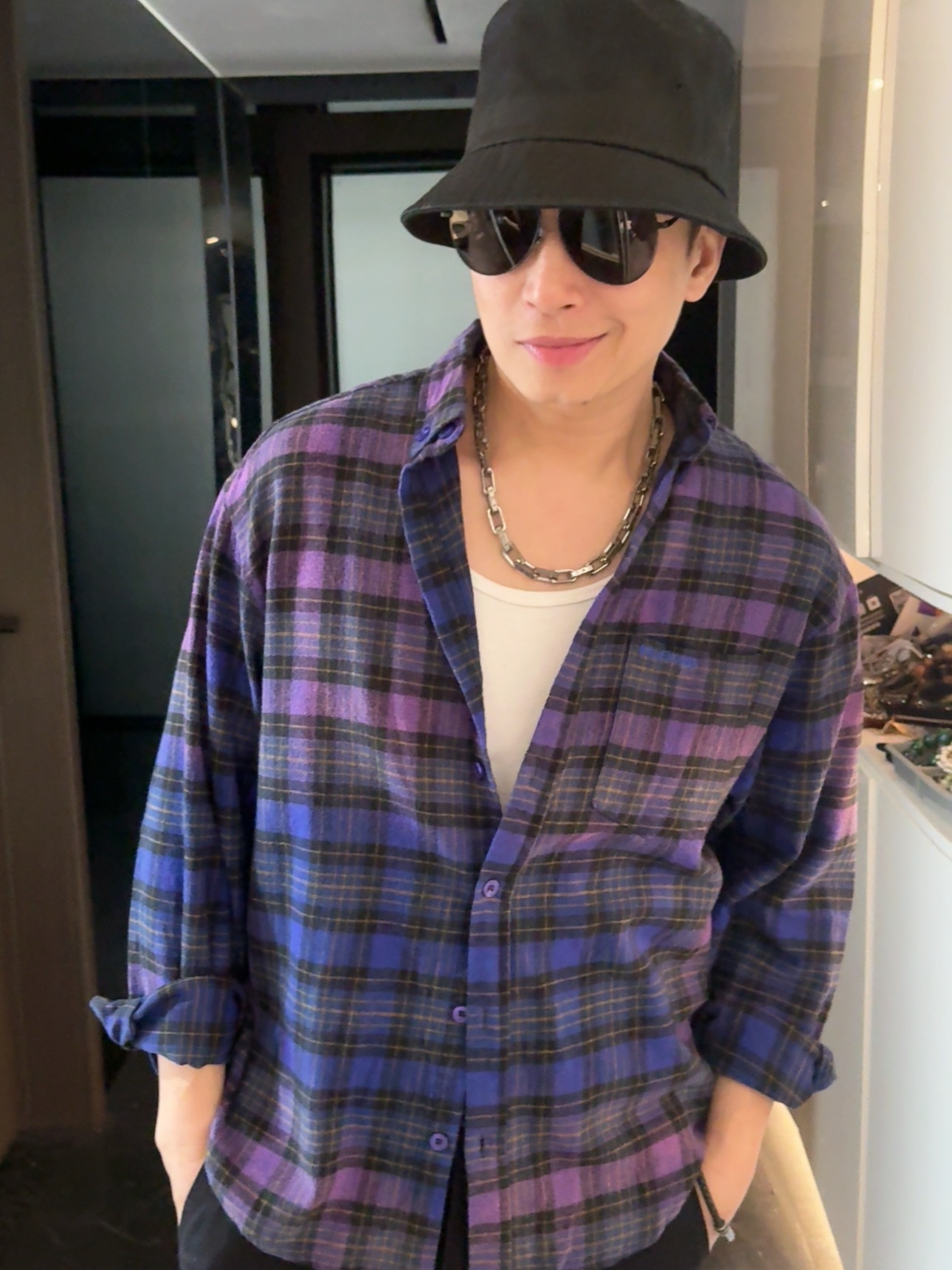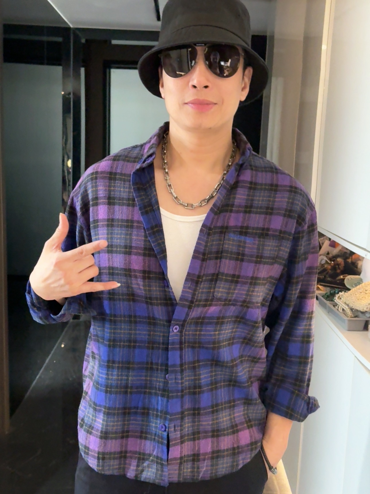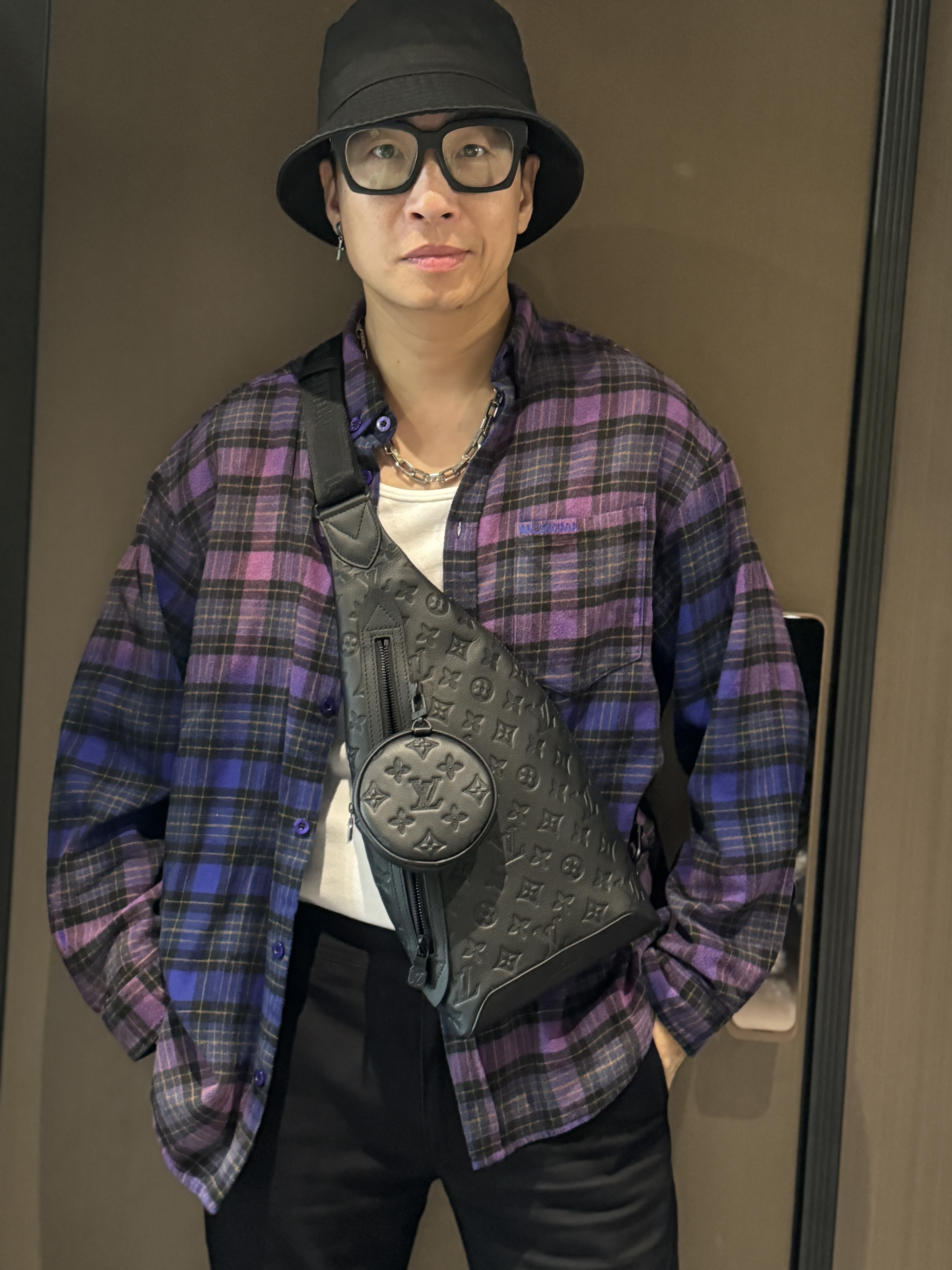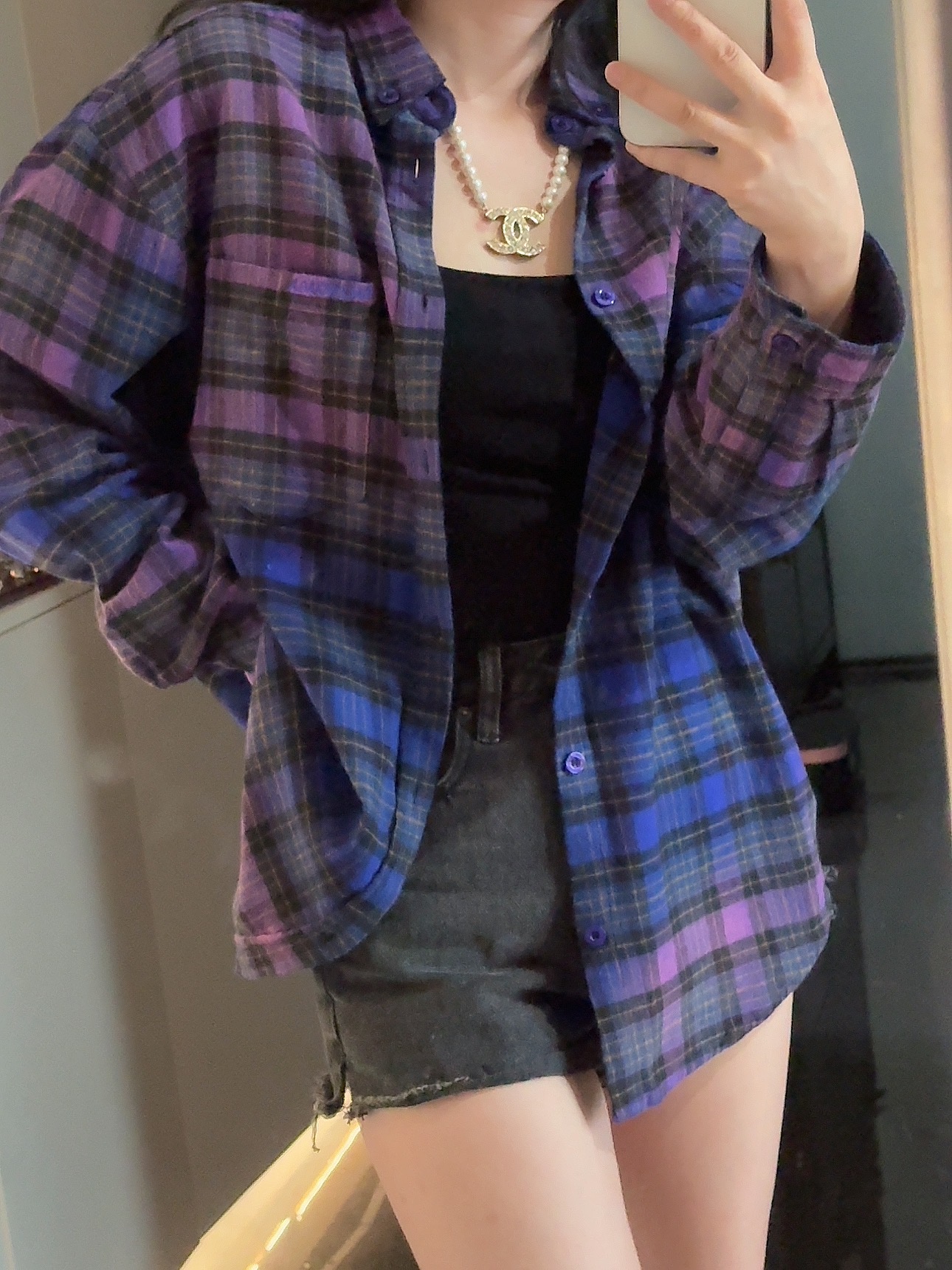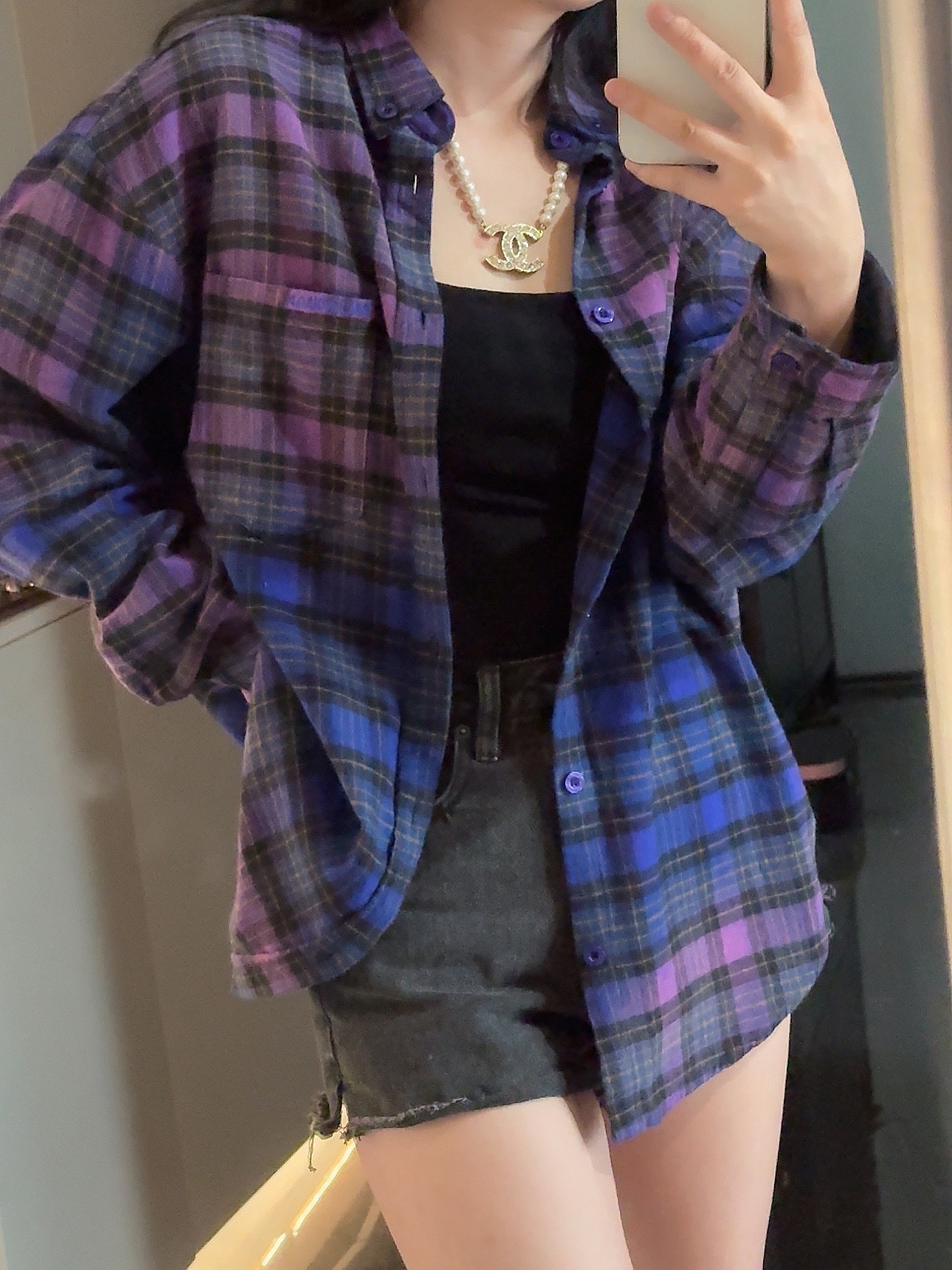 巴家新款|幻紫渐变格纹衬衫|颠覆经典 一眼入魂 高街玩家必入!Balenciaga 2025 秋冬重磅格纹衬衫,颠覆传统审美!【高定级面料】—— 指尖触碰即知阶级 采用意大利磨毛精棉混纺,表面呈现微绒雾面质感,每平方英寸经纬纱线加密20% ✅ 纽扣暗刻浮雕logo,指甲划过能感受到凹凸纹路!面料采用定织定染原版同款100%全面格子面料 手感柔软 上身质感十足垂感极佳
