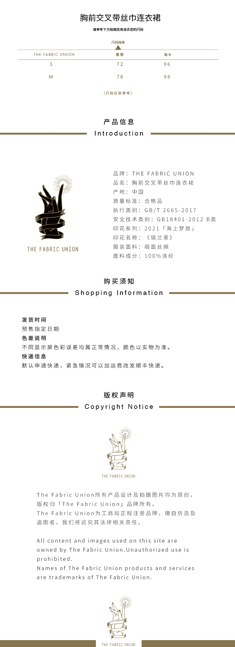 THE FABRIC UNION「海上梦旅」系列服装 带丝巾连衣裙