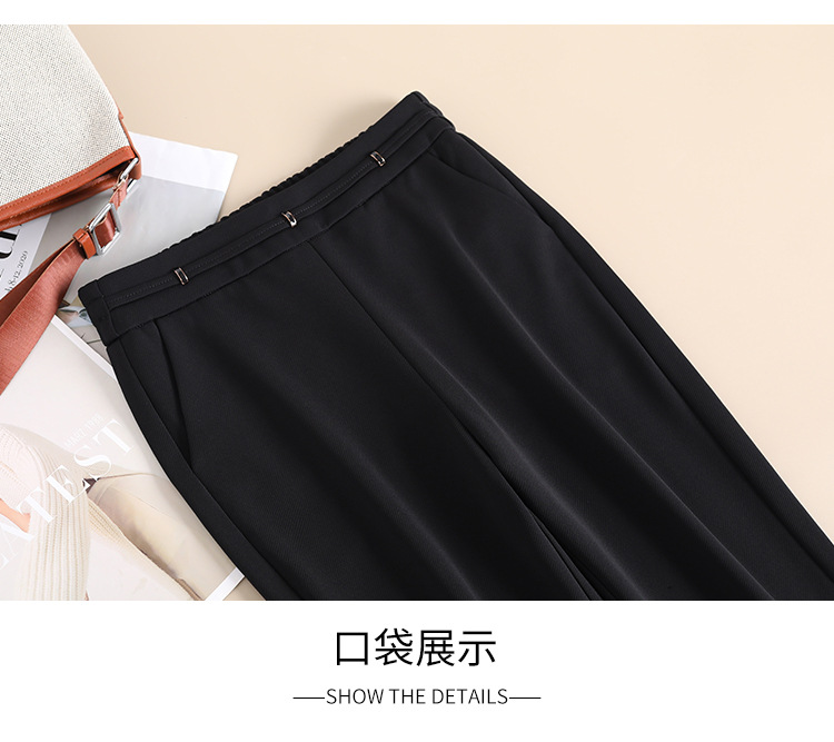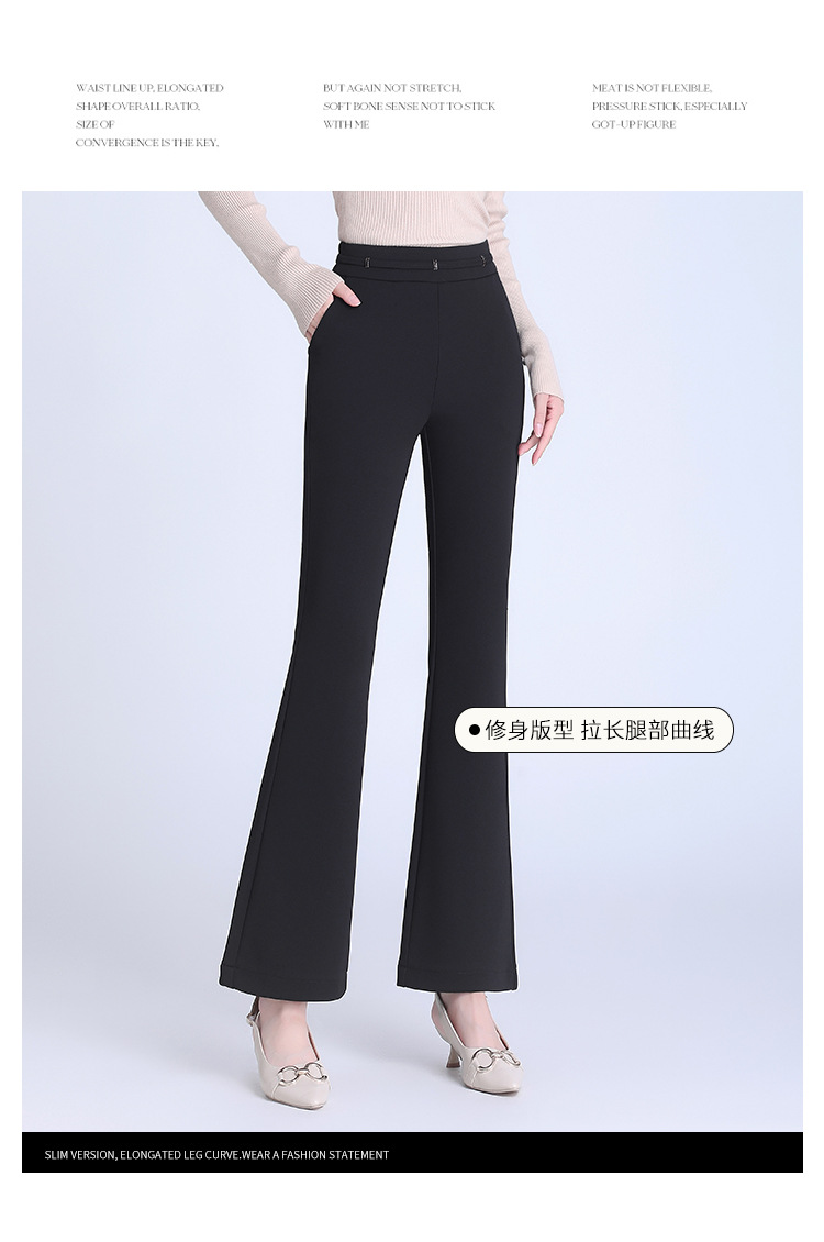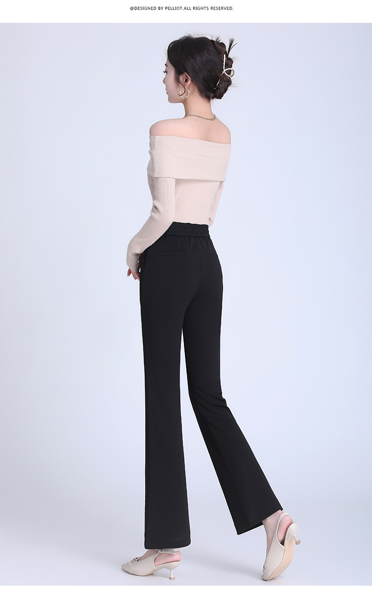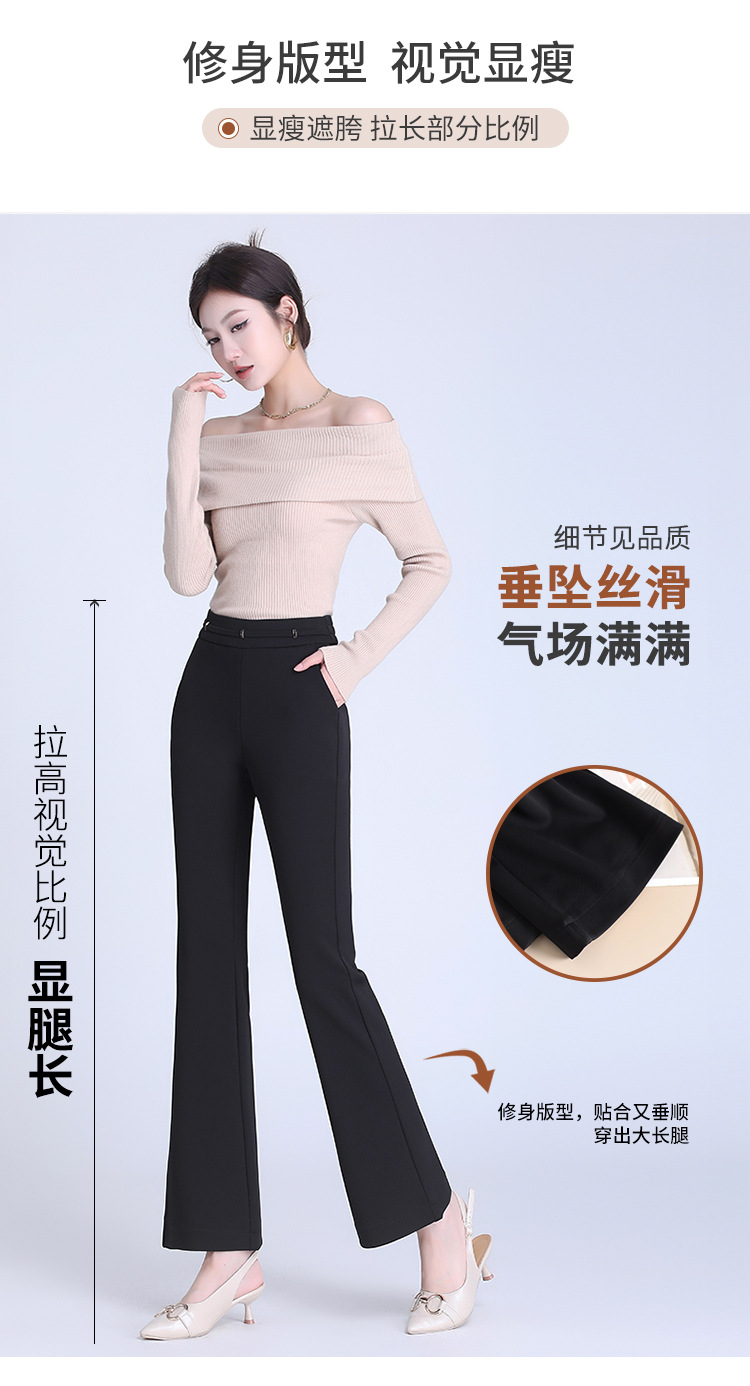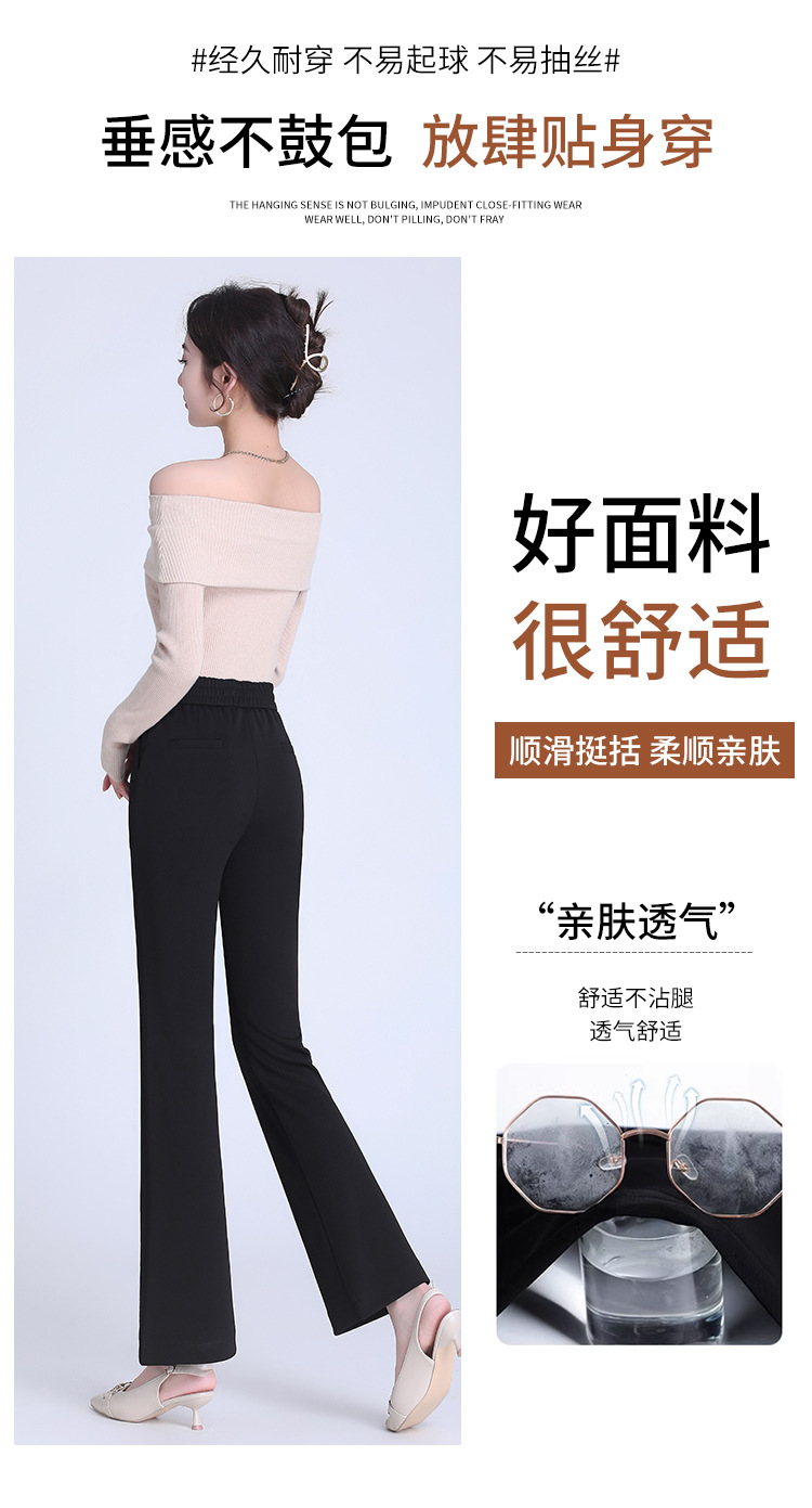 秋季新款,长款修身时尚大喇叭裤后腰松紧通勤气质黑色裤子MYX-QQ7012-L