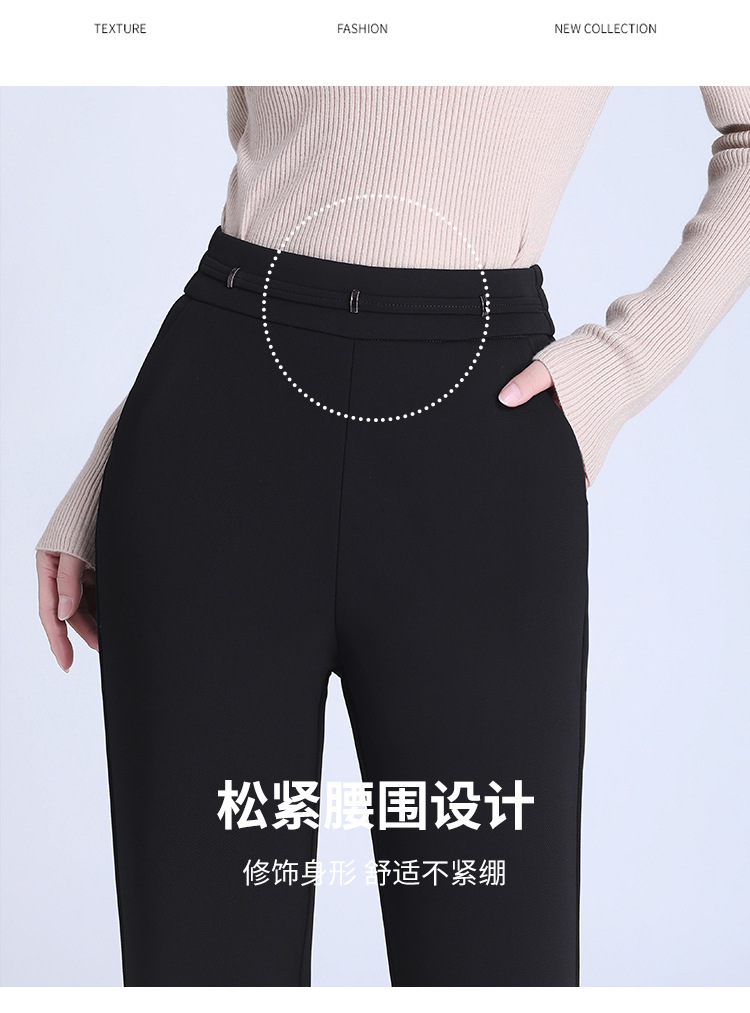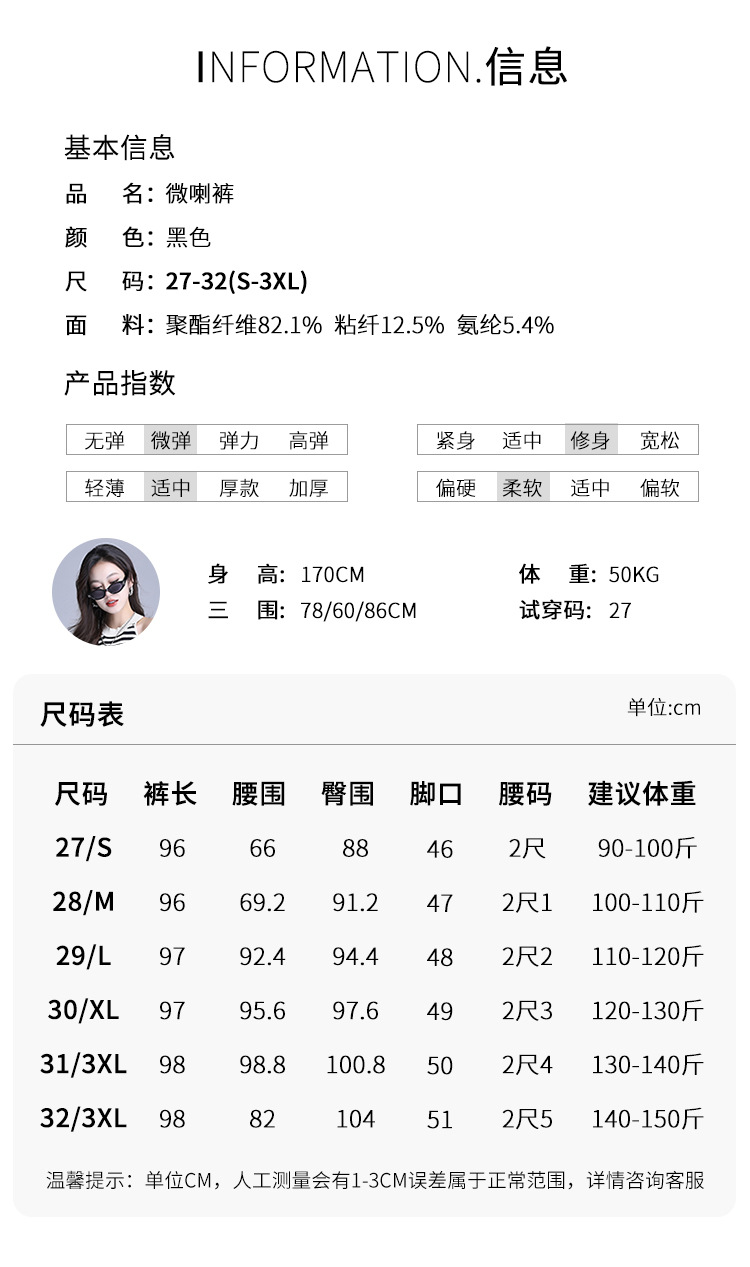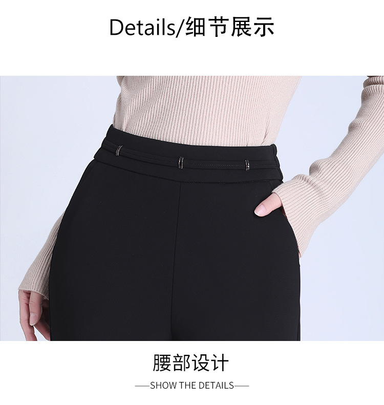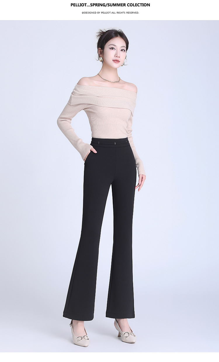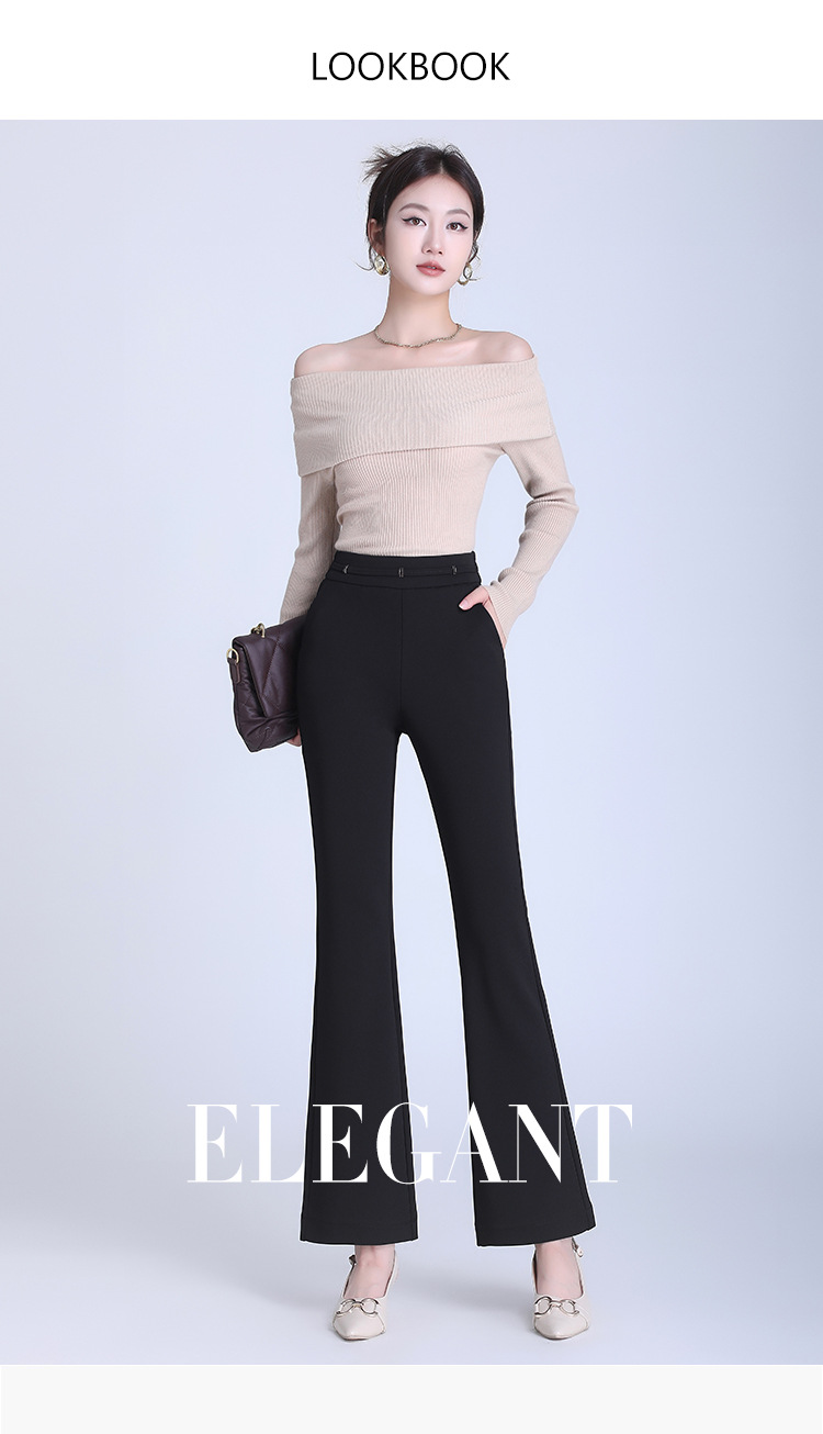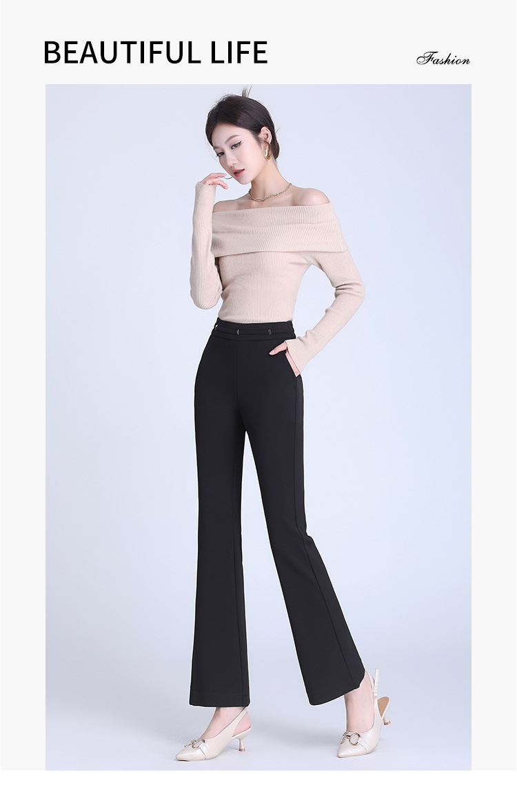 秋季新款,长款修身时尚大喇叭裤后腰松紧通勤气质黑色裤子MYX-QQ7012-L