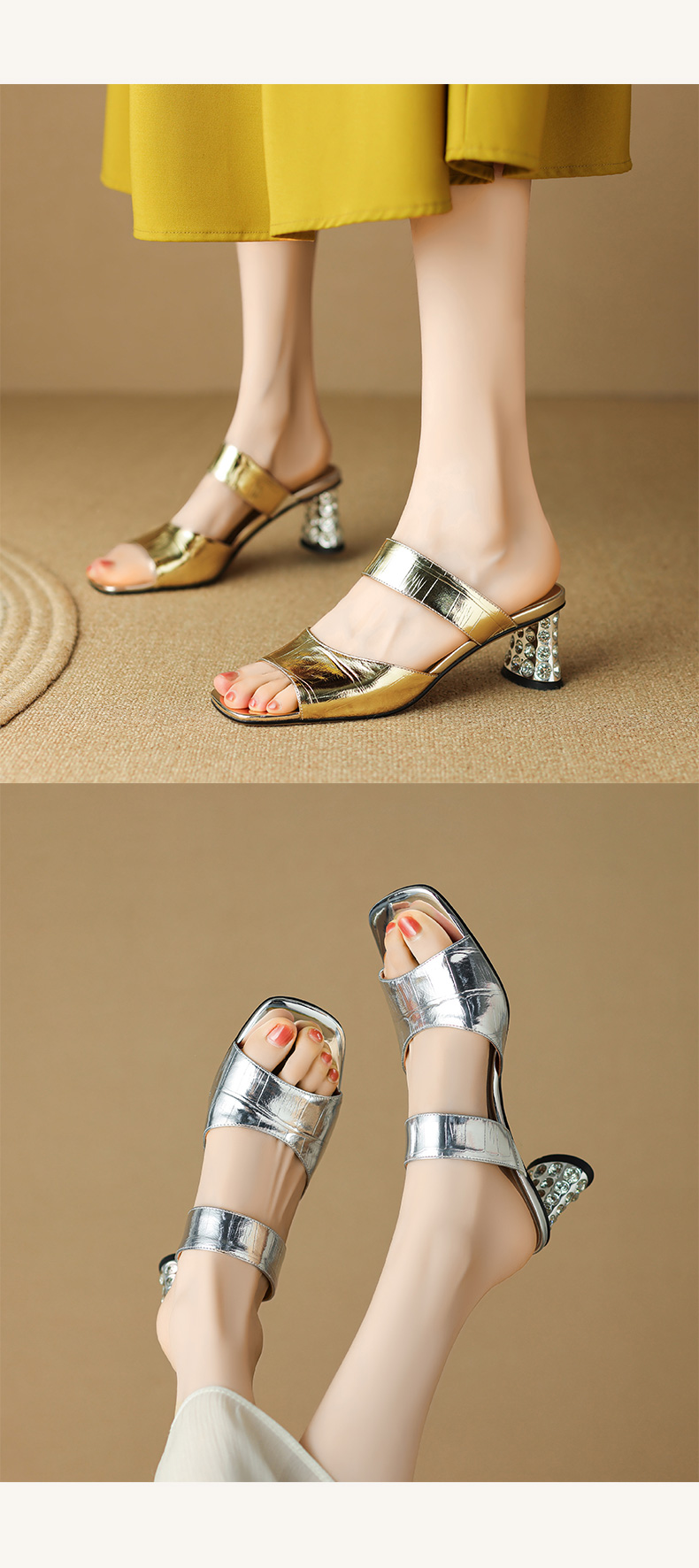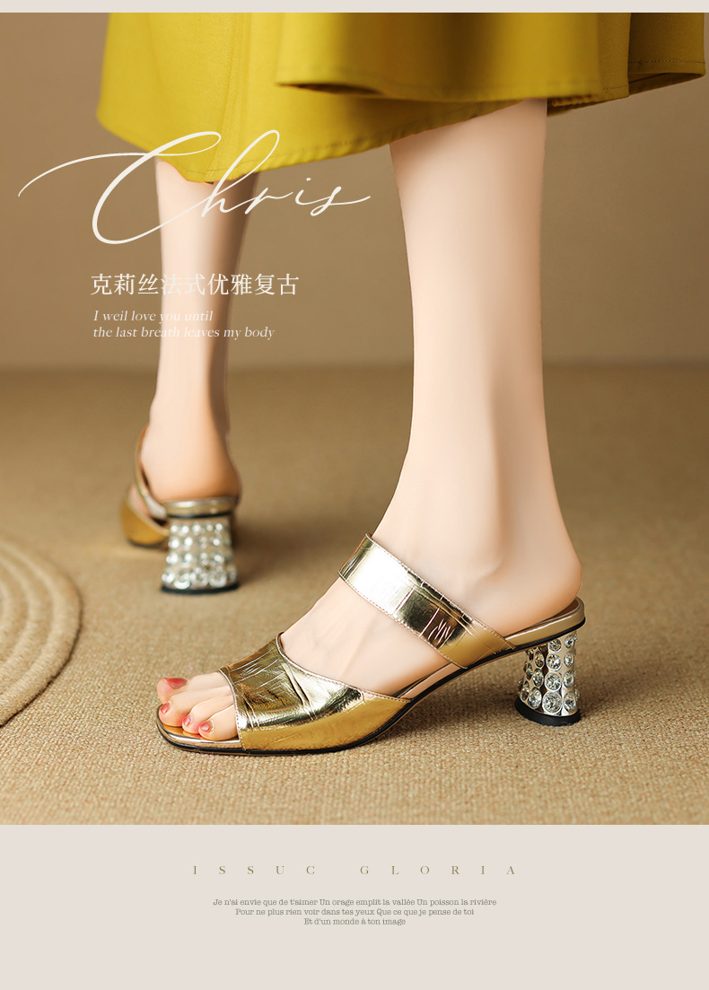 时尚个性,真皮亮面高跟凉拖LD-6368
