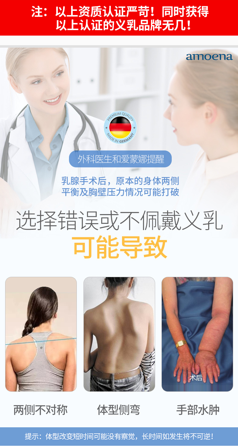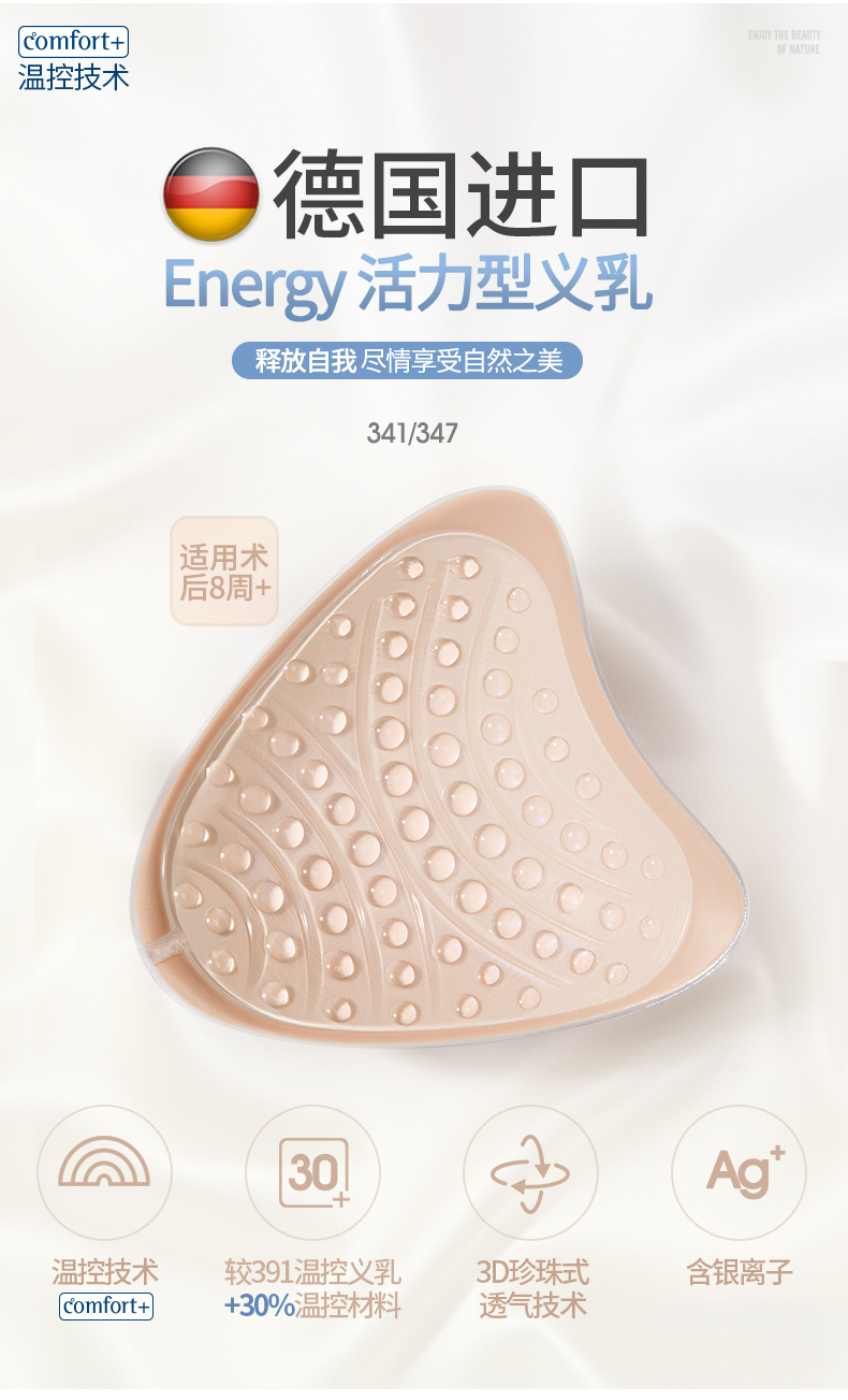 【优惠详情咨询客服】德国爱蒙娜 贴身型硅胶义乳腺癌手术后专用假胸乳房(341活力型) 送文胸