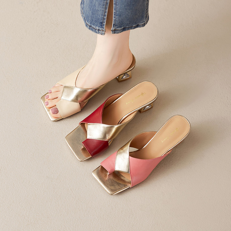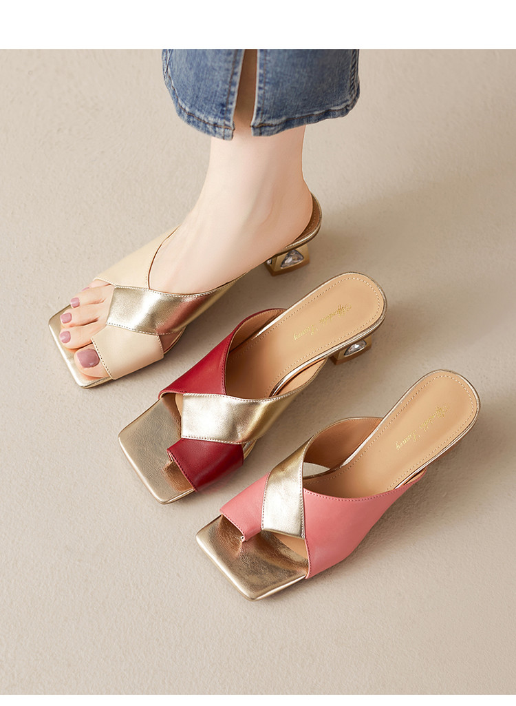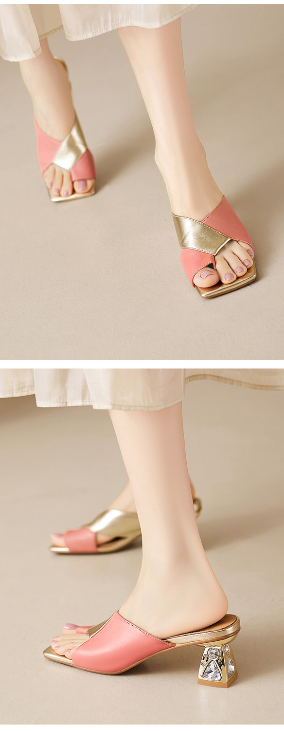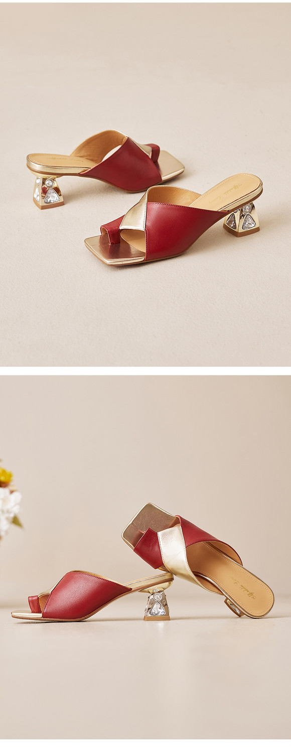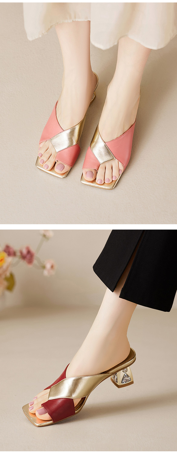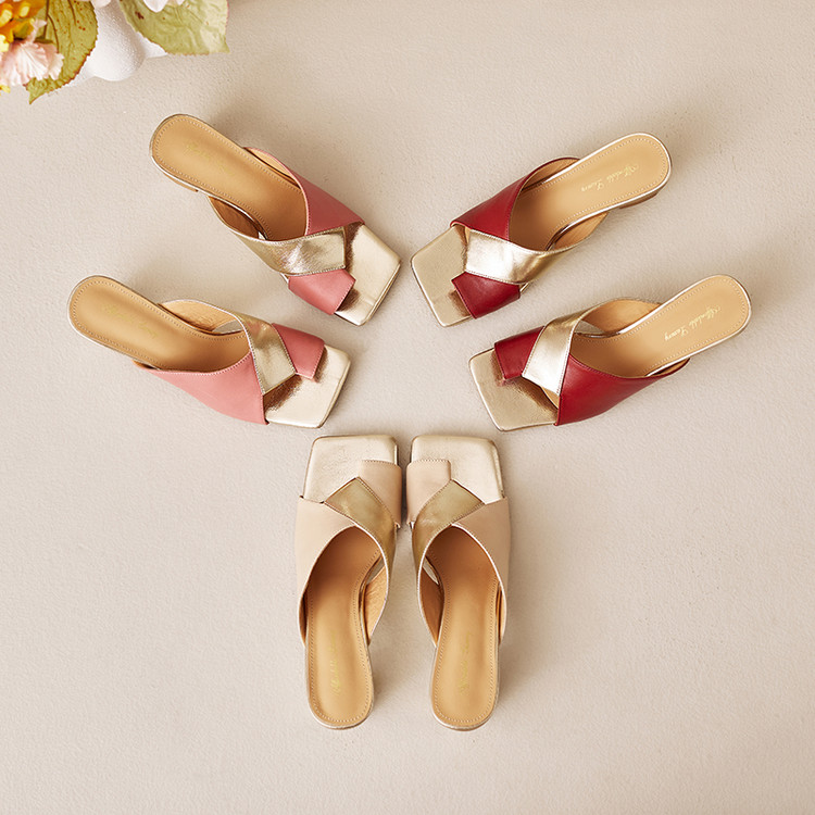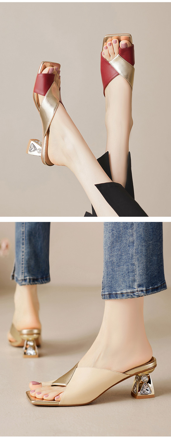 【预售5天】夏日必备复古百搭时尚露趾方头拼色高跟凉鞋MBJR&6895