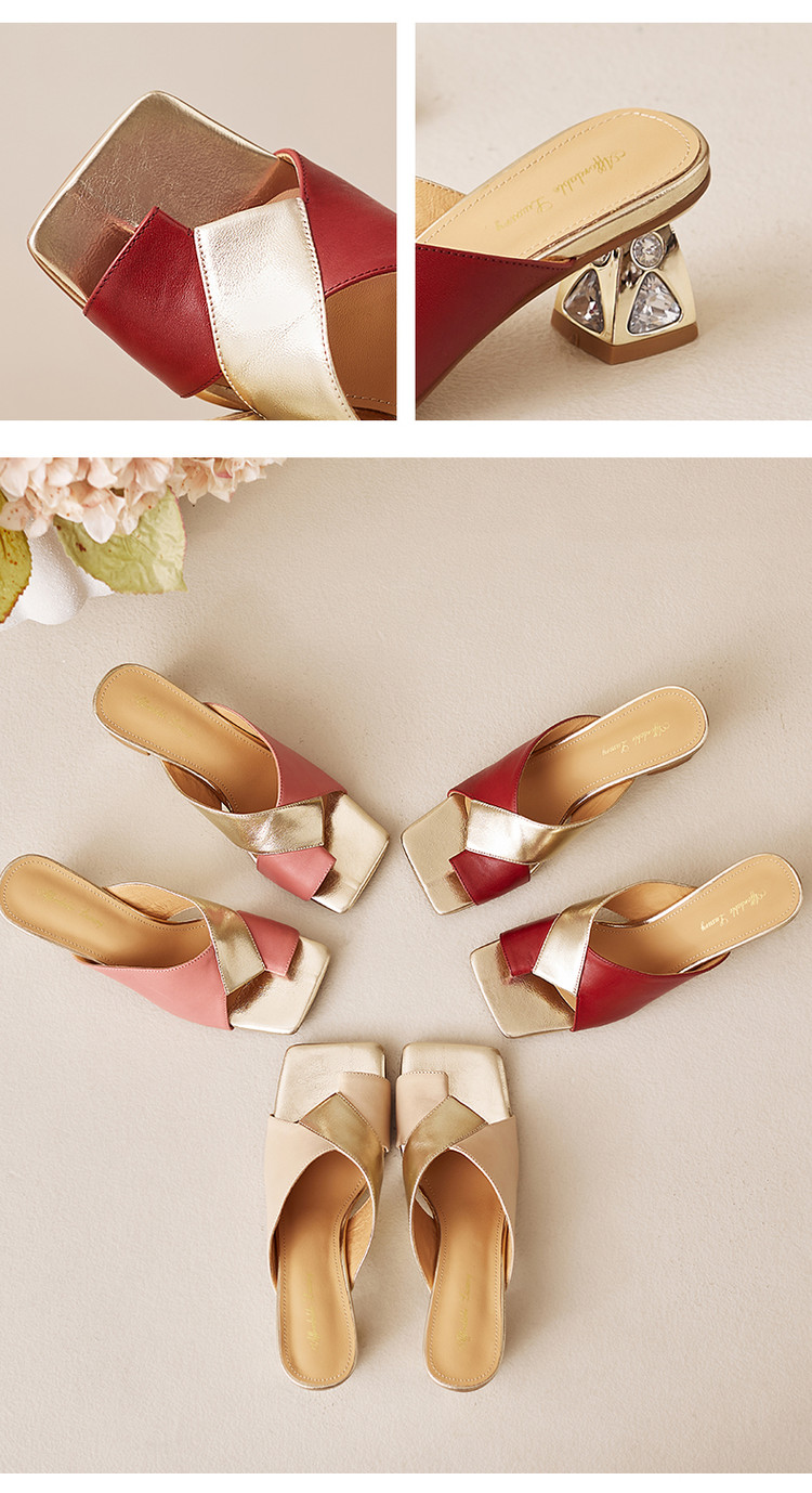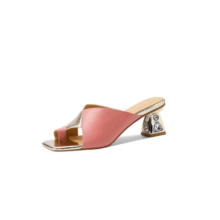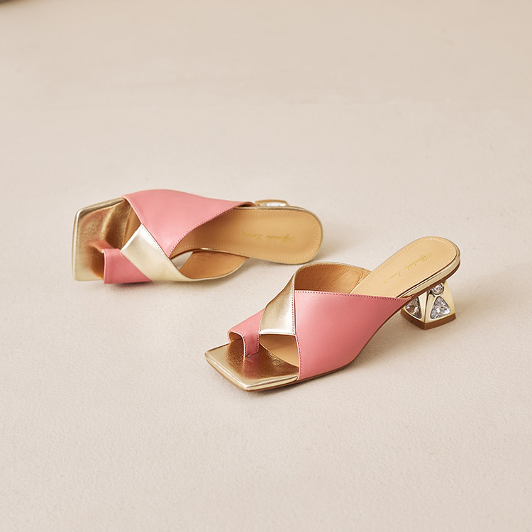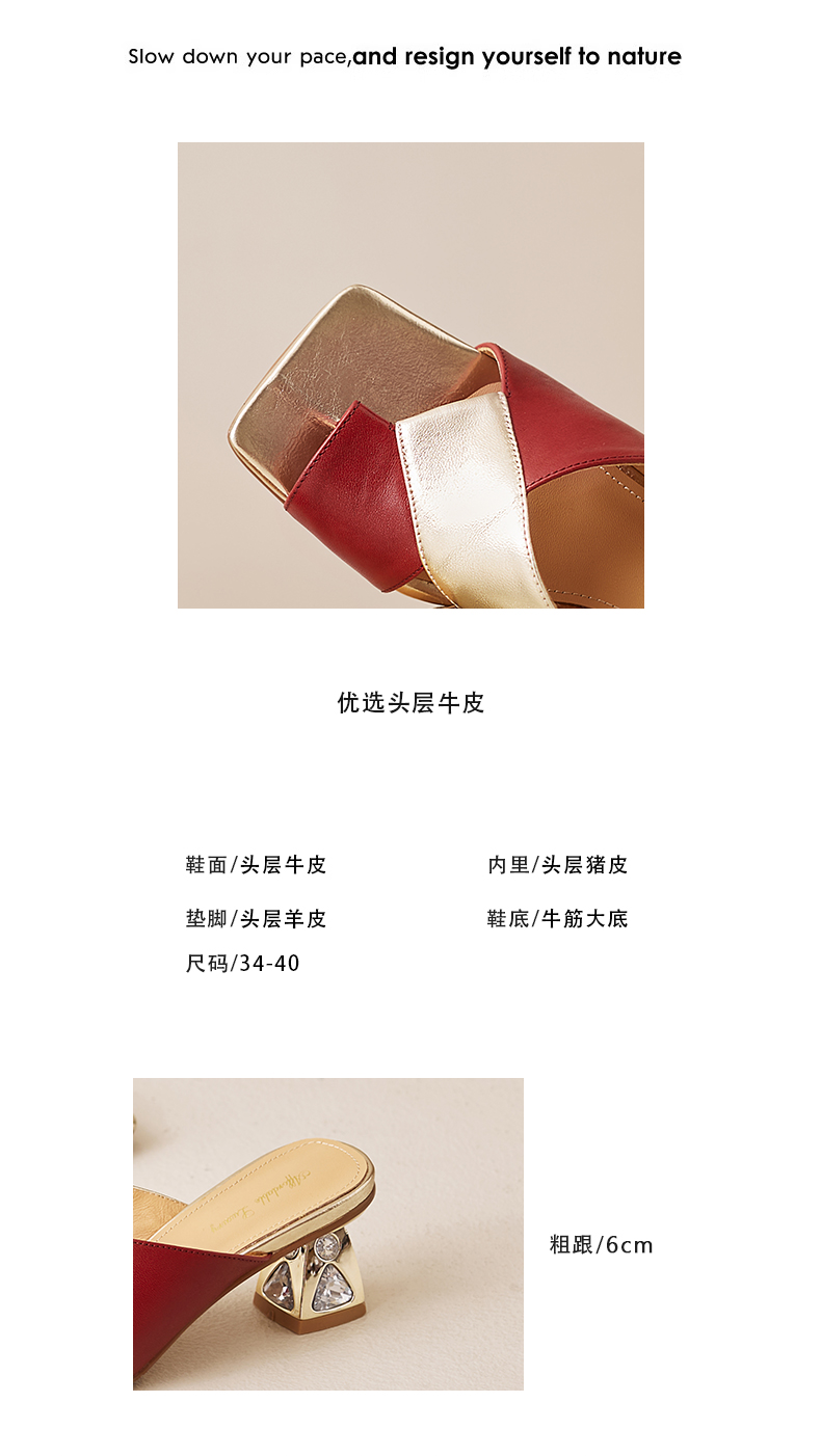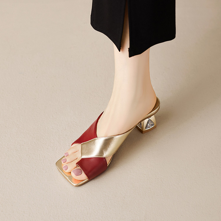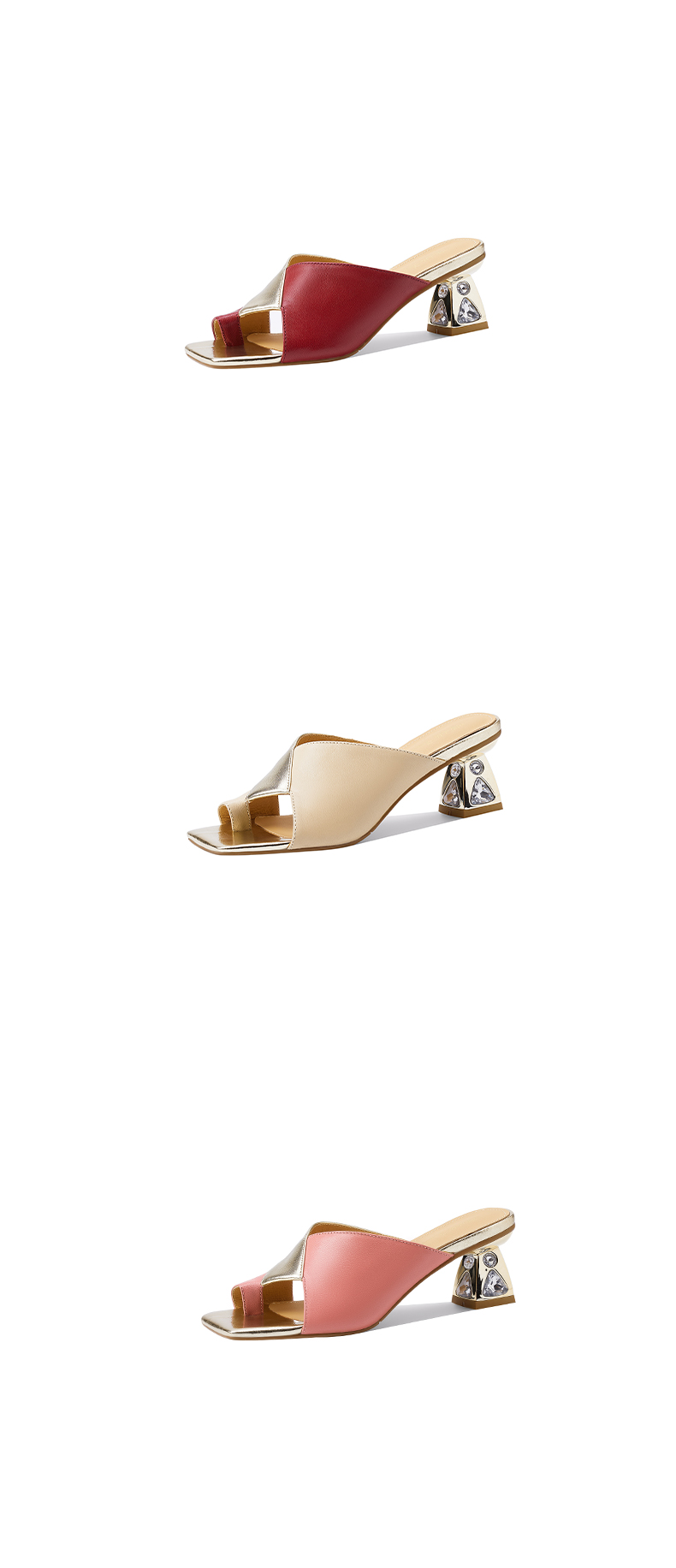 【预售5天】夏日必备复古百搭时尚露趾方头拼色高跟凉鞋MBJR&6895