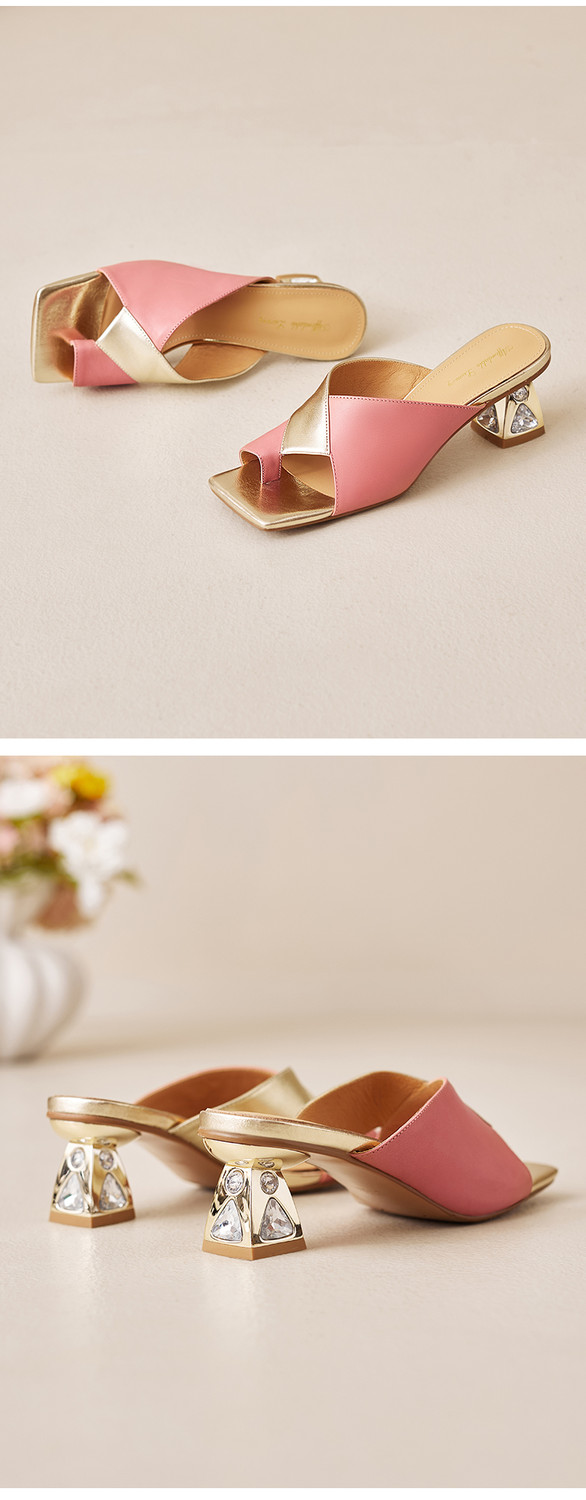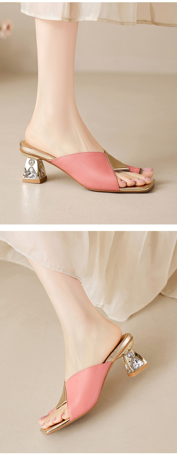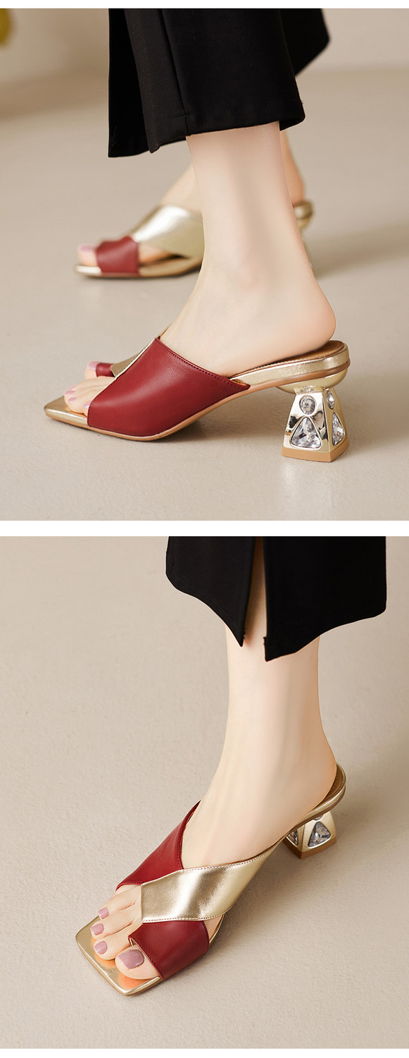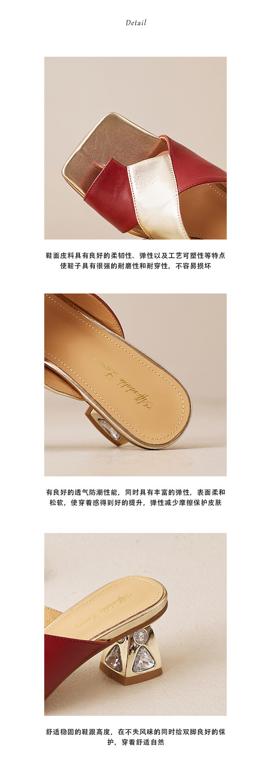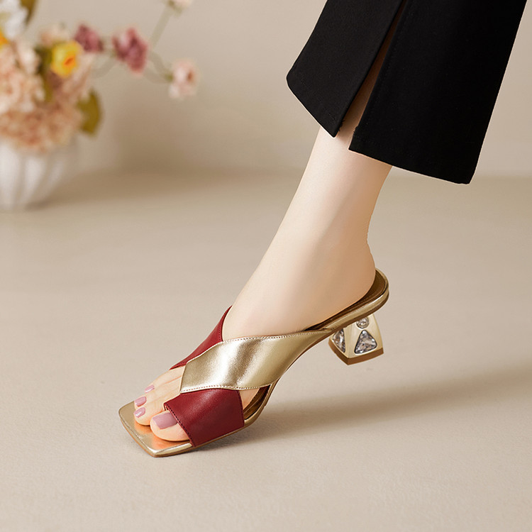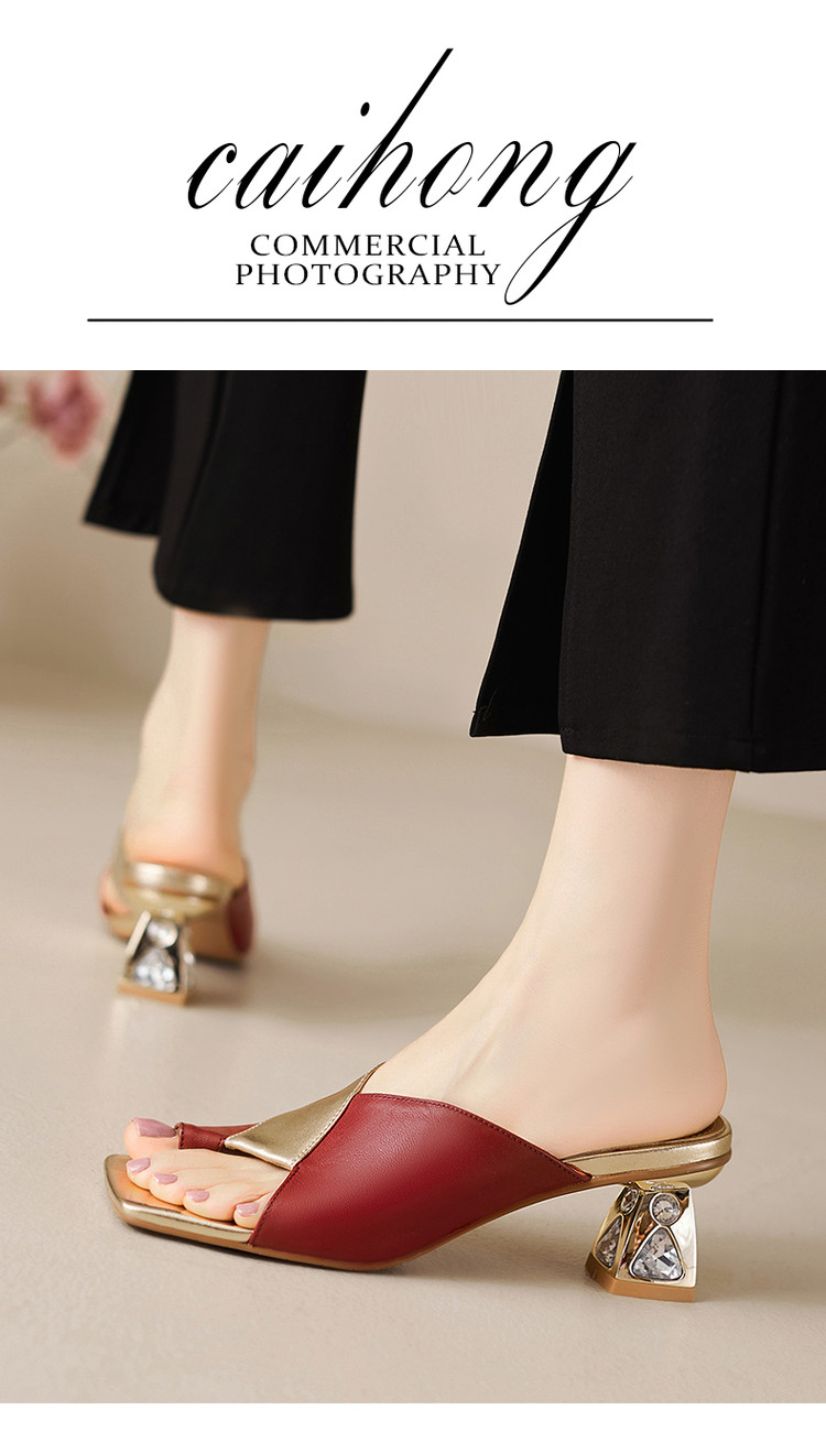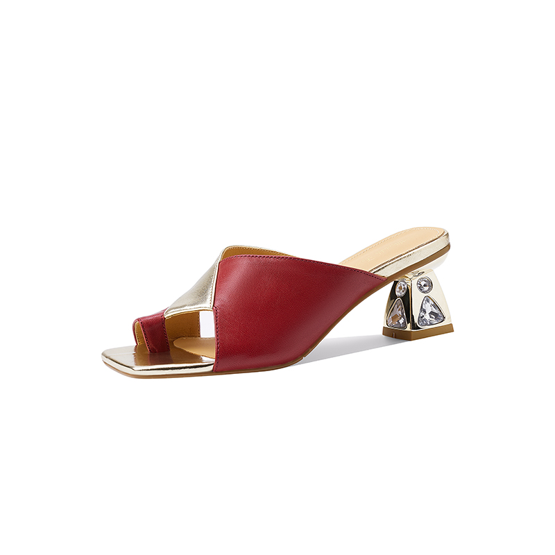 【预售5天】夏日必备复古百搭时尚露趾方头拼色高跟凉鞋MBJR&6895
