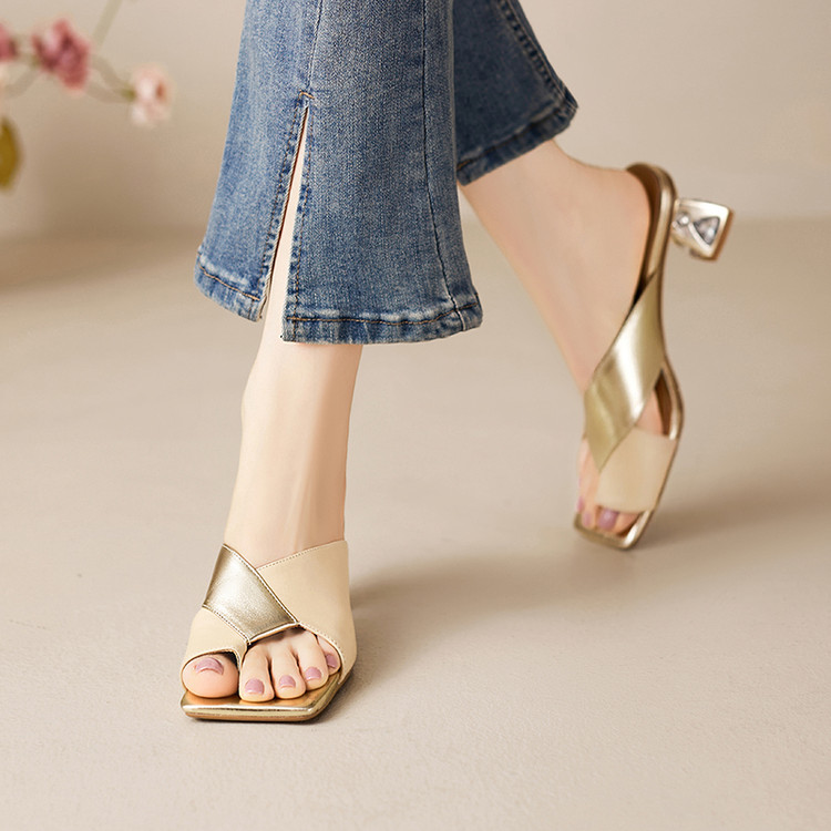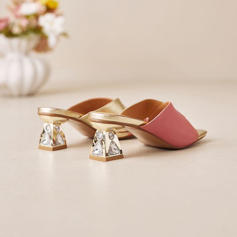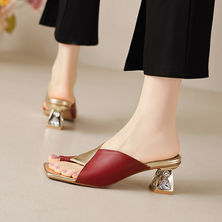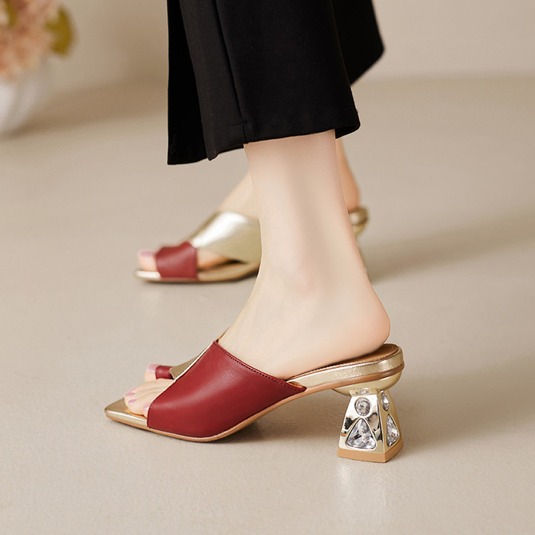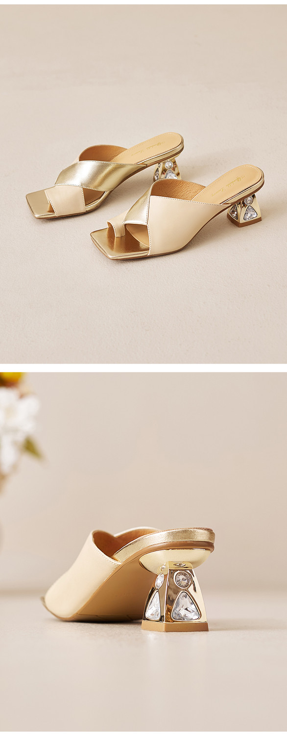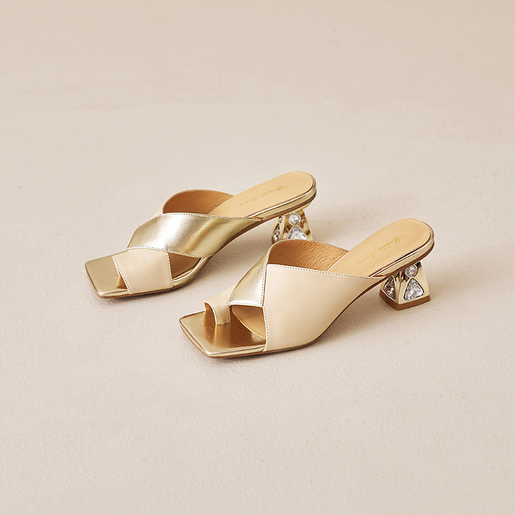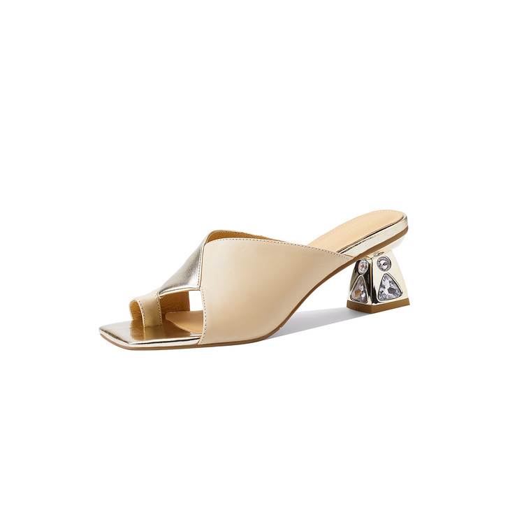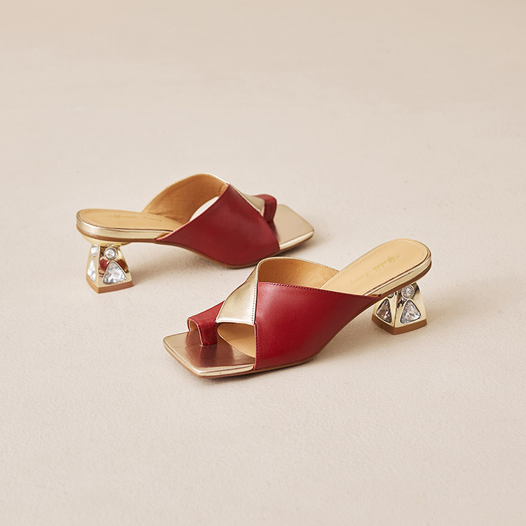 【预售5天】夏日必备复古百搭时尚露趾方头拼色高跟凉鞋MBJR&6895