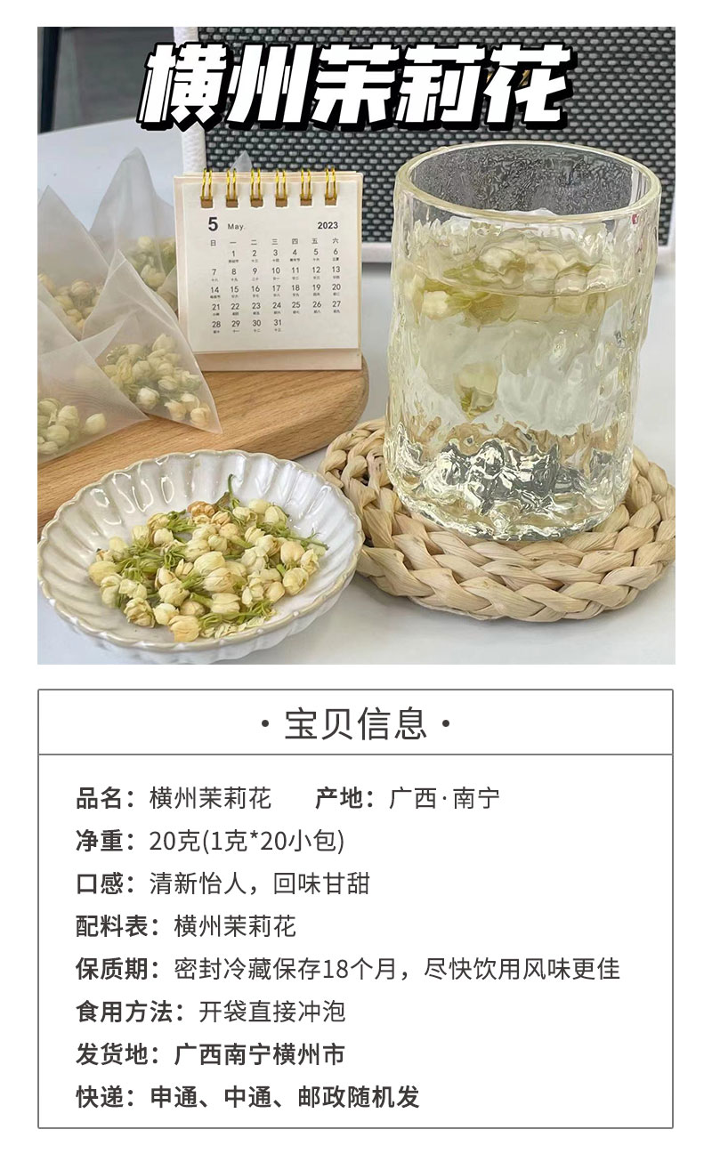 今年新花【横州茉莉花】鲜花烘制4天左右发货,清新怡人,回味甘甜,无香精、无防腐剂,茉莉原香,非遗传承人制作