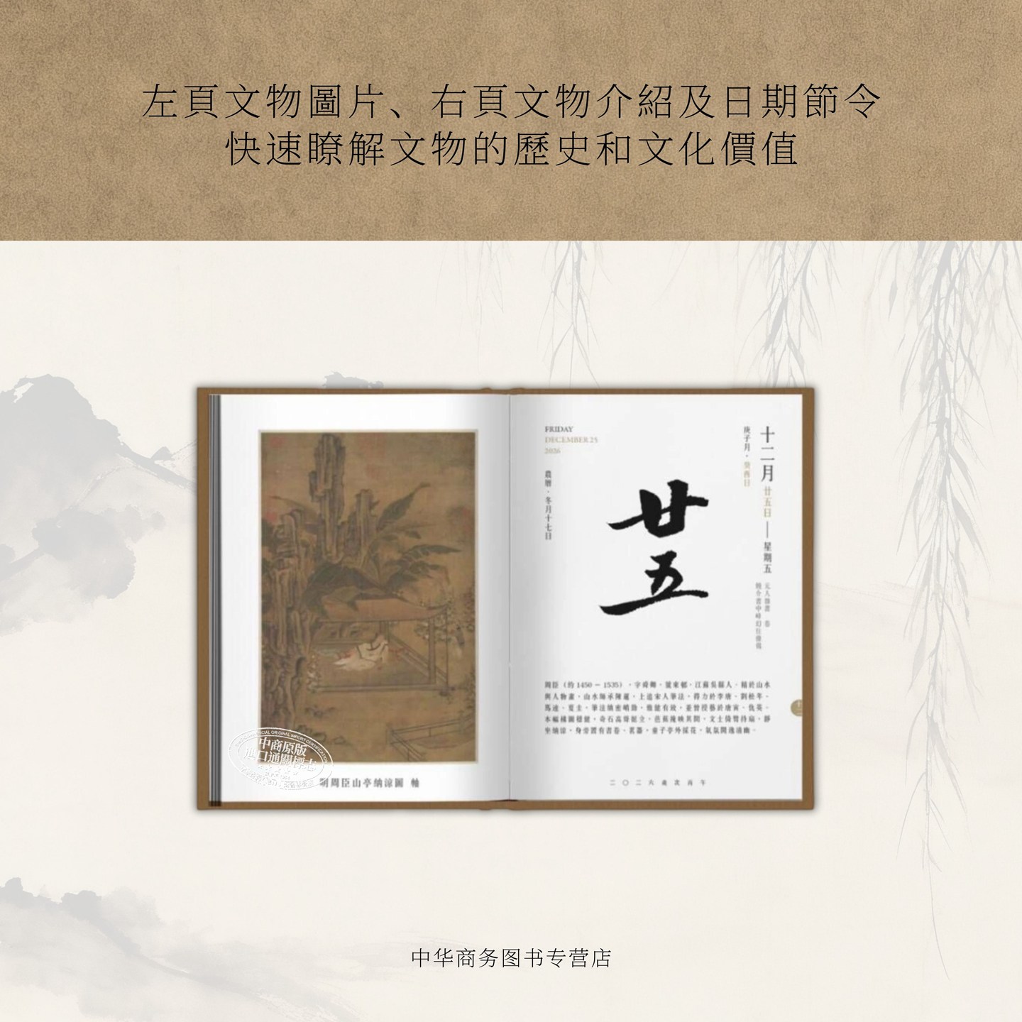 翻開日曆,左頁文物圖片、右頁文物介紹及日期節令,讓讀者快速瞭解文物的歷史和文化價值。