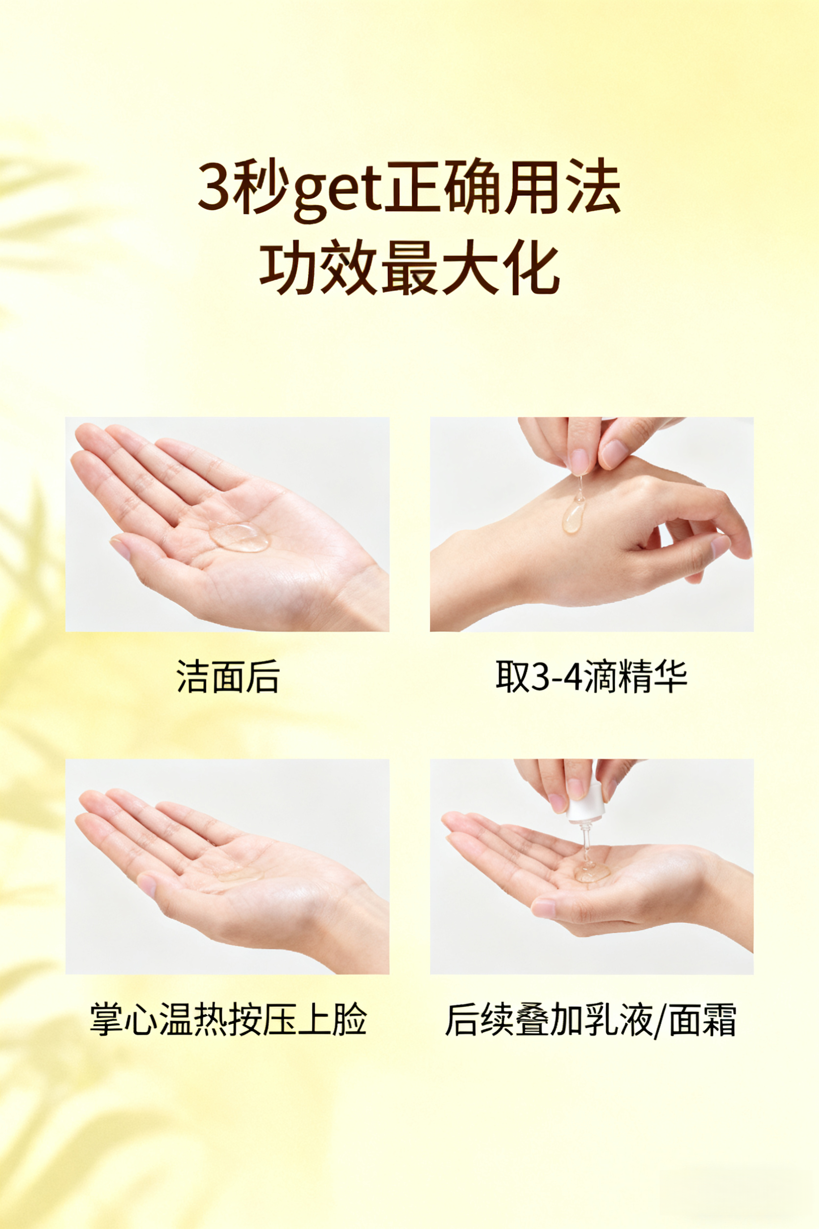 1️⃣ 洁面后取3-5滴于掌心
