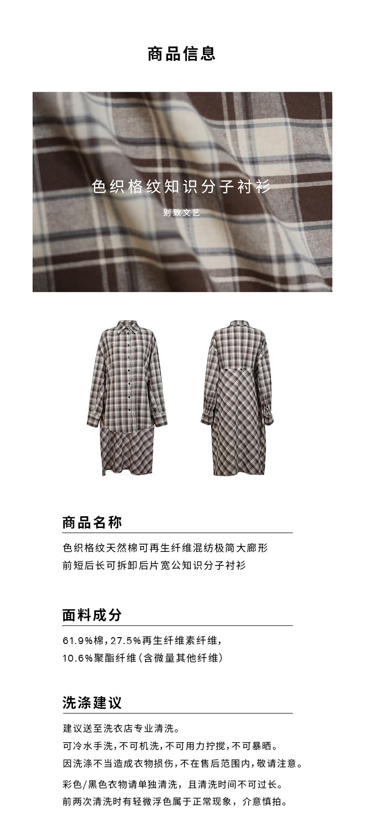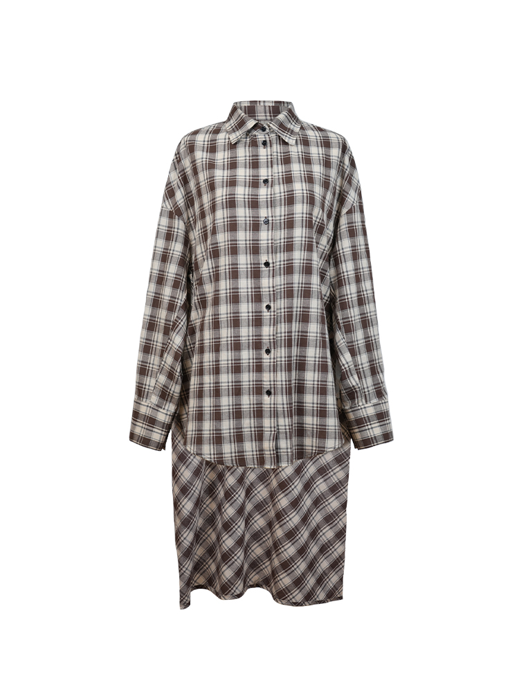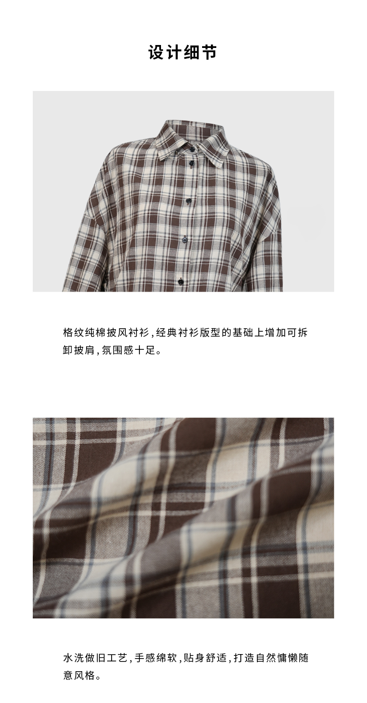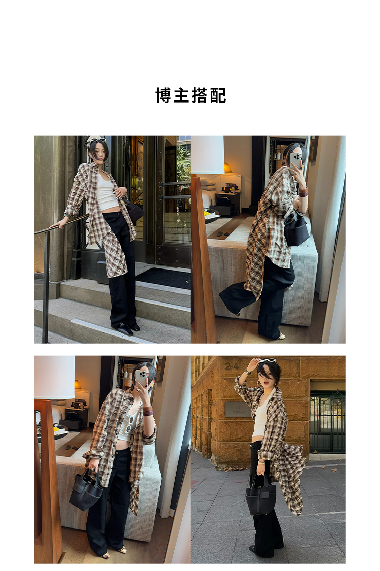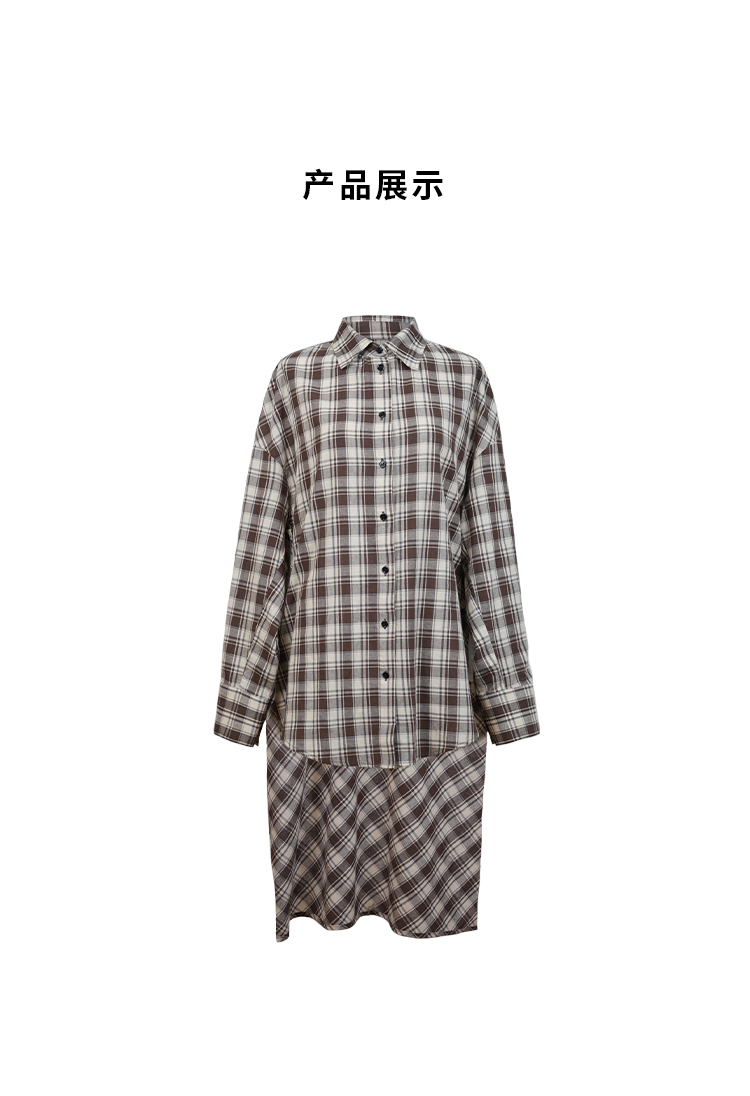 HIDEMI色织格纹极简大廊形前短后长可拆卸后片宽公知识分子衬衫女