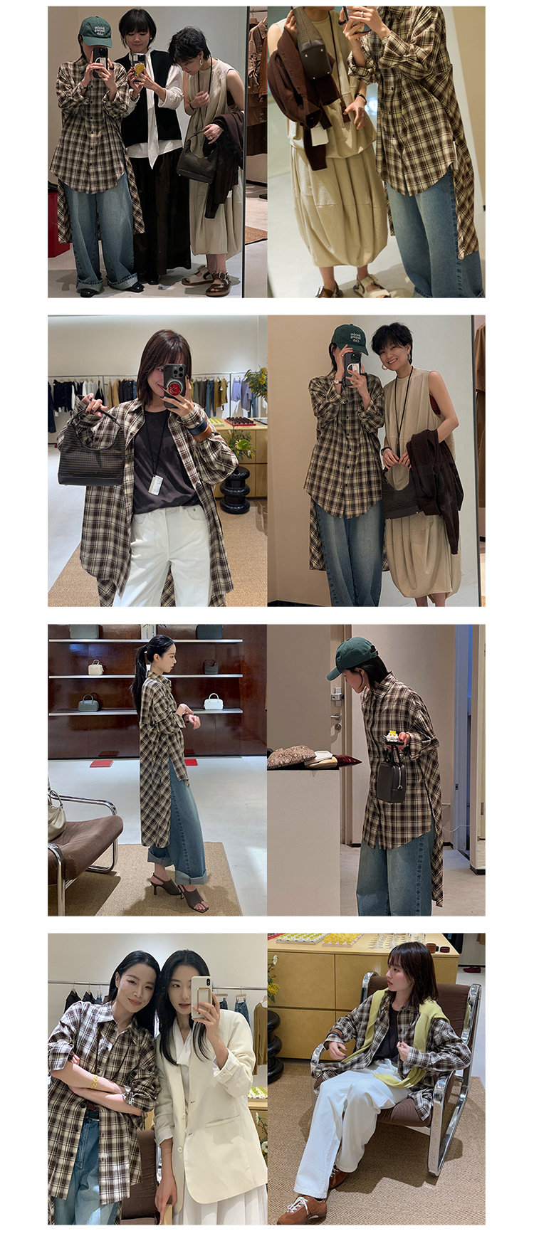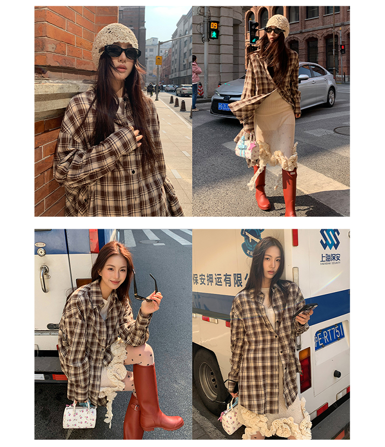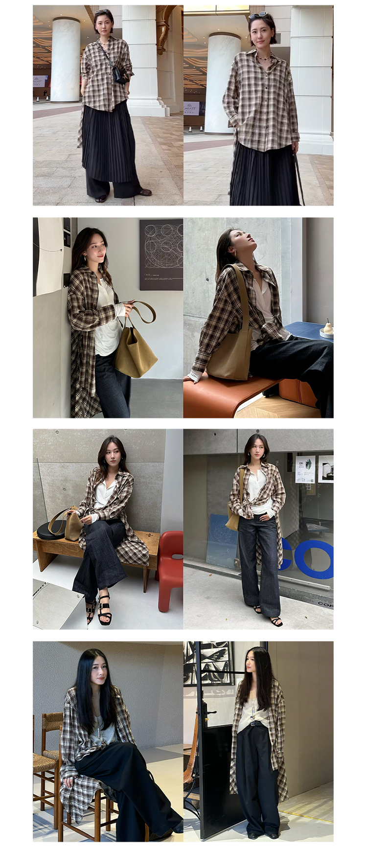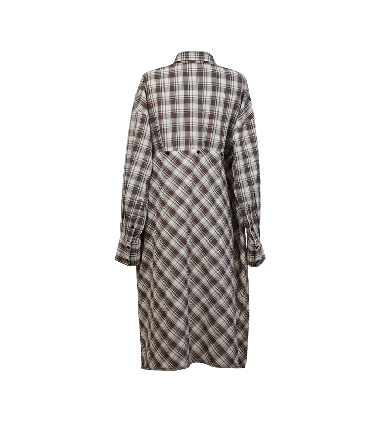 HIDEMI色织格纹极简大廊形前短后长可拆卸后片宽公知识分子衬衫女