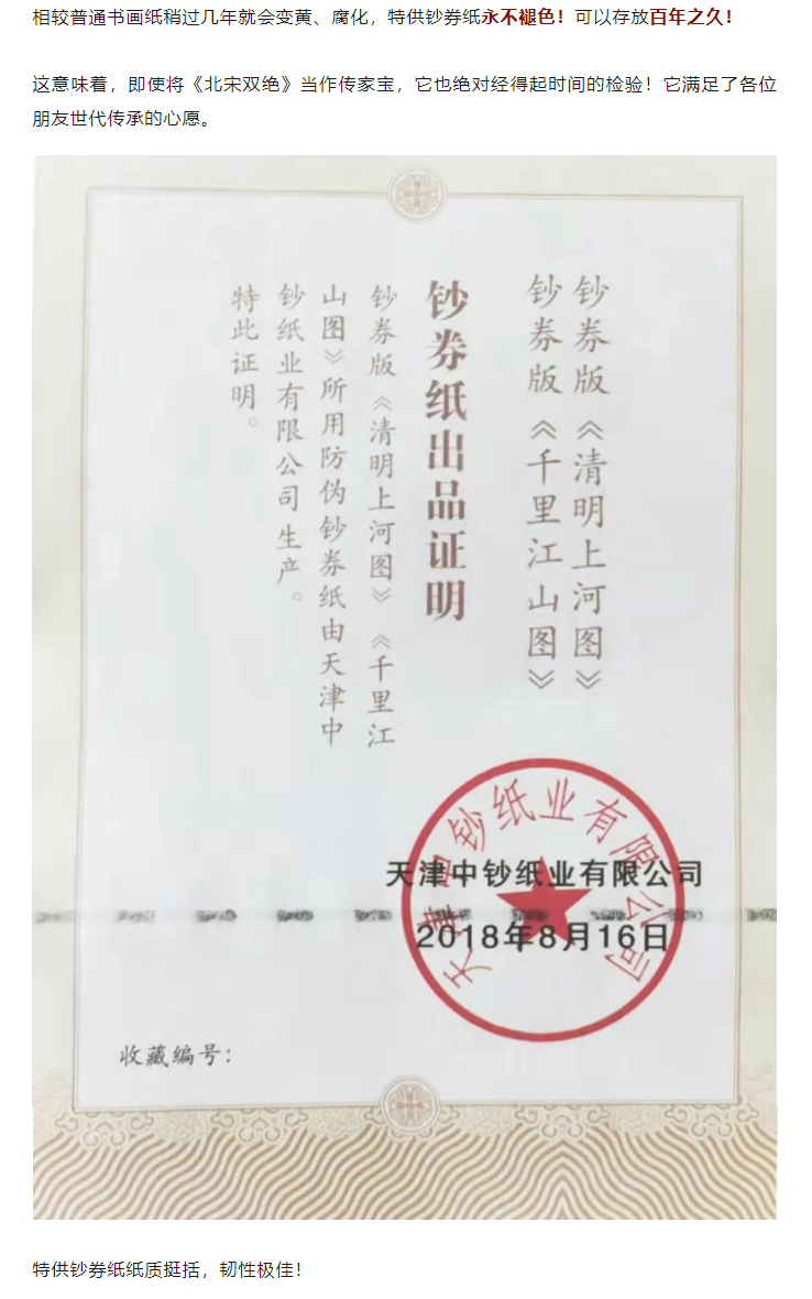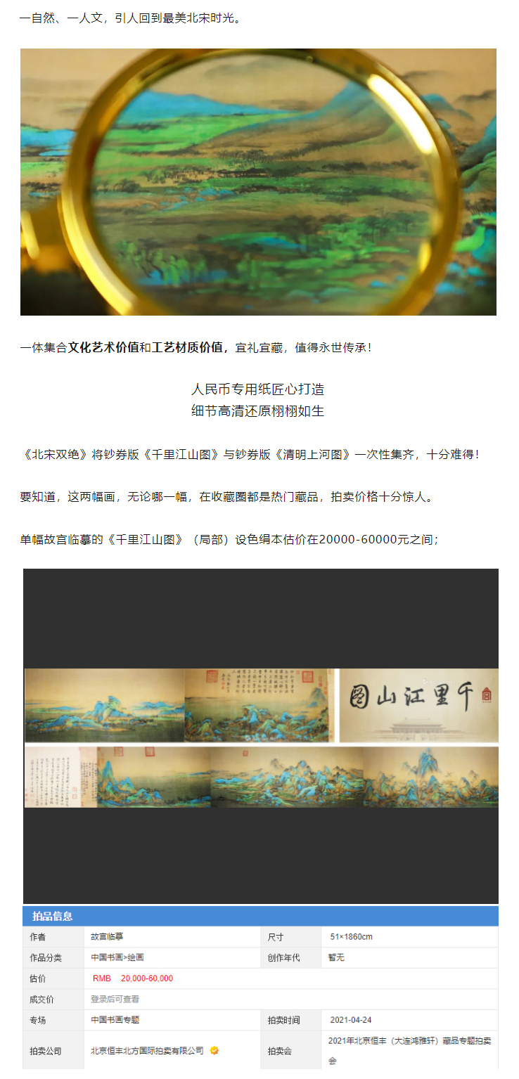 《北宋双绝》天津中钞 钞卷丝绸 超高清还原2幅旷世奇作