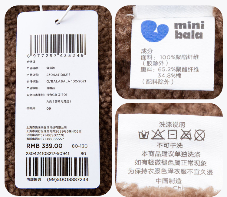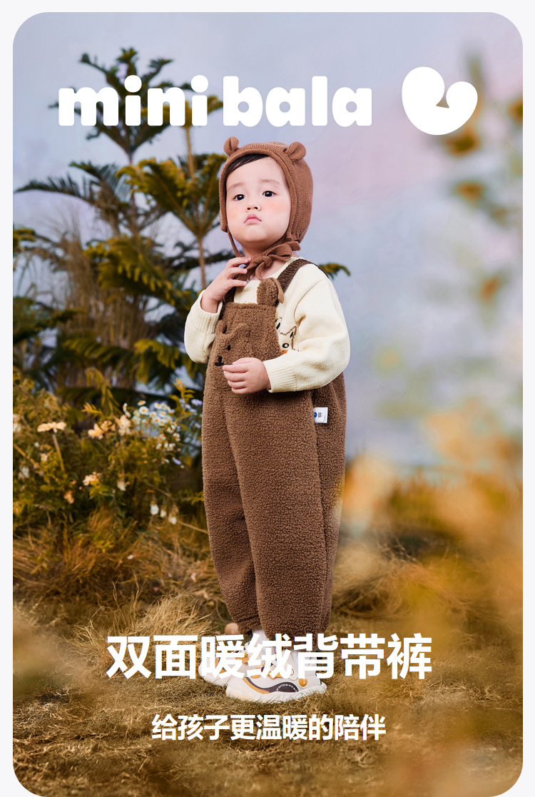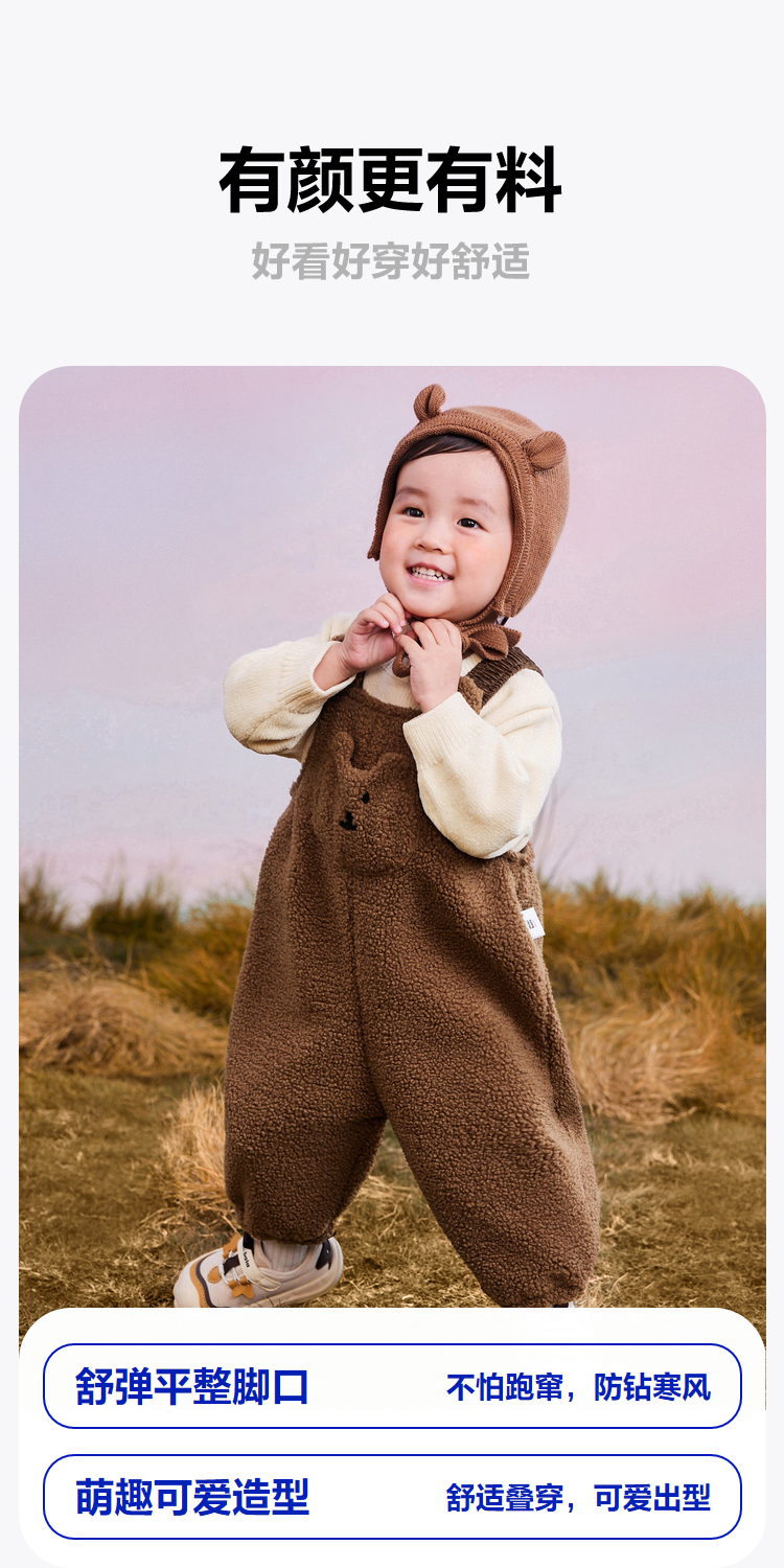 【背带裤】迷你巴拉男女童冬新品双面绒裤子保暖造型长裤