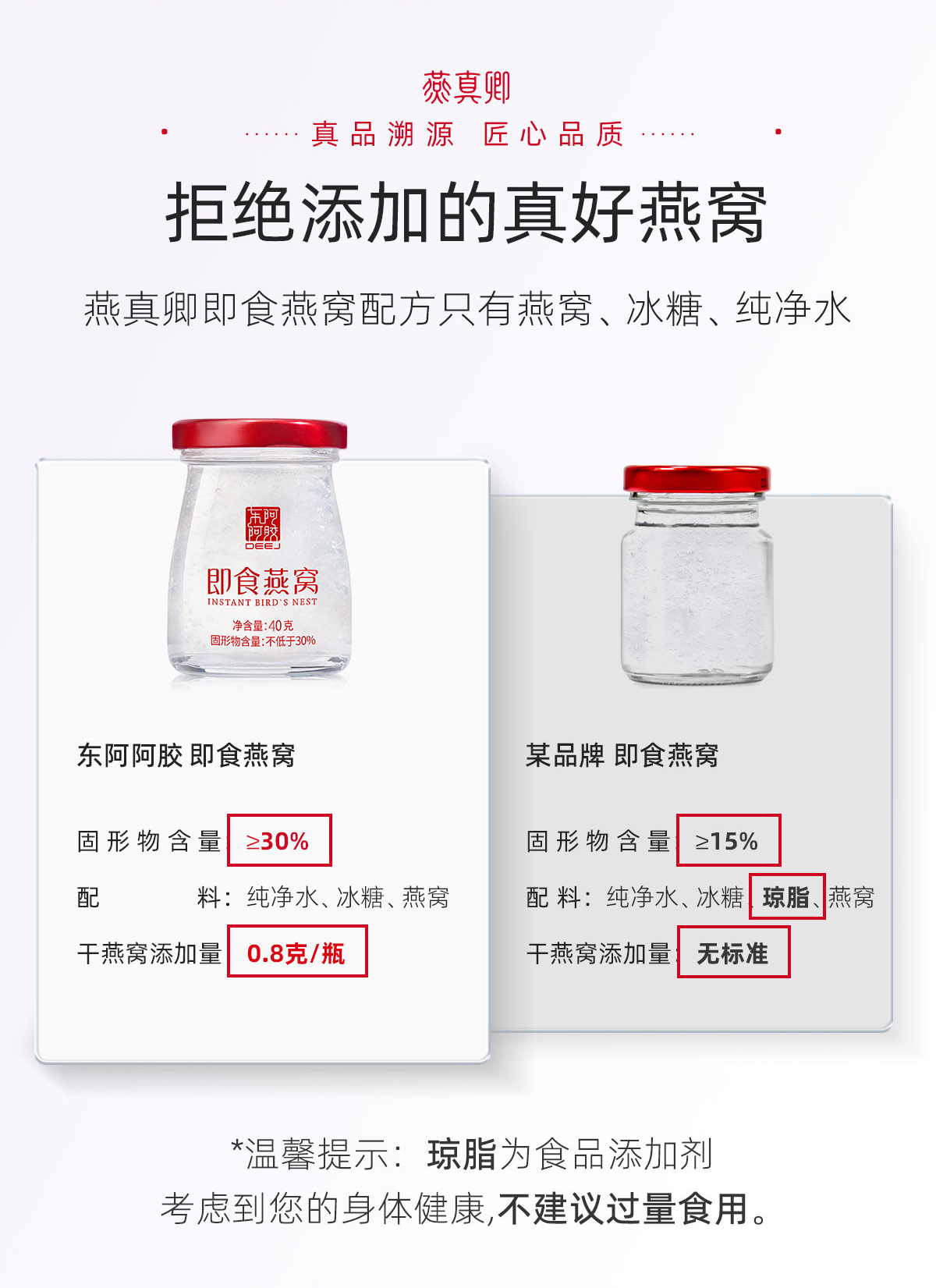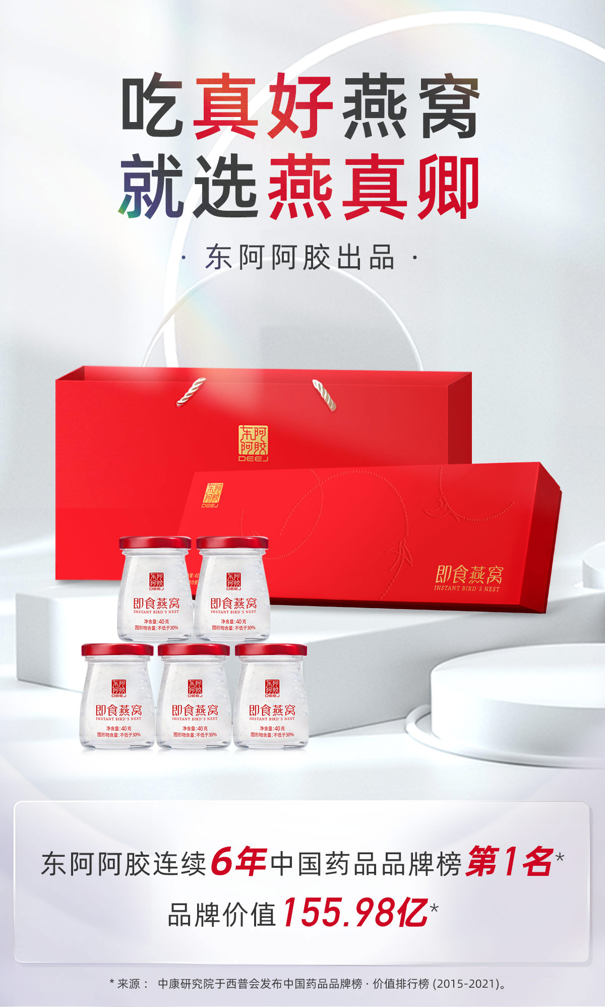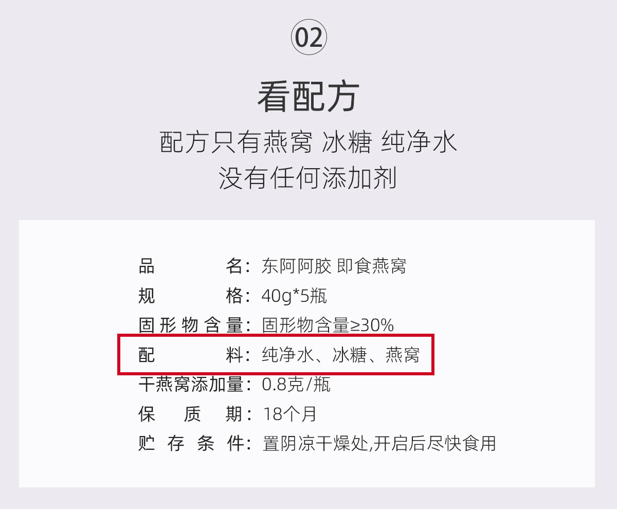东阿阿胶燕窝含量30% 40克*5瓶