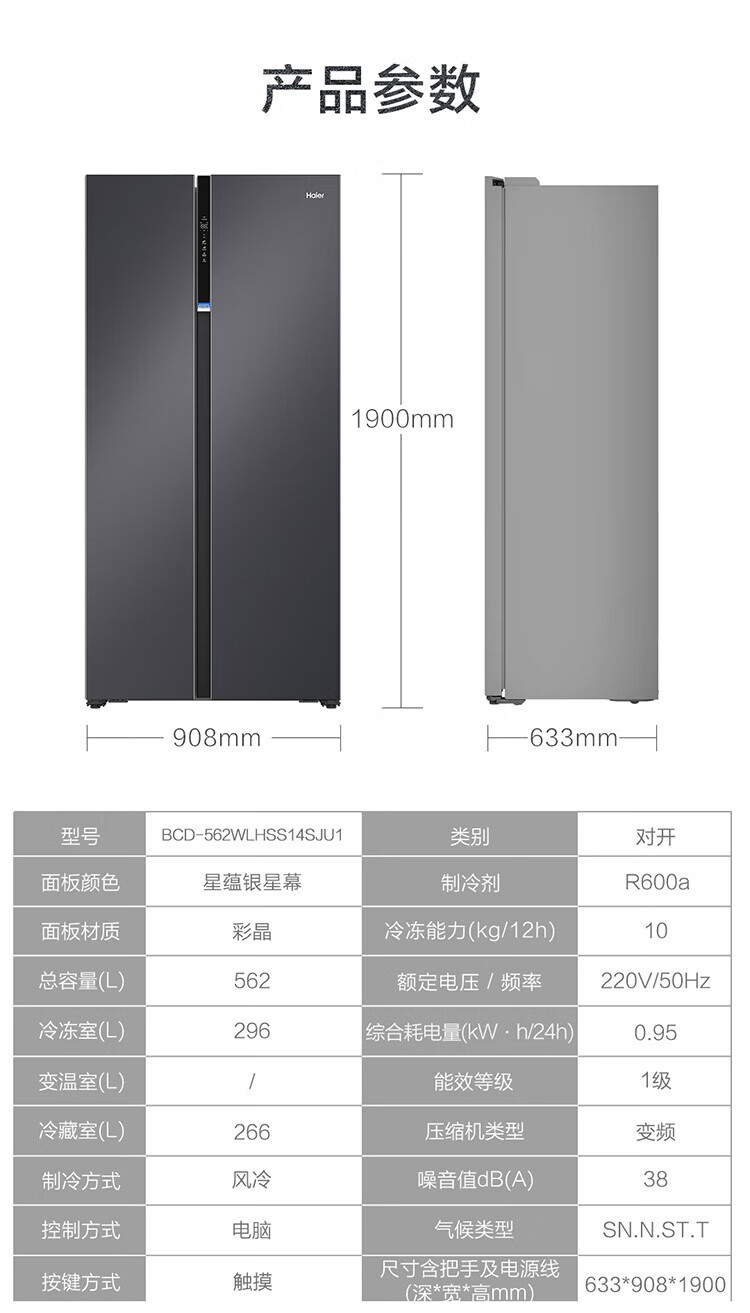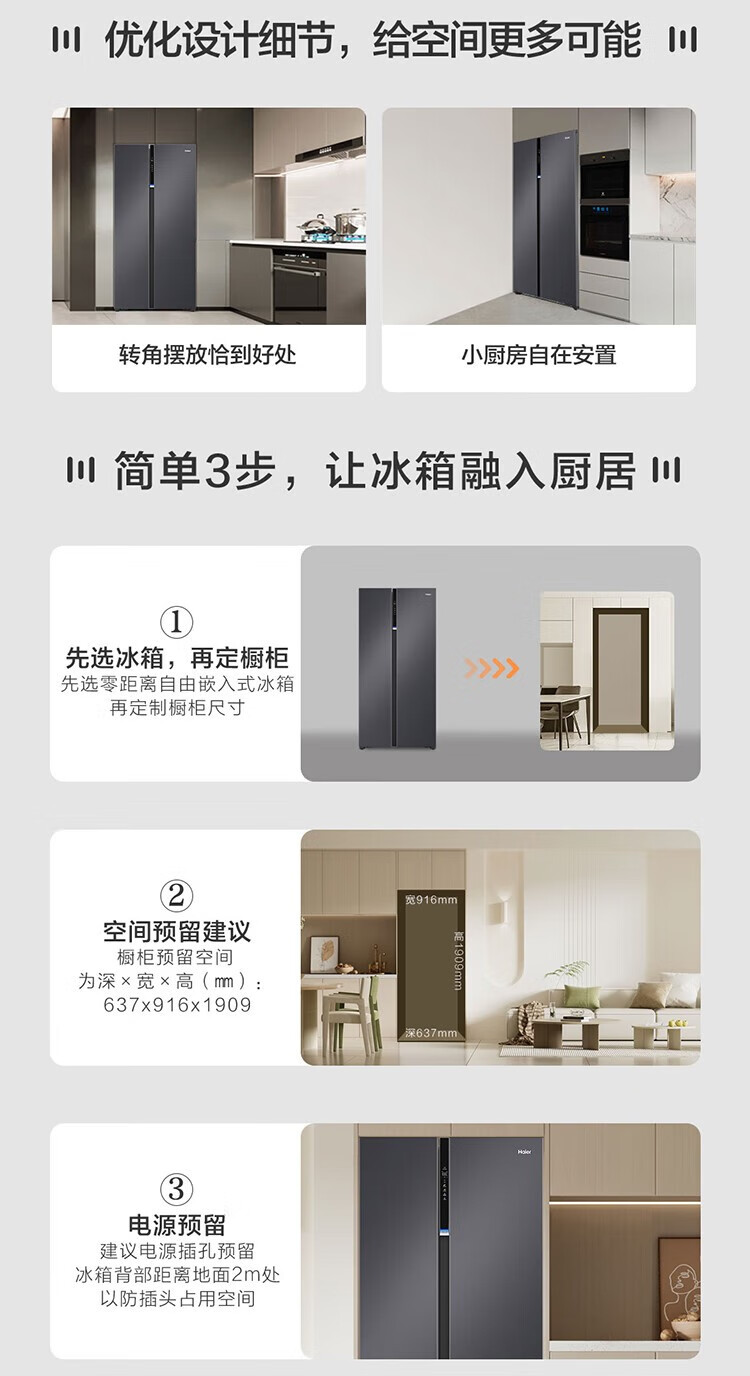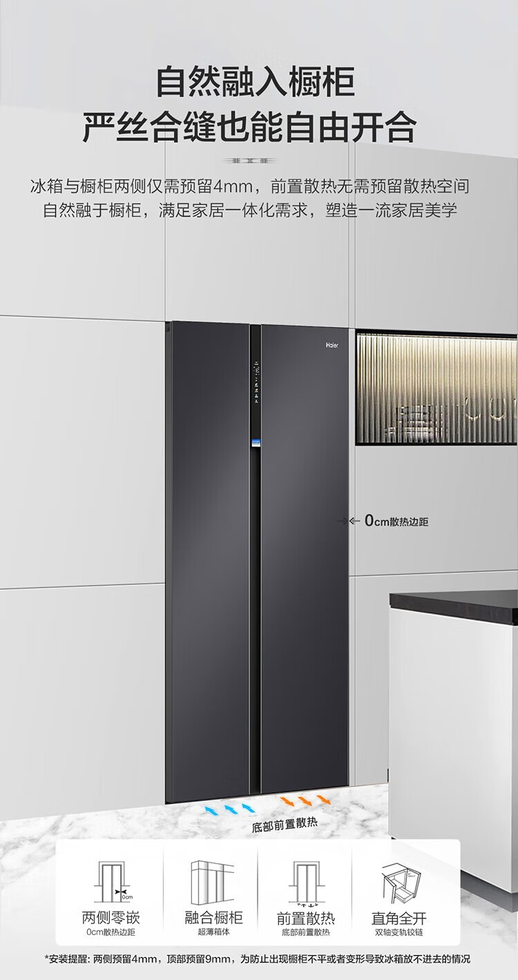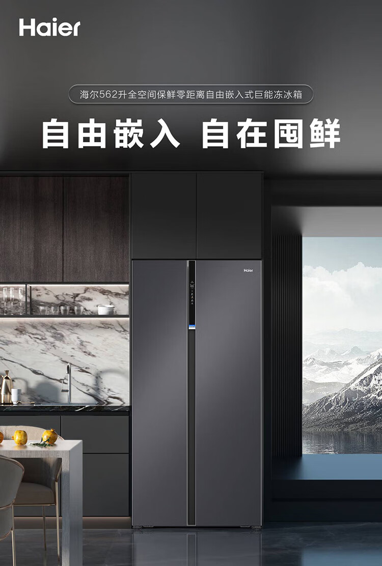 【星珀系列】海尔冰箱562升零距离自由嵌入式冰箱对开门全空间保鲜阻氧干湿分储智能恒温大冷冻巨能冻冰箱 562L星蕴银+零距离嵌入+全空间保鲜+全域除菌