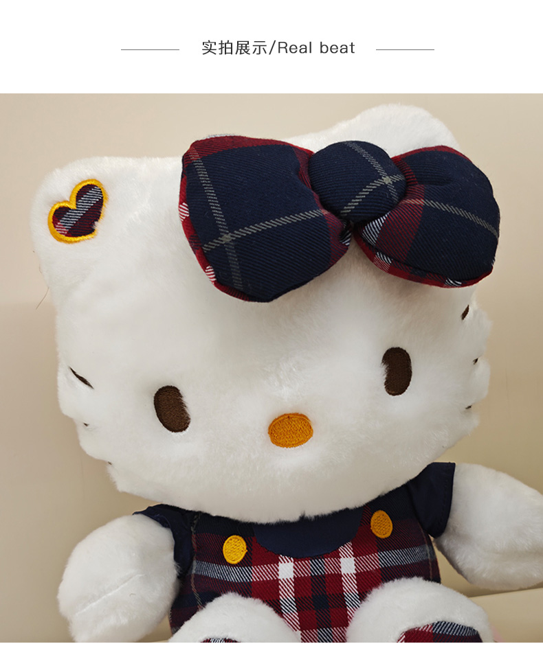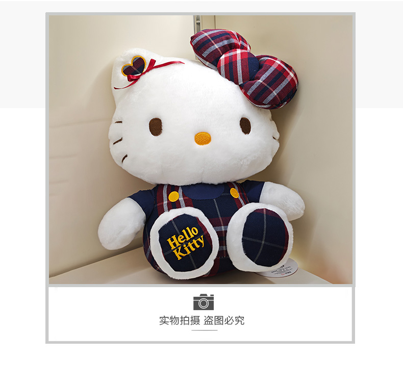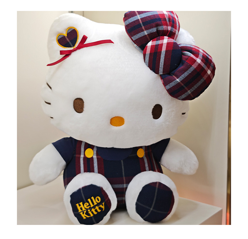 12寸学院KT可爱复古格子凯蒂猫hellokitty毛绒玩具生日礼物毛绒公仔-纪念日百货门店同款168097168