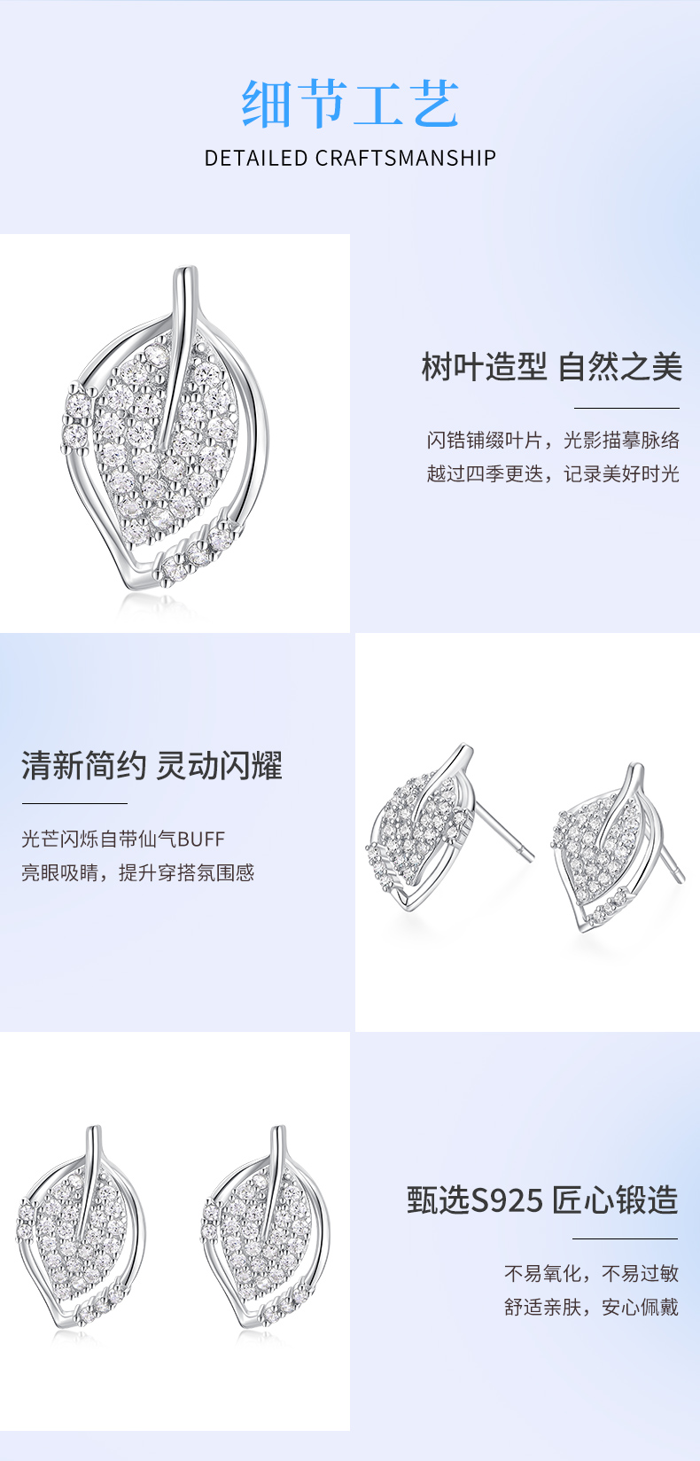 卡蒂罗/KADER 森系小树叶耳钉 清新小众镂空叶片设计纯银养耳洞耳饰 春夏百搭睡觉免摘简约时尚#好运配饰