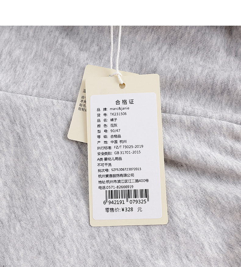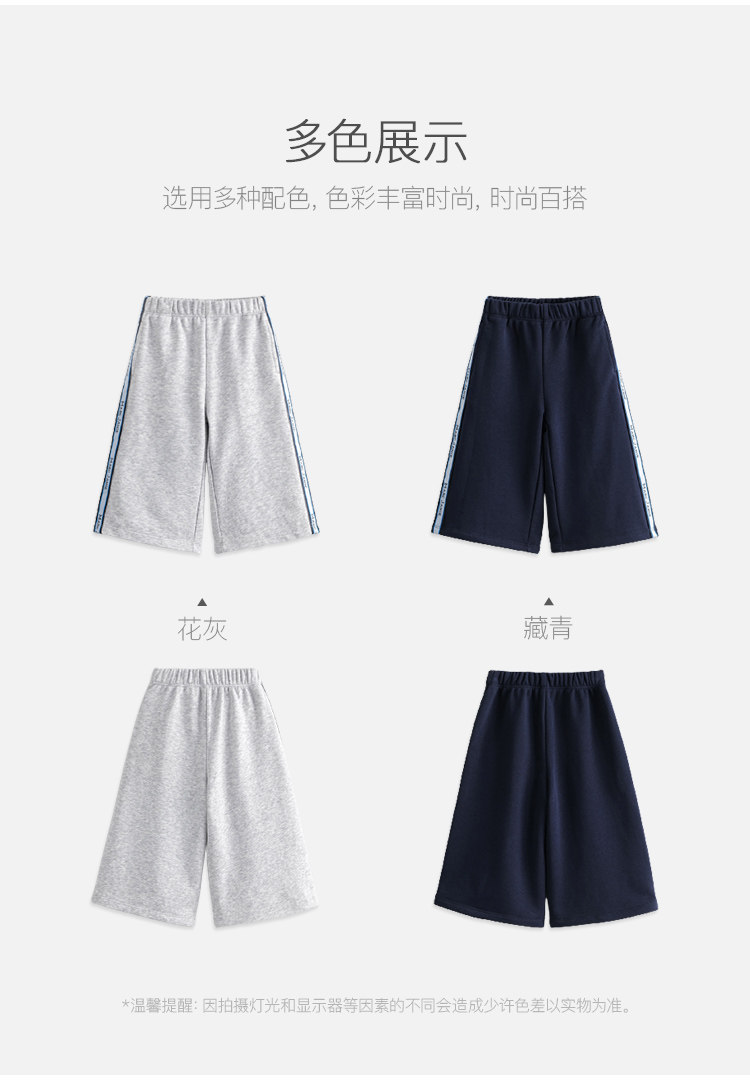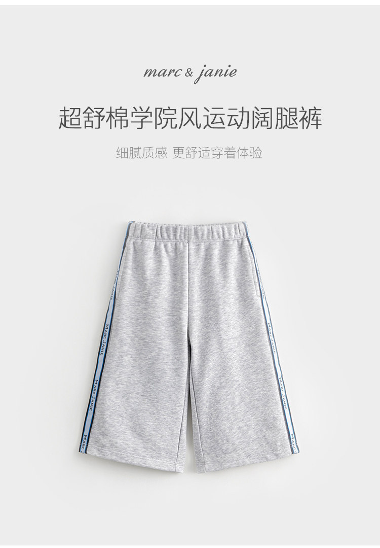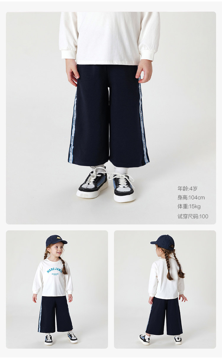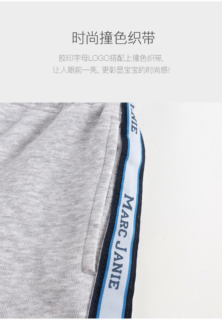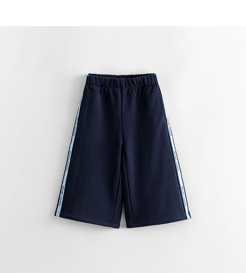 马克珍妮秋装新款 女童超舒棉学院风撞色织带直筒运动卫裤231506