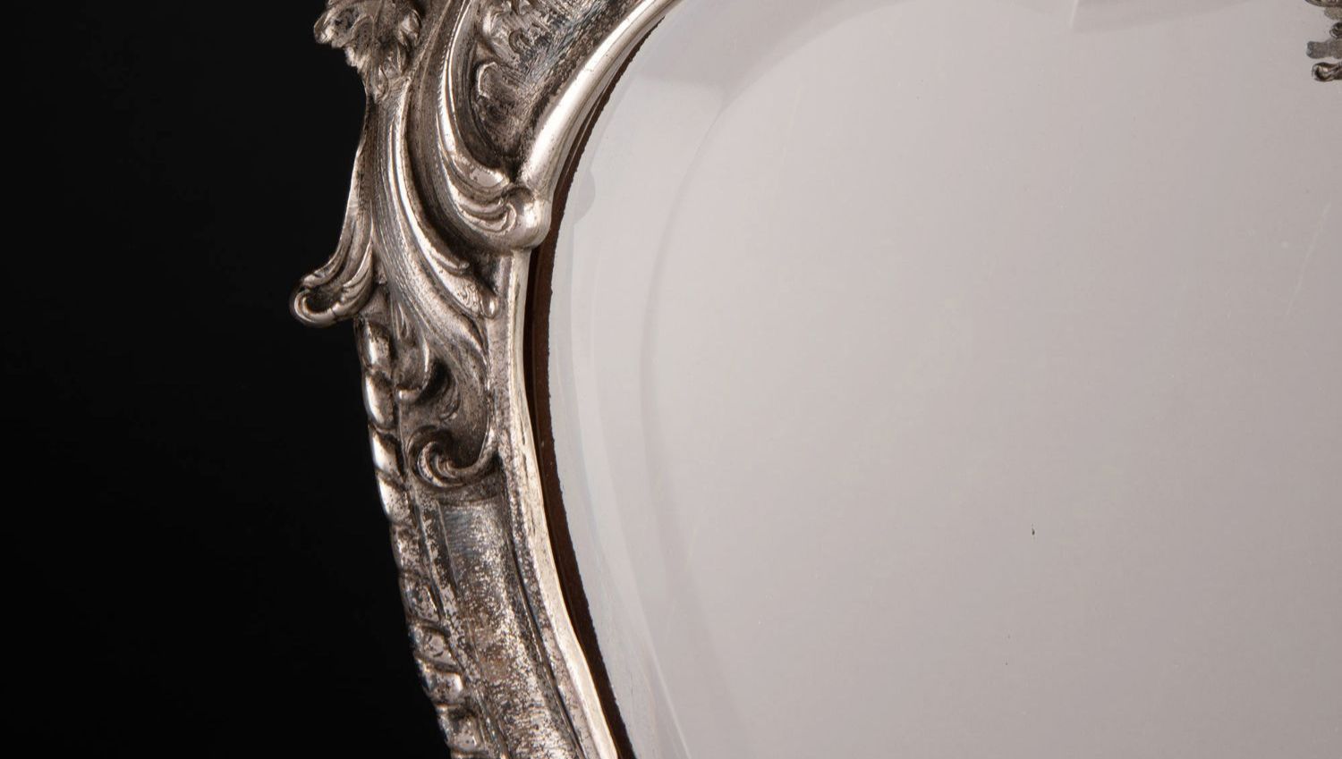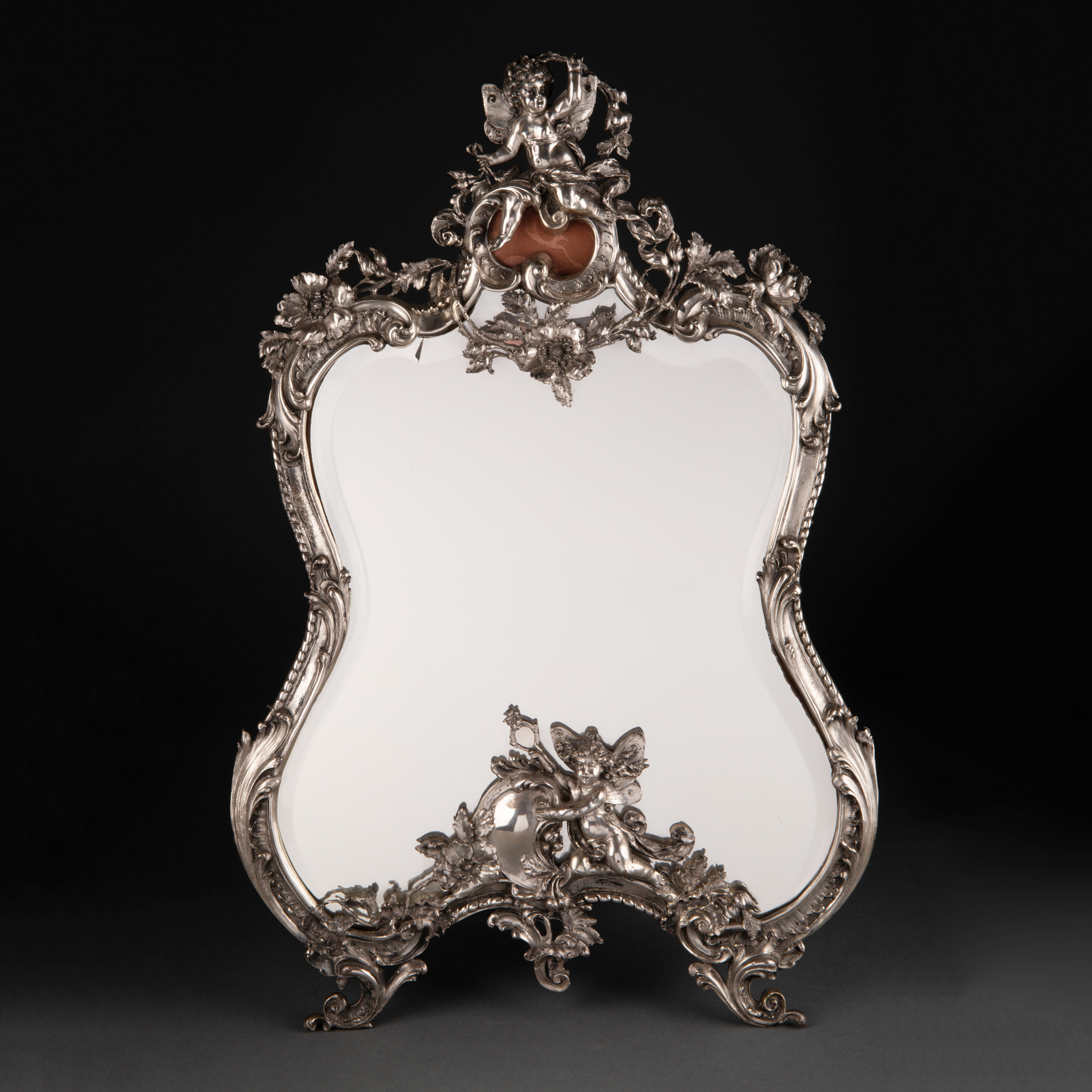 独角鹿西洋古董德国洛可可风爱神丘比特与普绪克纯银雕饰梳妆座镜