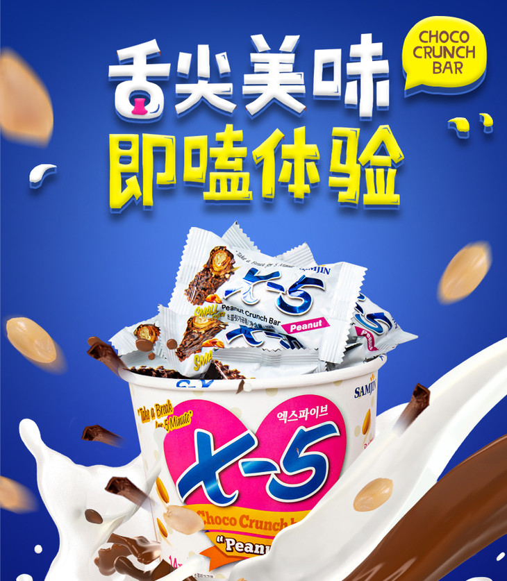 X-5 花生夹心代可可脂巧克力制品桶装分享装266g