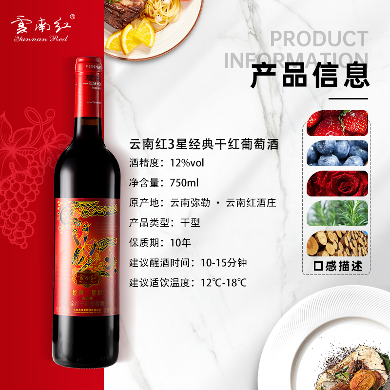 【99元任选3样】云南红3星经典玫瑰蜜干红12度750ml弥勒酒庄