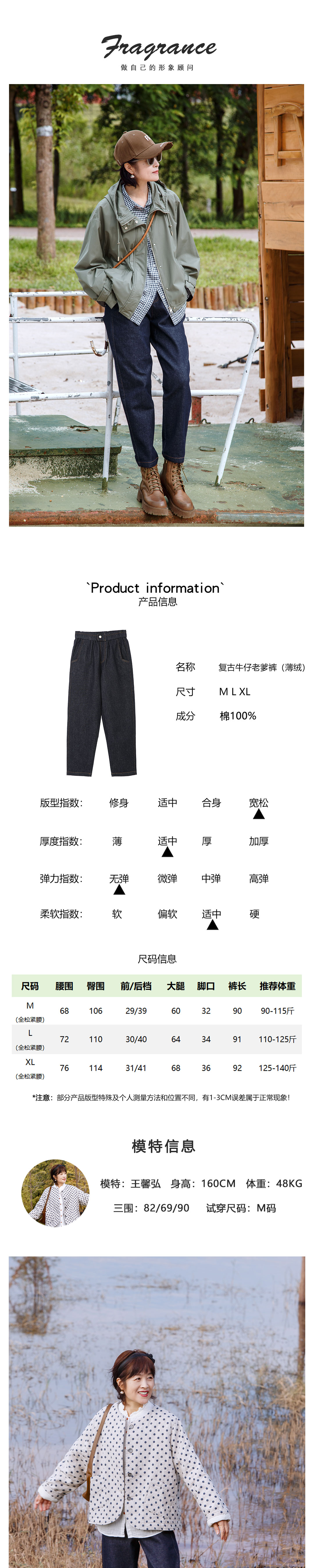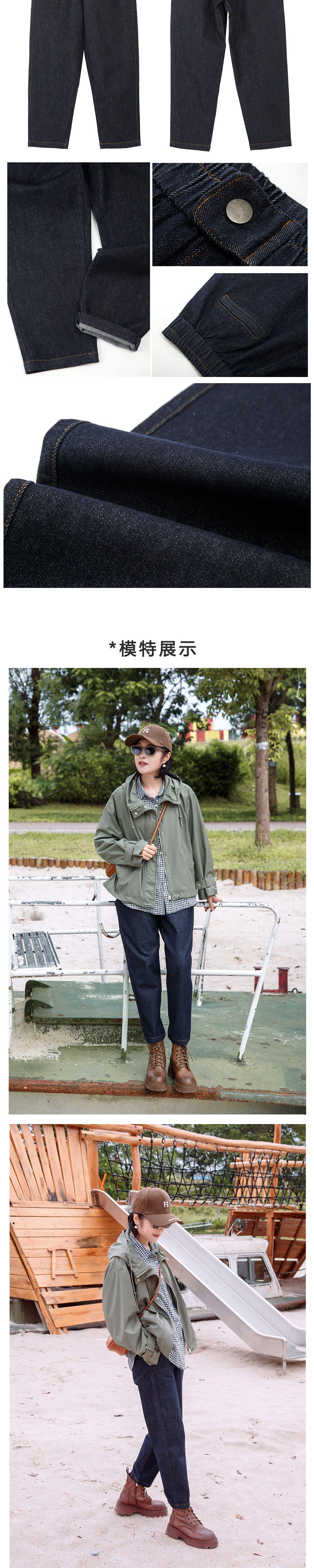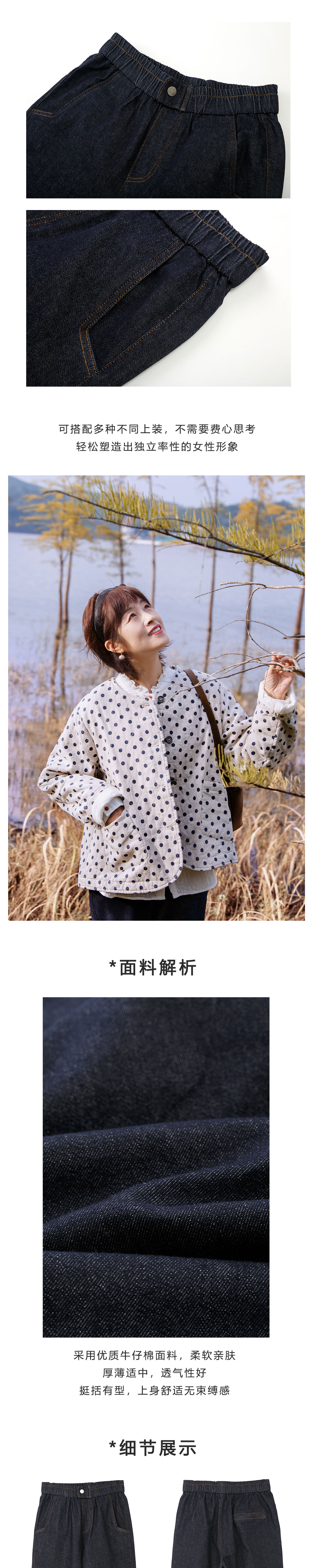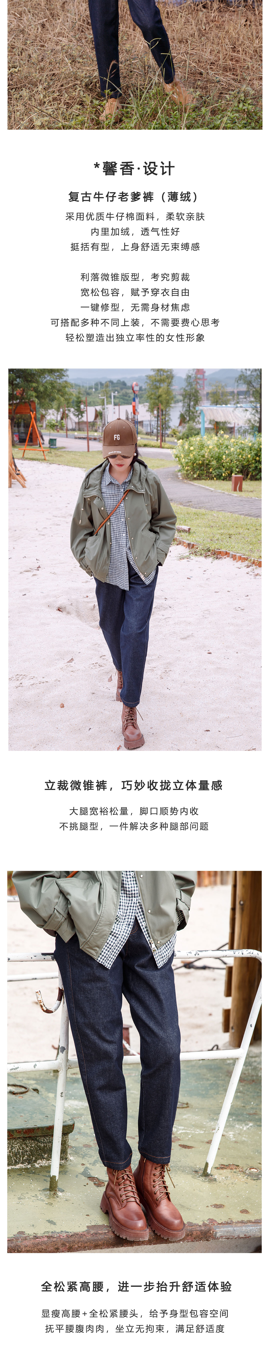 薄绒复古牛仔老爹裤