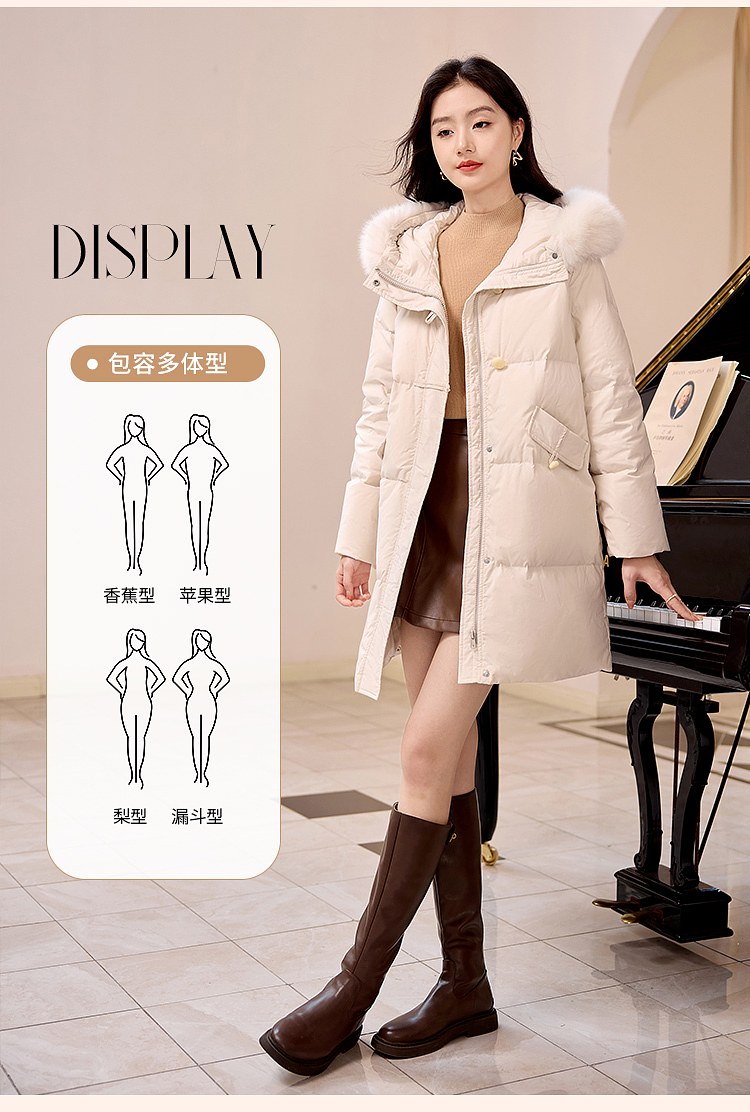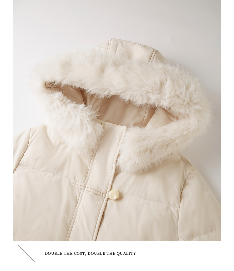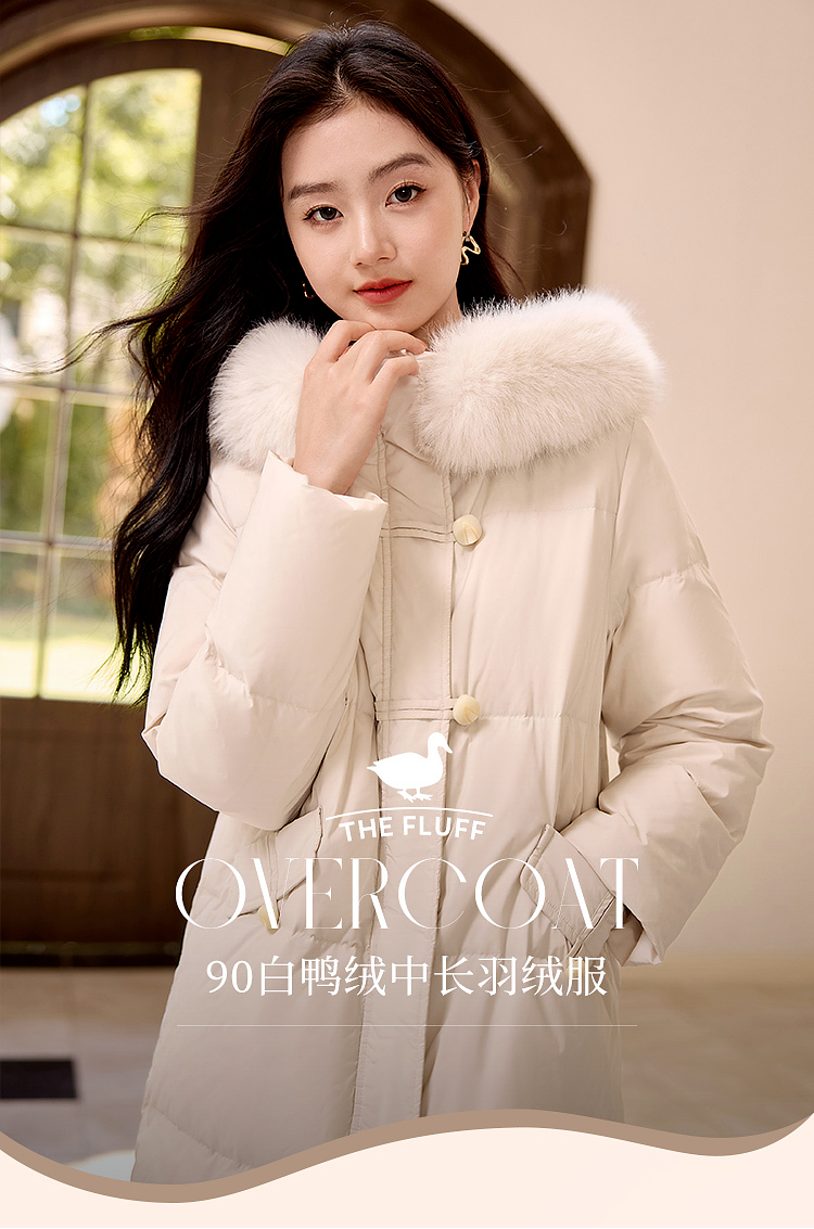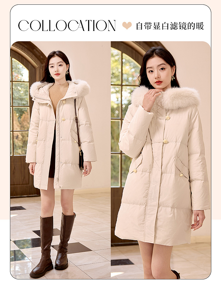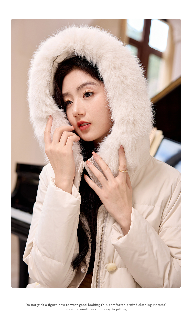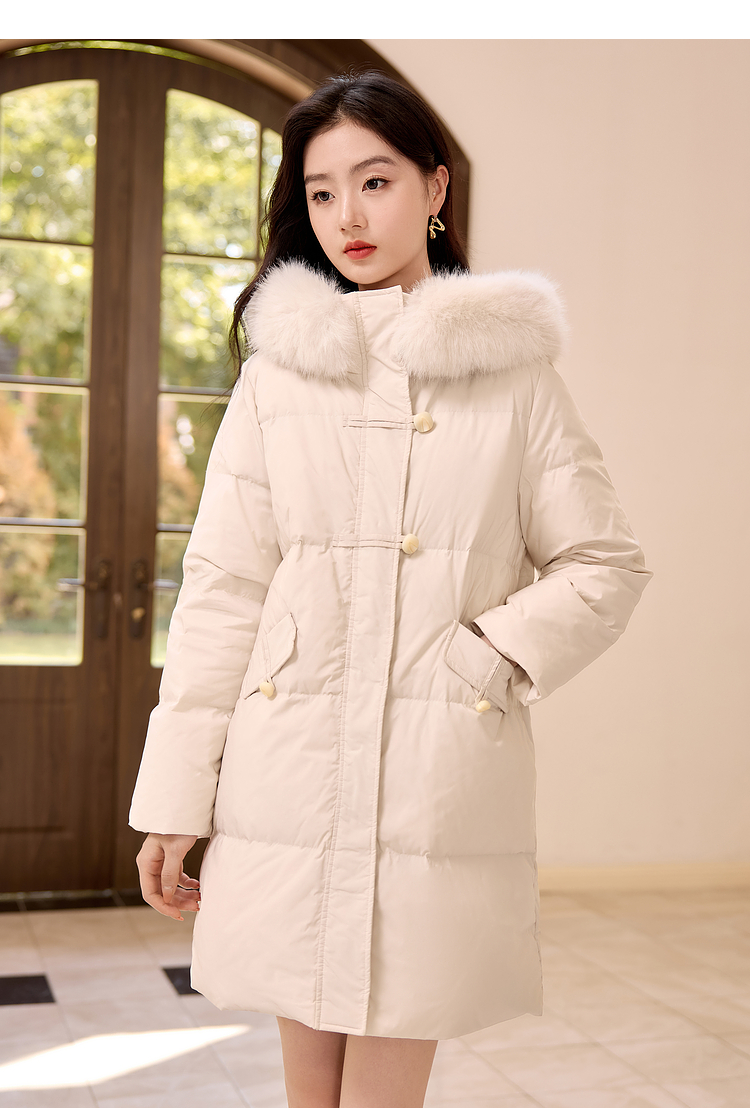 【年终特卖】熙世界羽绒服中长款毛领连帽2025冬季新款保暖防风白鸭绒厚外套