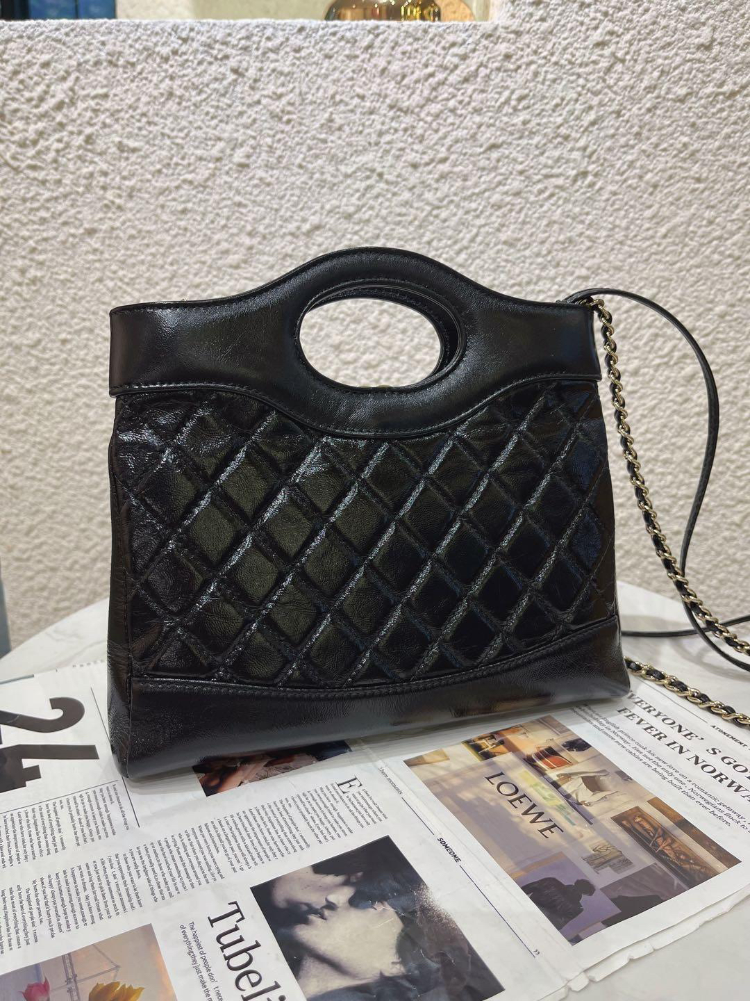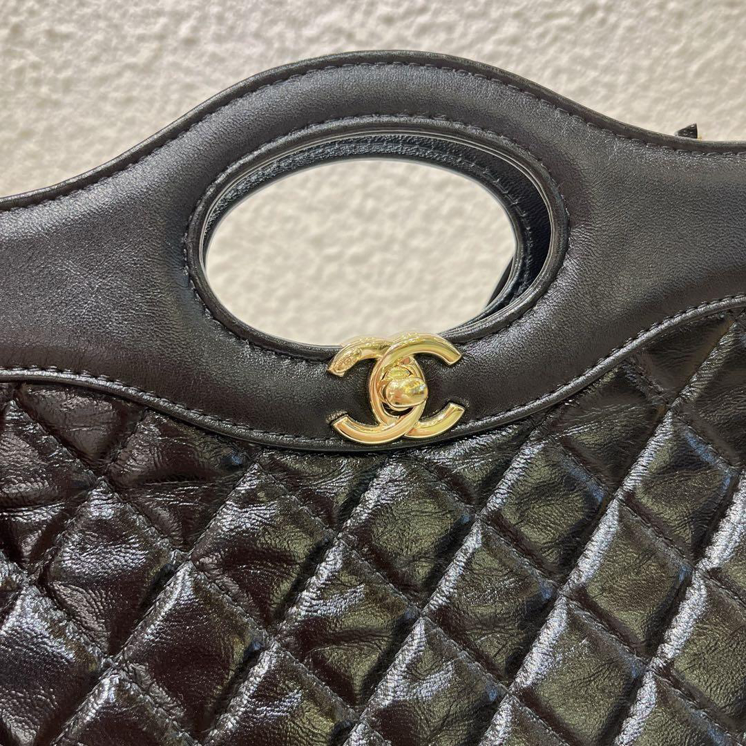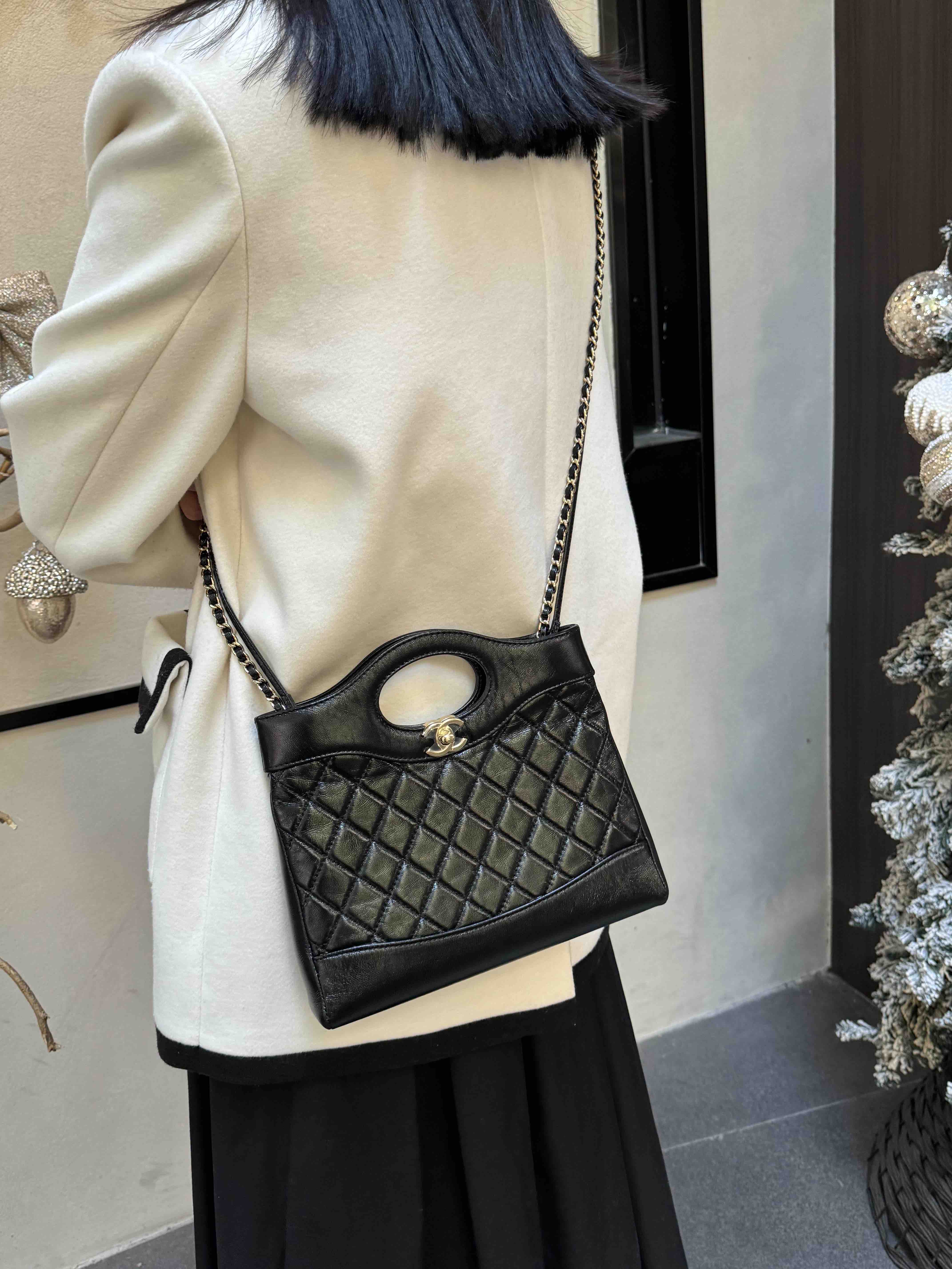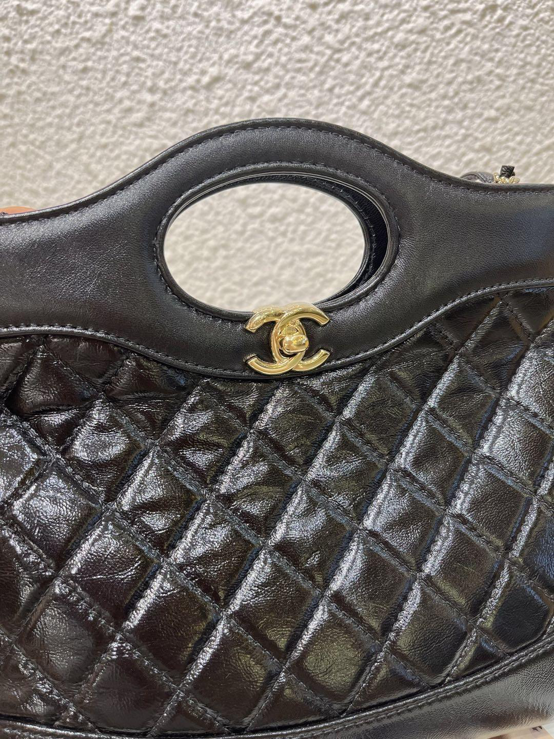 【商品详情】正品二手 Chanel 31bag mini 黑金 油蜡羊皮 链条包 🧳 98新 23×20 新钢标 配件:小票。整体状态非常好 包底一处轻微褶皱 复古气质拿捏