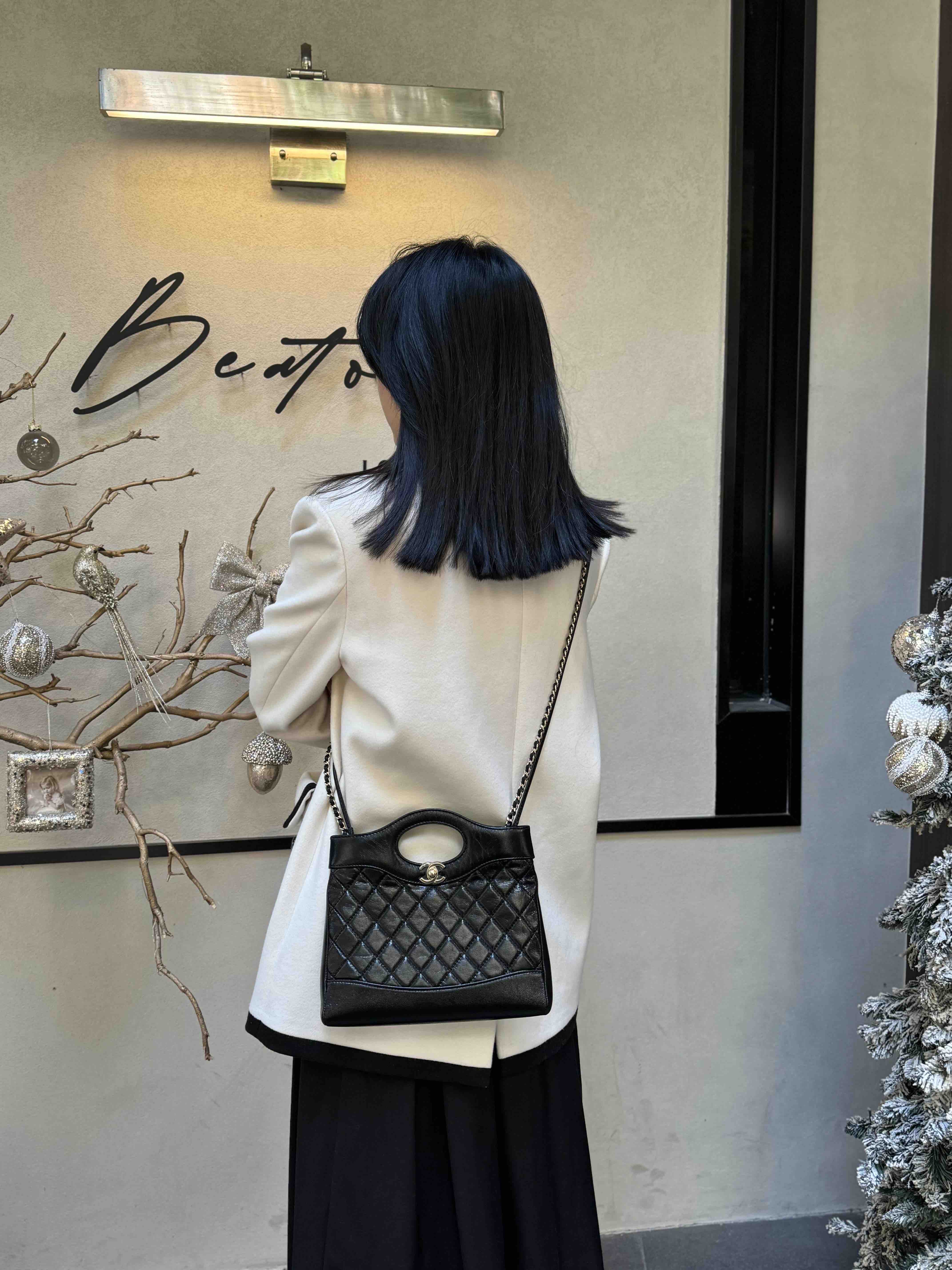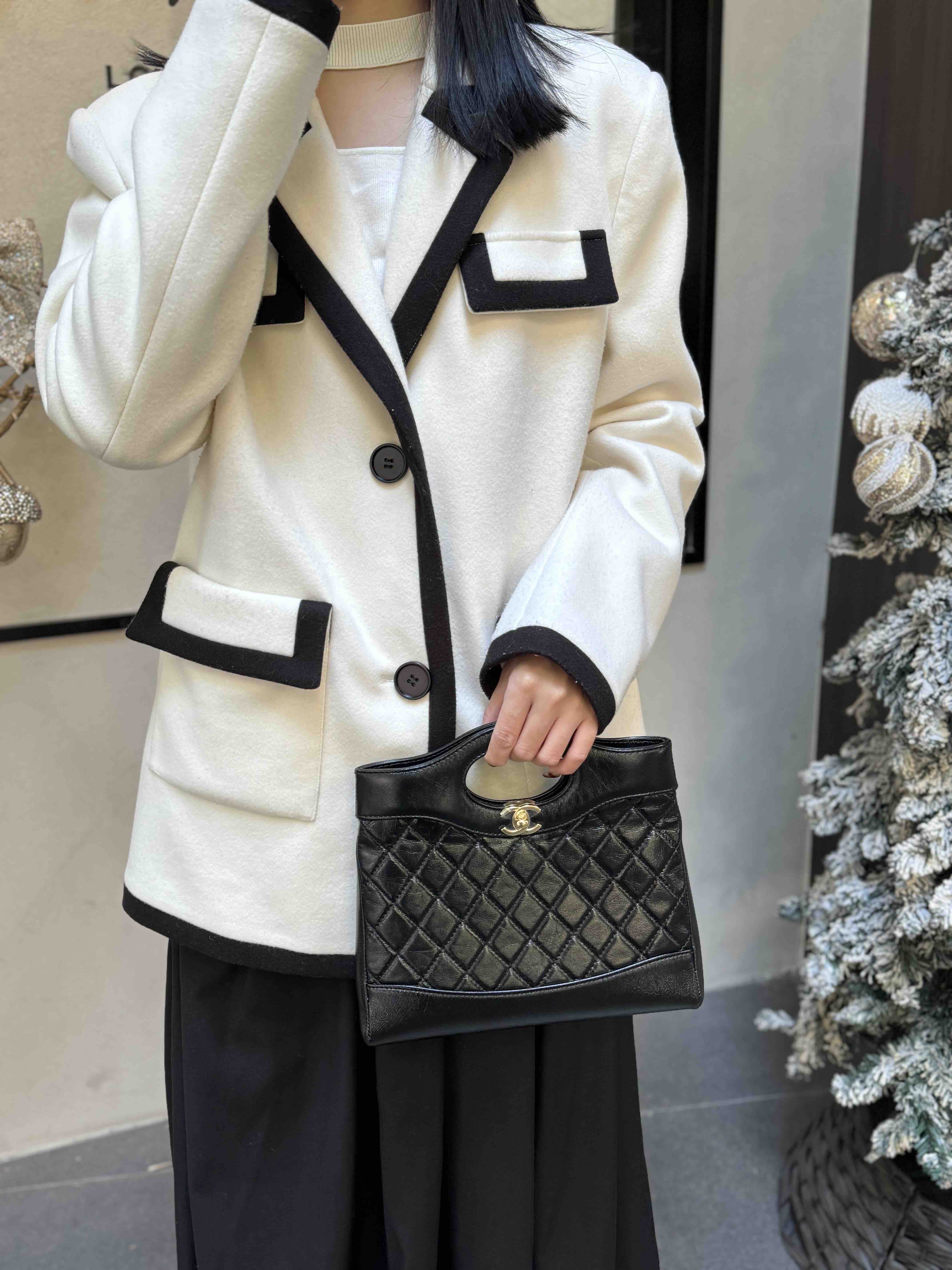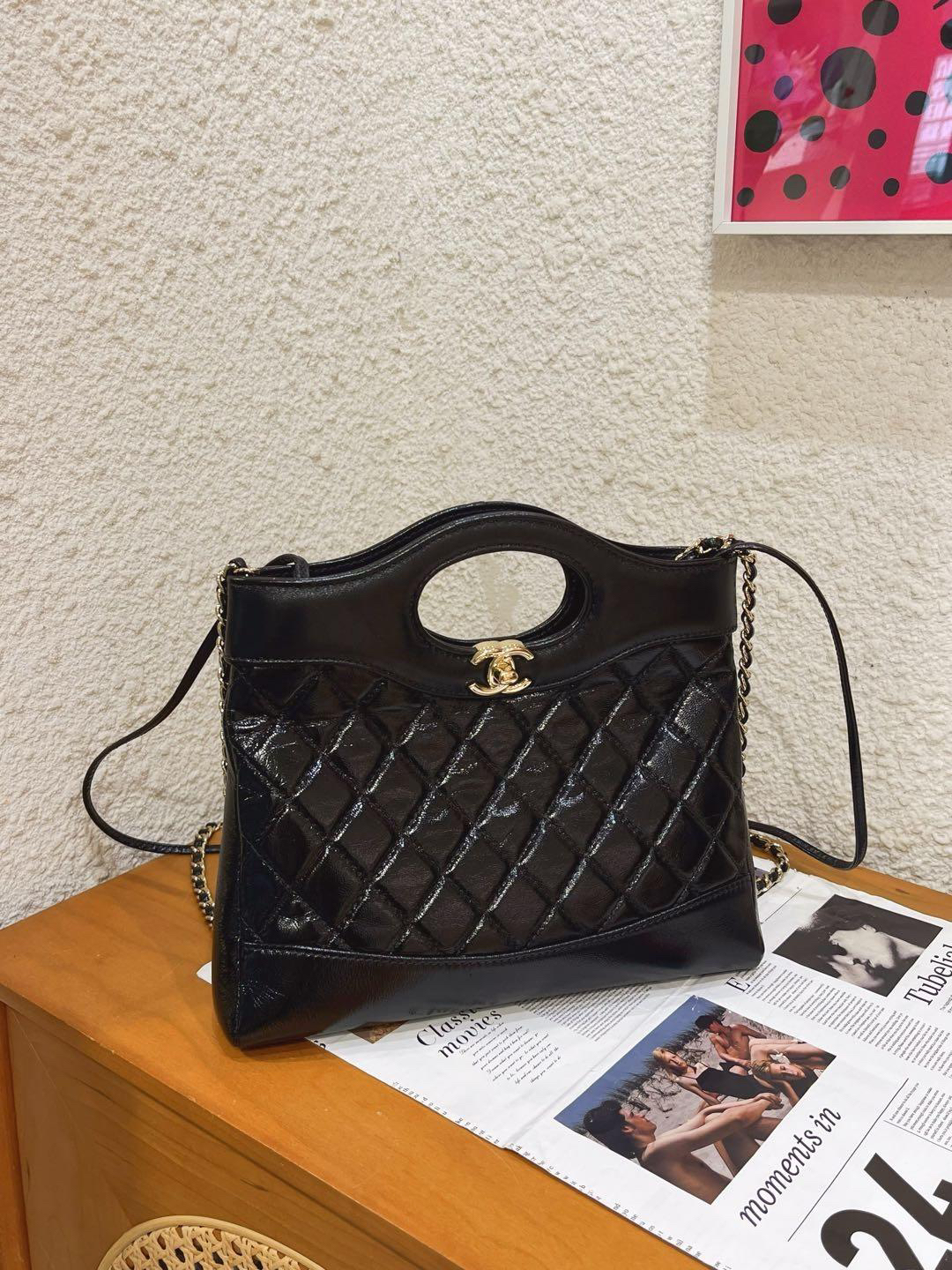 【商品详情】正品二手 Chanel 31bag mini 黑金 油蜡羊皮 链条包 🧳 98新 23×20 新钢标 配件:小票。整体状态非常好 包底一处轻微褶皱 复古气质拿捏