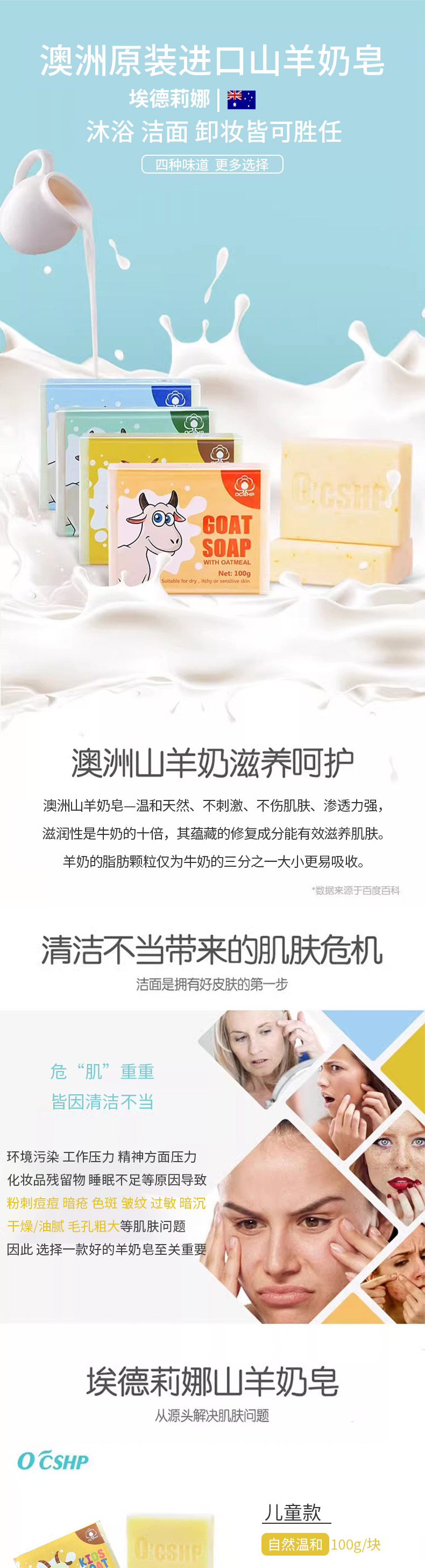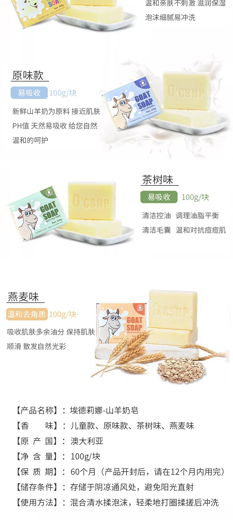 澳大利亚进口埃德莉娜山羊奶皂100g 【原味丨燕麦丨茶树丨儿童款】
