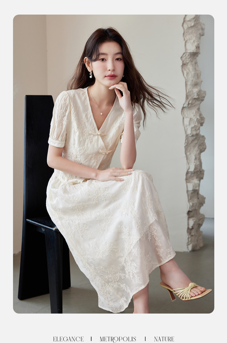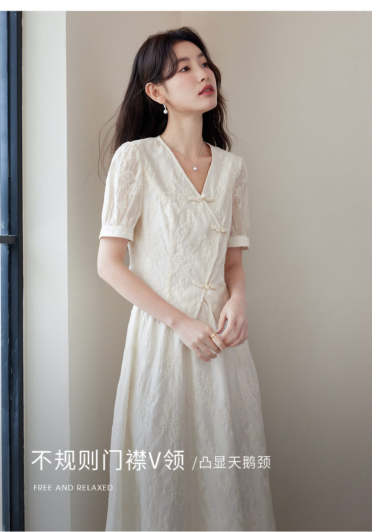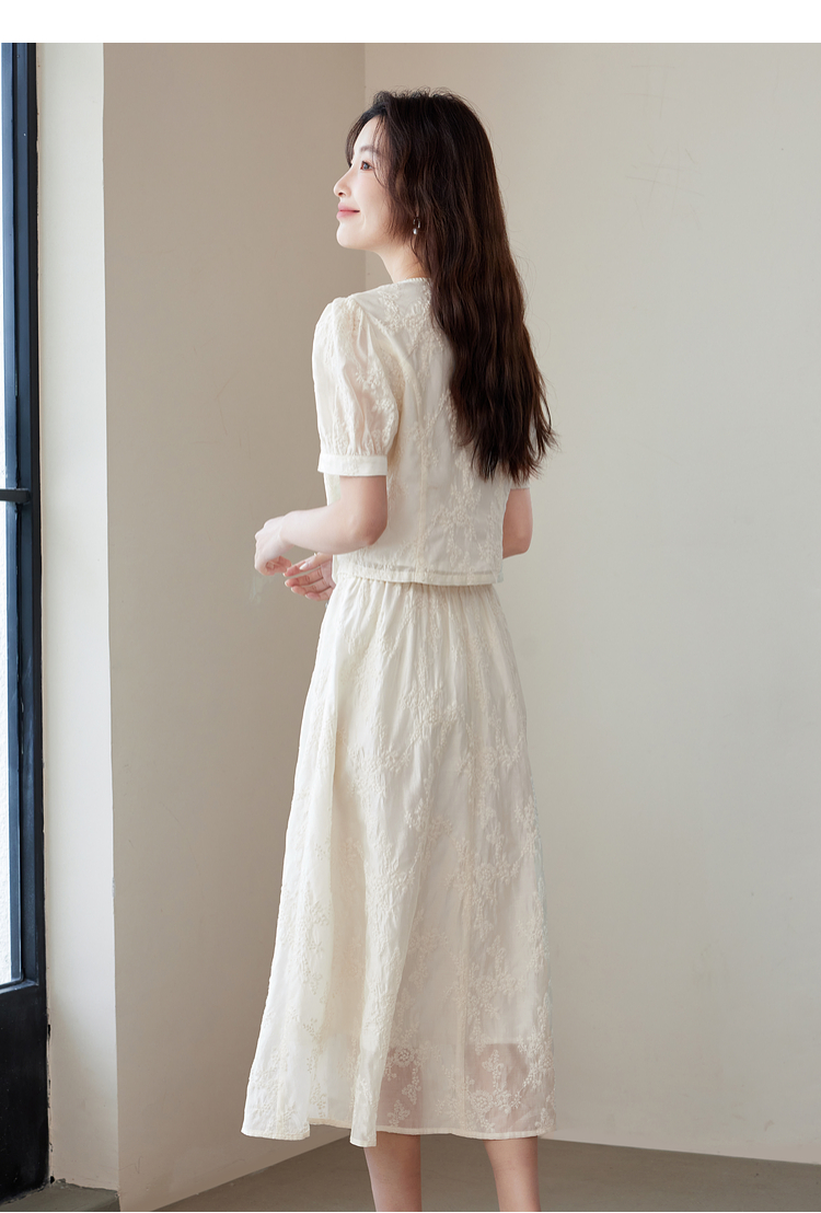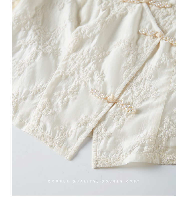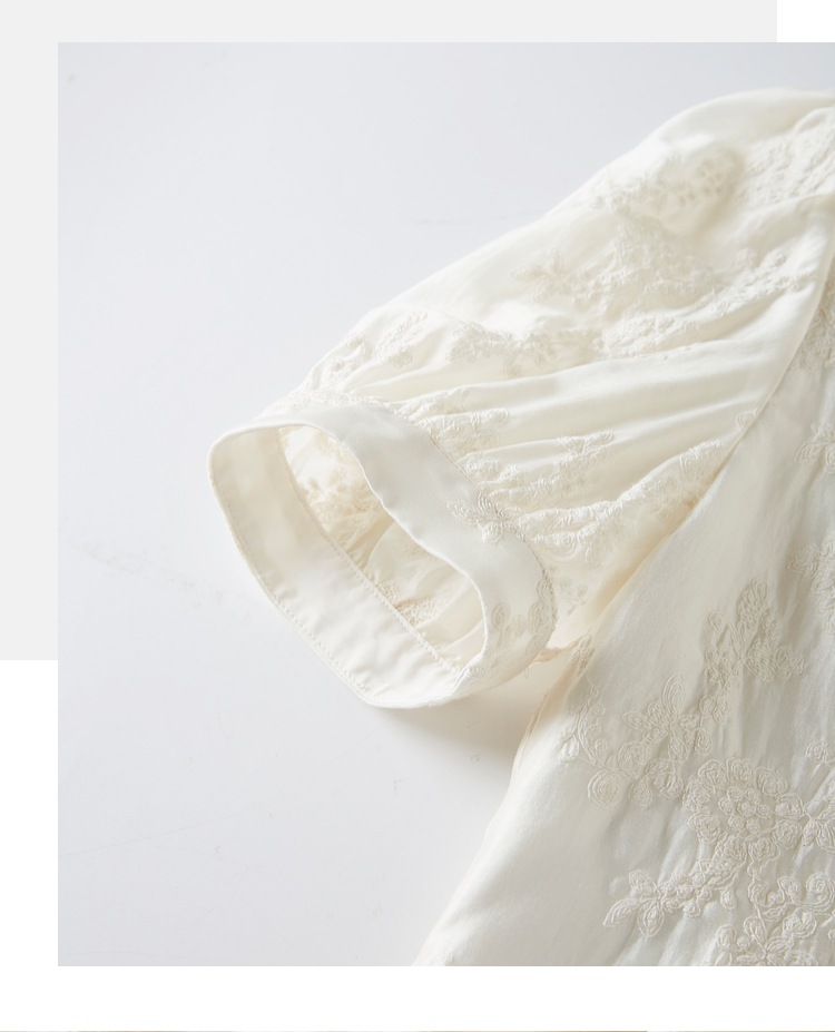 【五折购】熙世界夏款女装天丝新中式V领盘扣刺绣衬衫半身裙两件套装国风