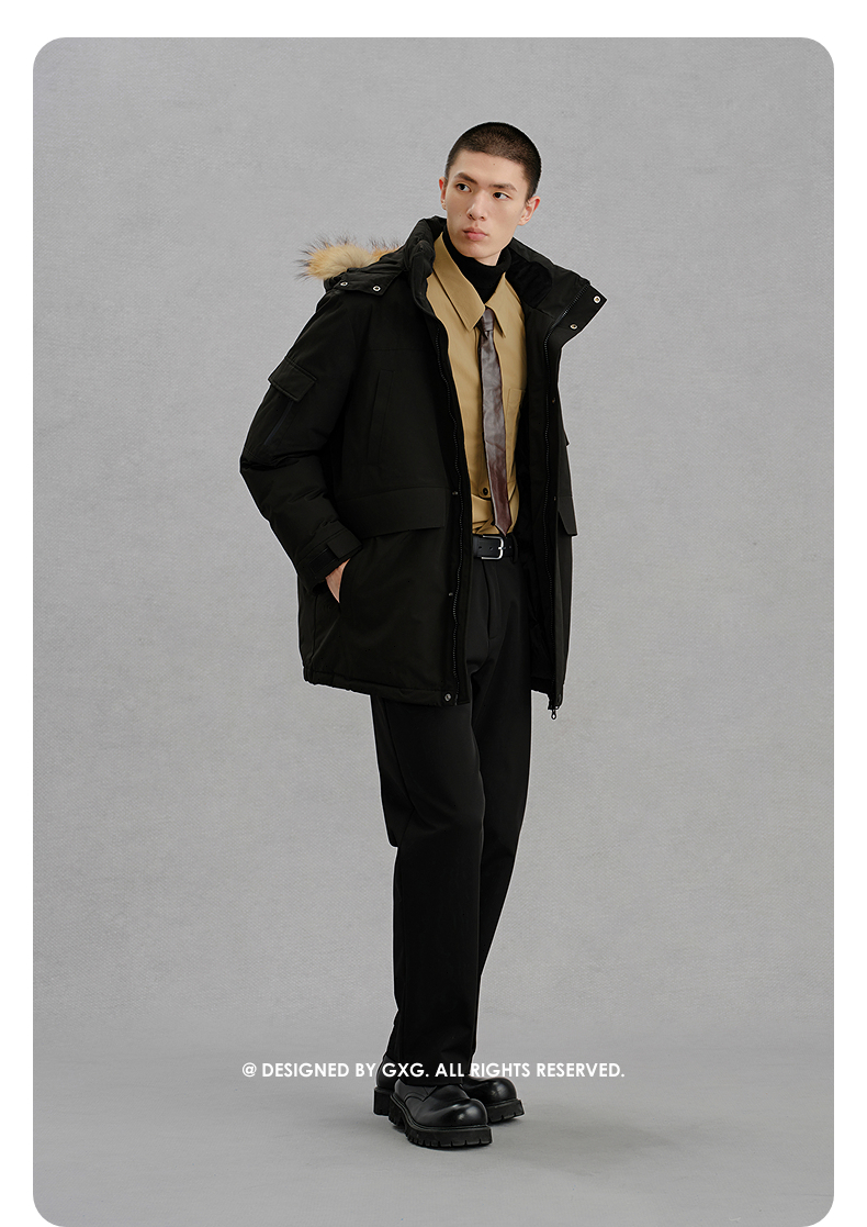 GXG男装 毛领工装羽绒服通勤外套24冬季热卖G24XY34006