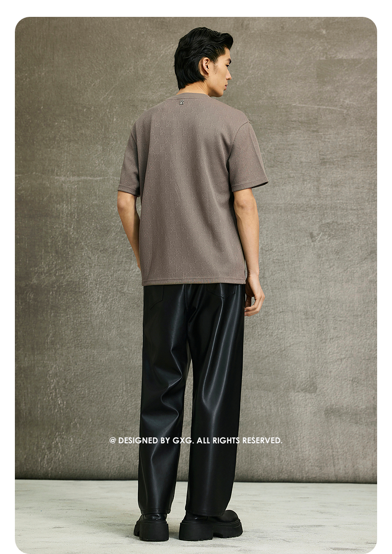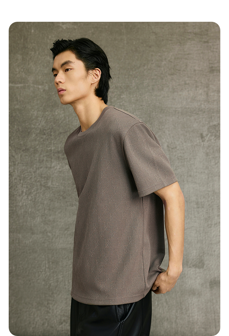 GXG男装 卡其色T恤圆领暗纹提花短袖针织 简约舒适T恤 春季热卖G25X441019
