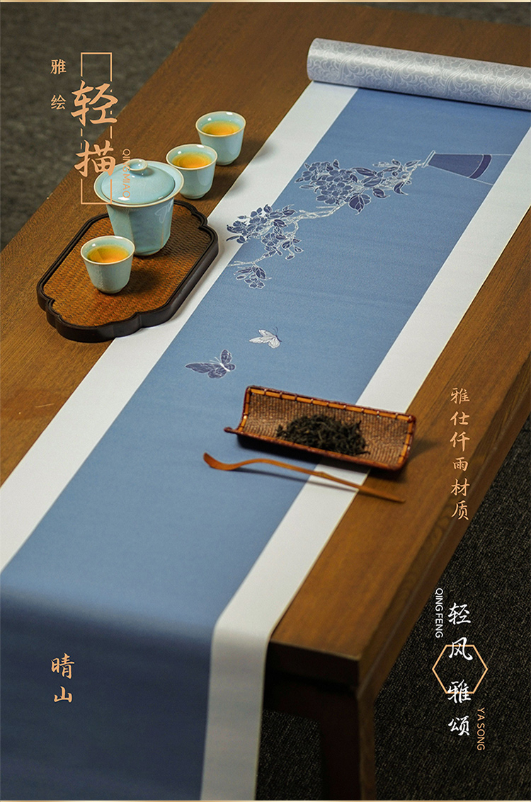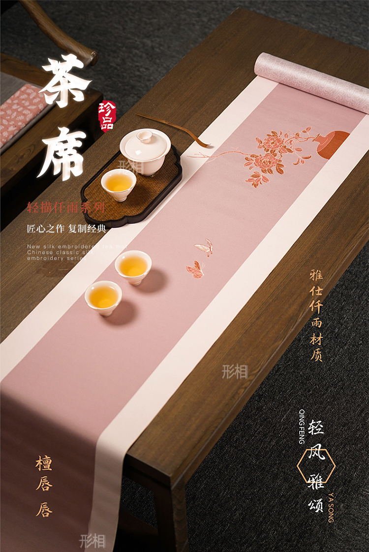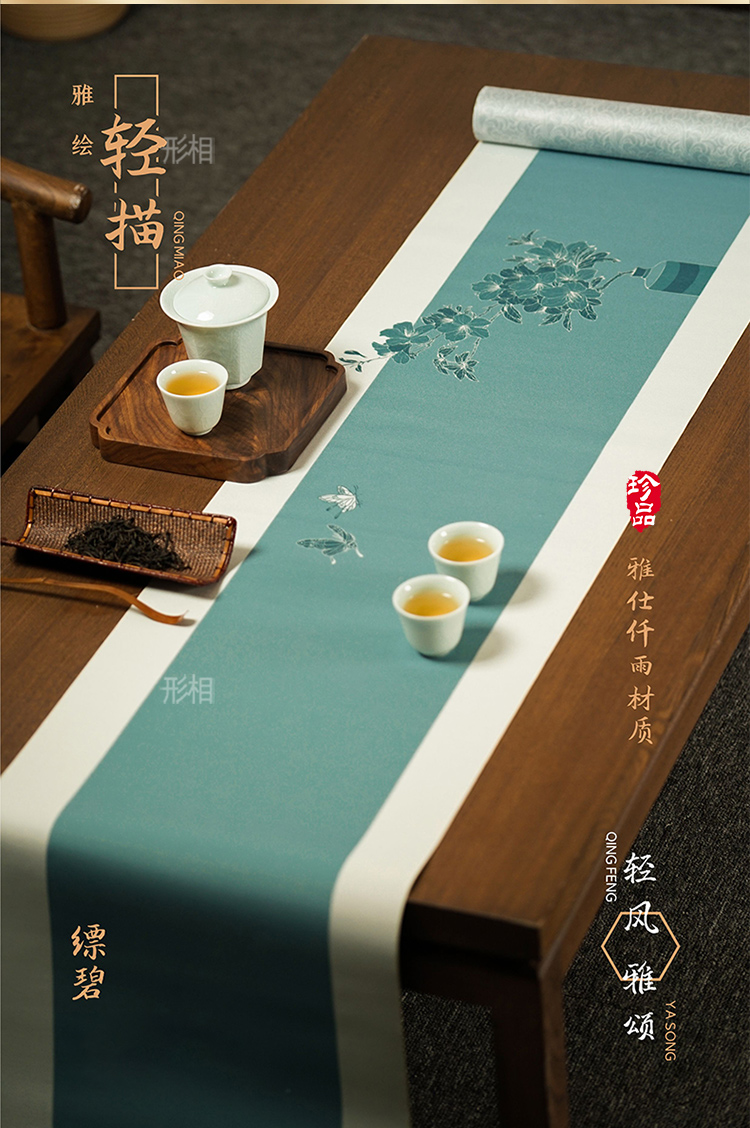 形相茶席 轻描素绘 春夏新品防水防滑套装禅意中国风可裁剪茶台布桌旗新中式