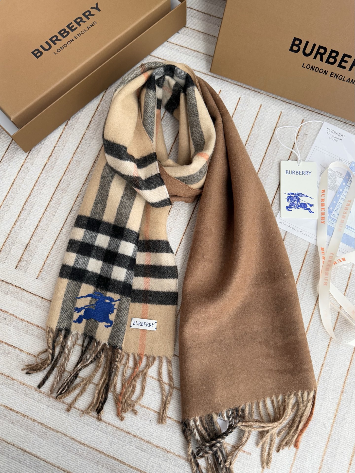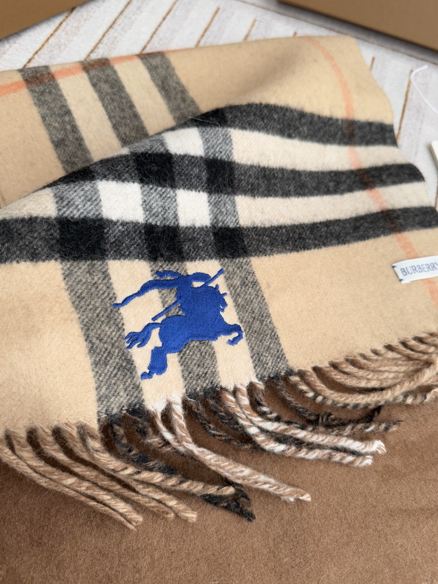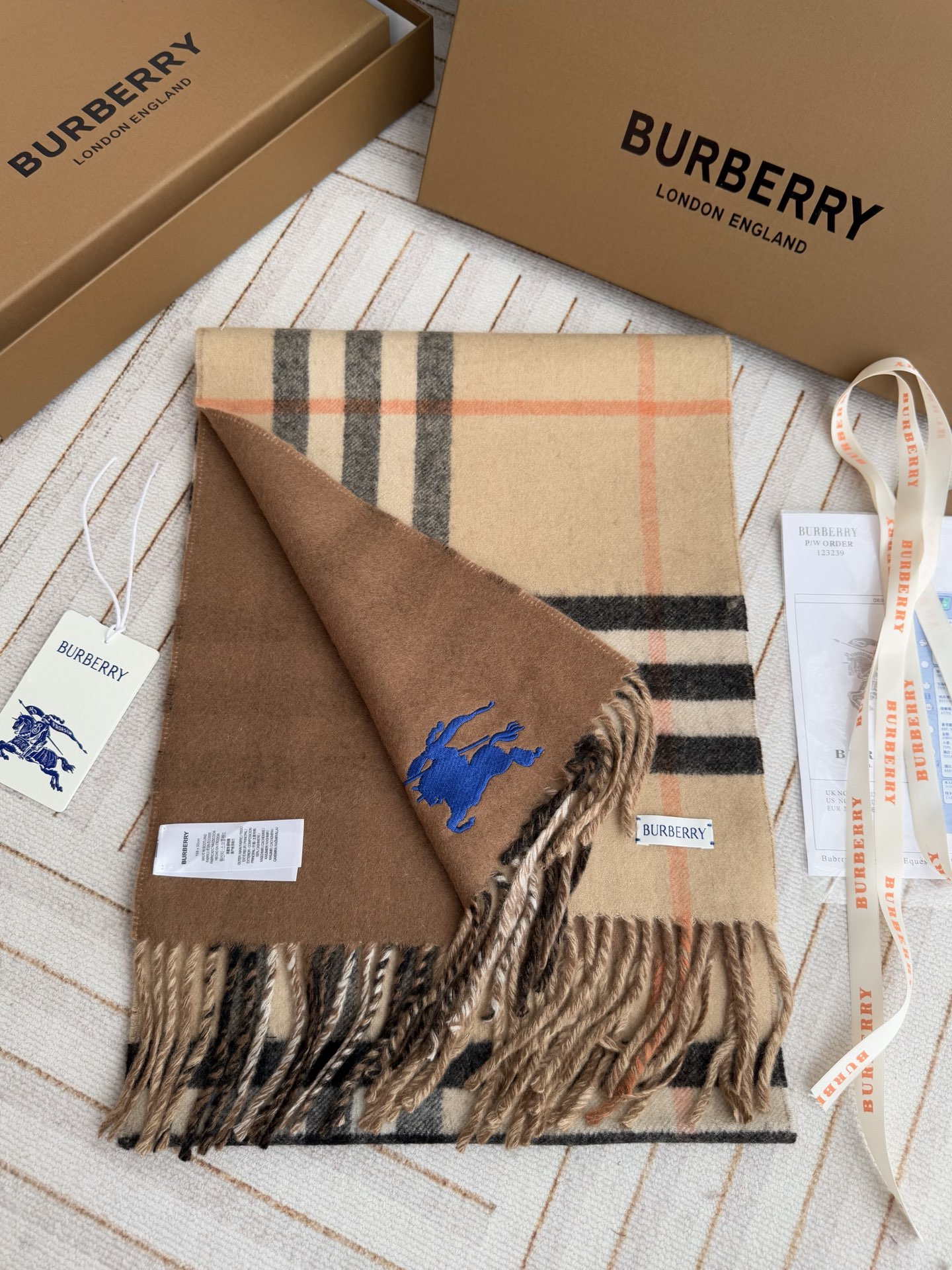 【代购级 出入专柜无压力】Burberry双面羊绒围巾 经典的格纹配上战马提花 超显气质和高级 不过时的一款~
