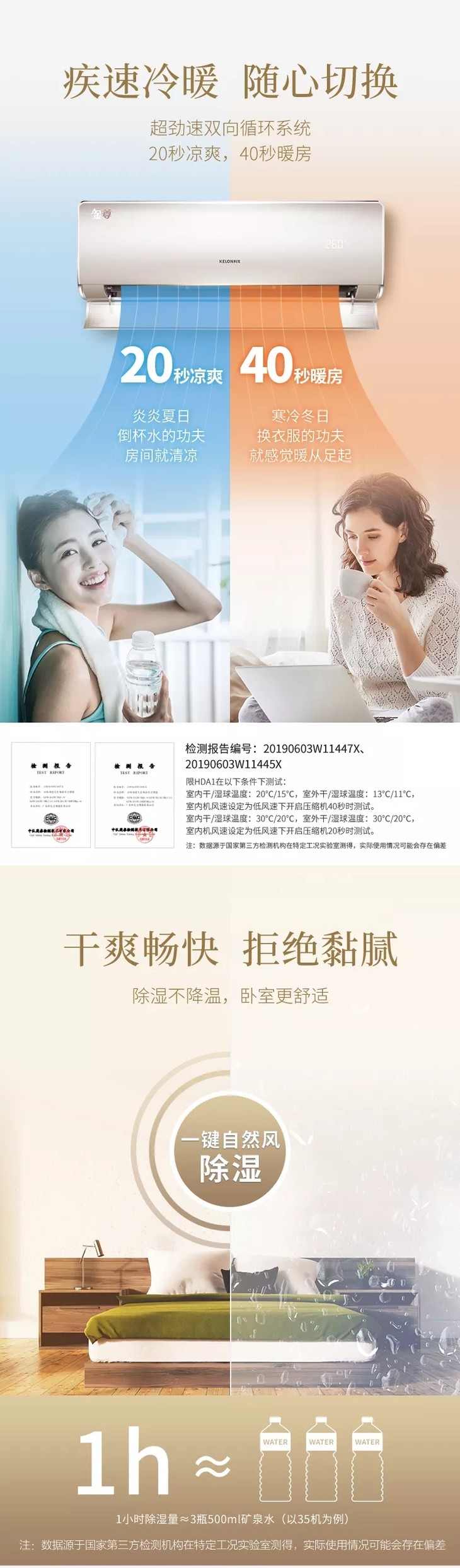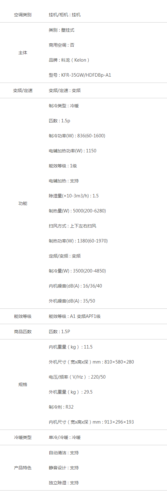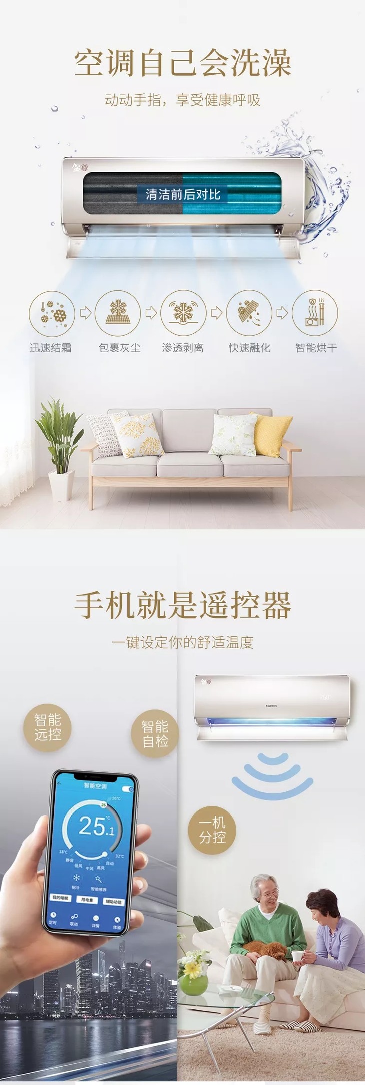 科龙 空调 KFR-35GW/HDFDBp-A1(1P80) 1.5P ESO变频技术 冷暖 挂机 柔风睡眠空调 炫L系