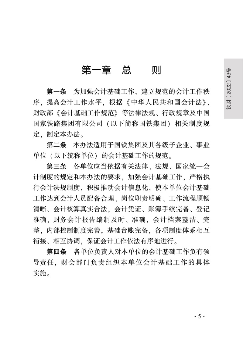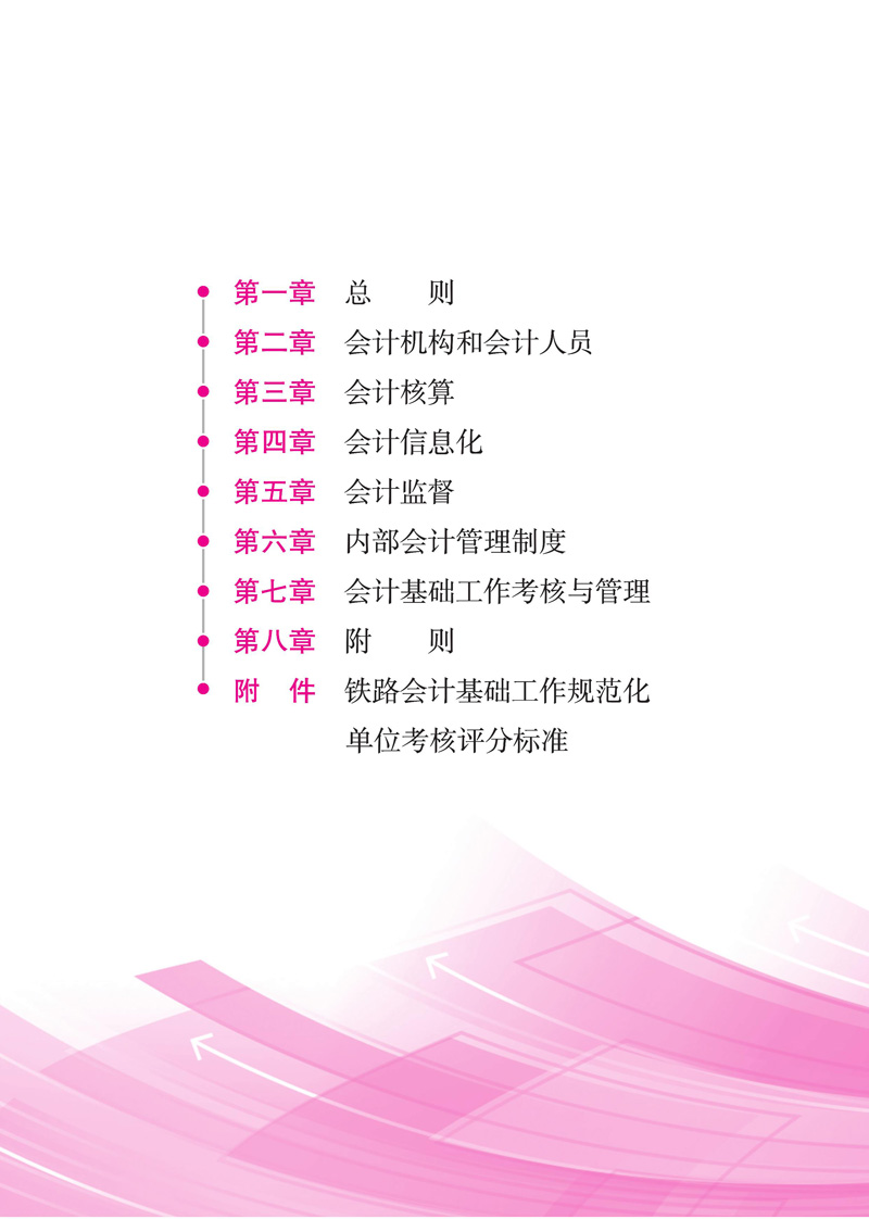 本书以《中国国家铁路集团有限公司会计基础工作规范实施办法》《铁路企业会计凭证、会计账簿统一格式及使用说明》《中国国家铁路集团有限公司会计档案管理实施办法》为主体,汇集了《中华人民共和国会计法》《企业财务会计报告条例》《总会计师条例》《中华人民共和国票据法》等与会计基础工作直接相关的法规制度,以方便广大铁路会计工作人员日常工作使用。其中,《中国国家铁路集团有限公司会计基础工作规范实施办法》包括总则、会计机构和会计人员、会计核算、会计信息化、会计监督、内部会计管埋制度、会计基础工作考核与管理和附则八章,并附铁路会计基础工作规范化单位考核评分标准。