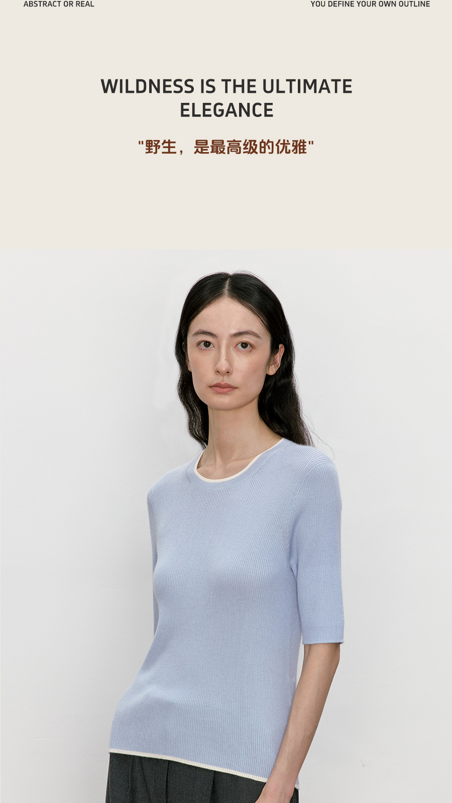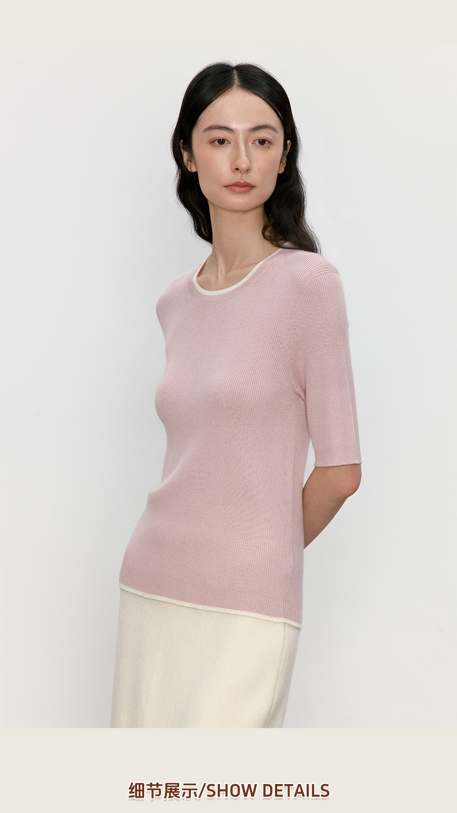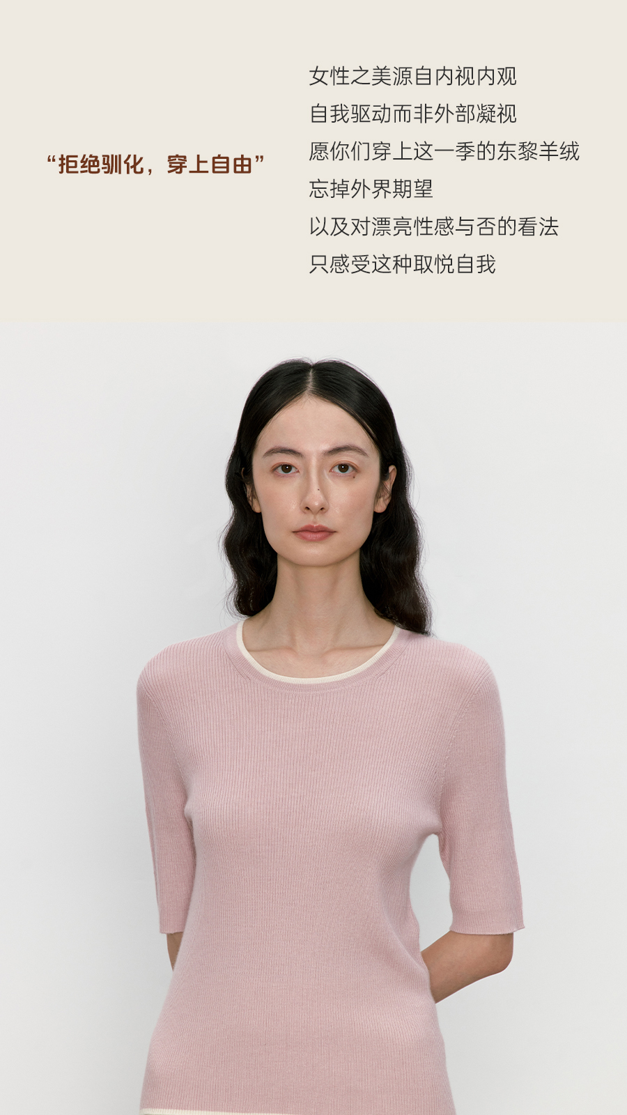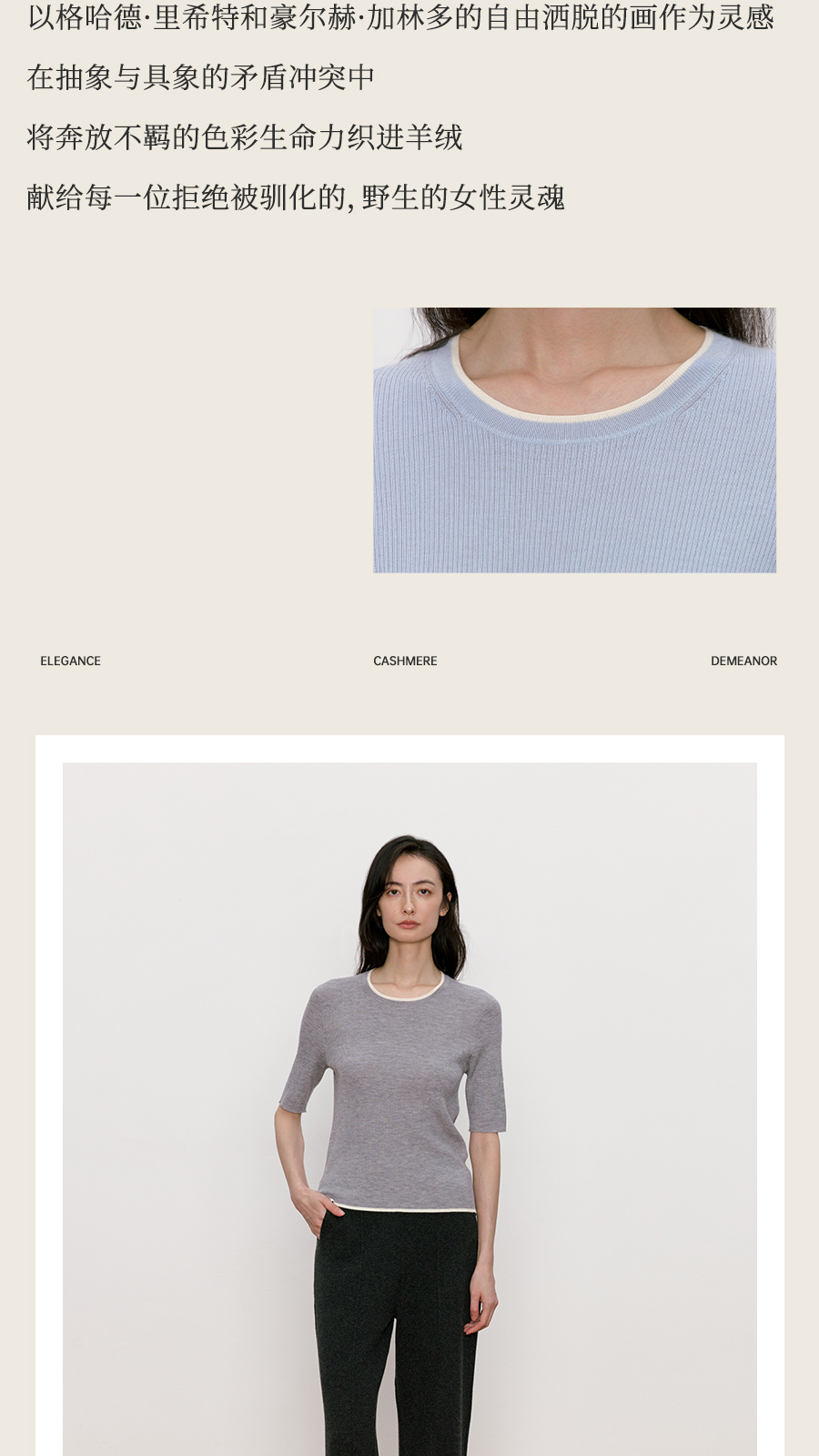 东黎 • 我不被驯化 柔律 山羊绒桑蚕丝女士撞色边圆领半袖 5392