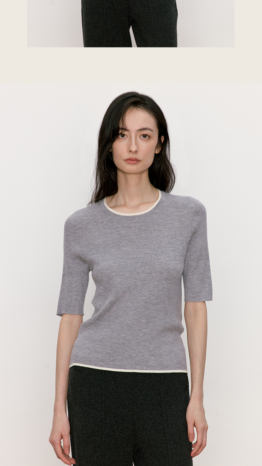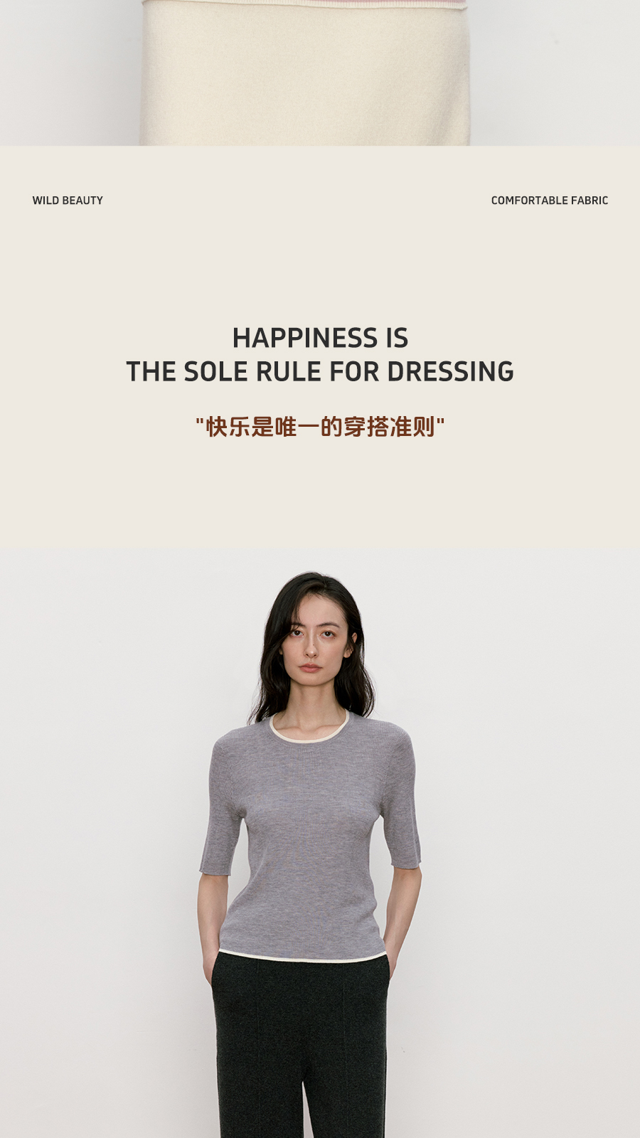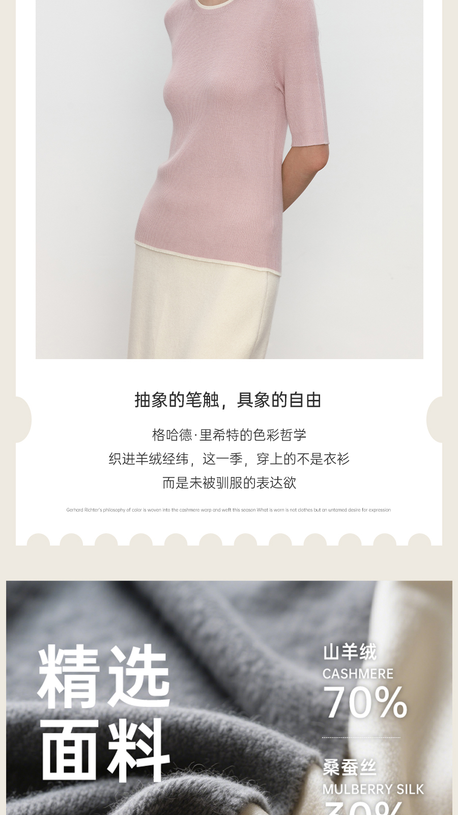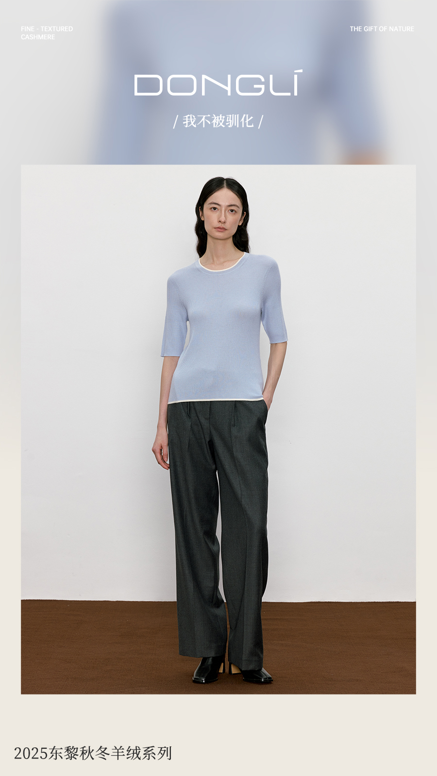 东黎 • 我不被驯化 柔律 山羊绒桑蚕丝女士撞色边圆领半袖 5392