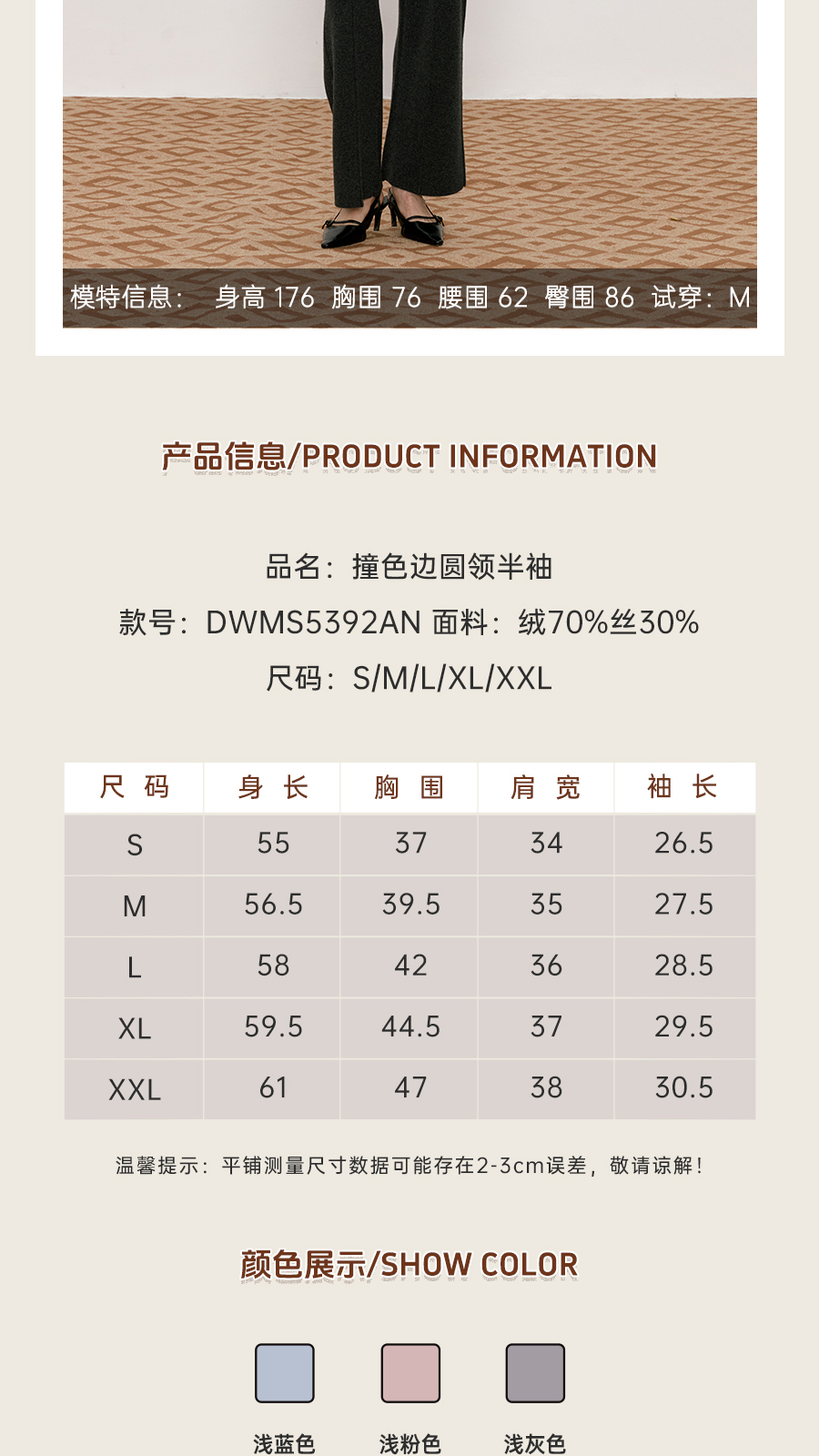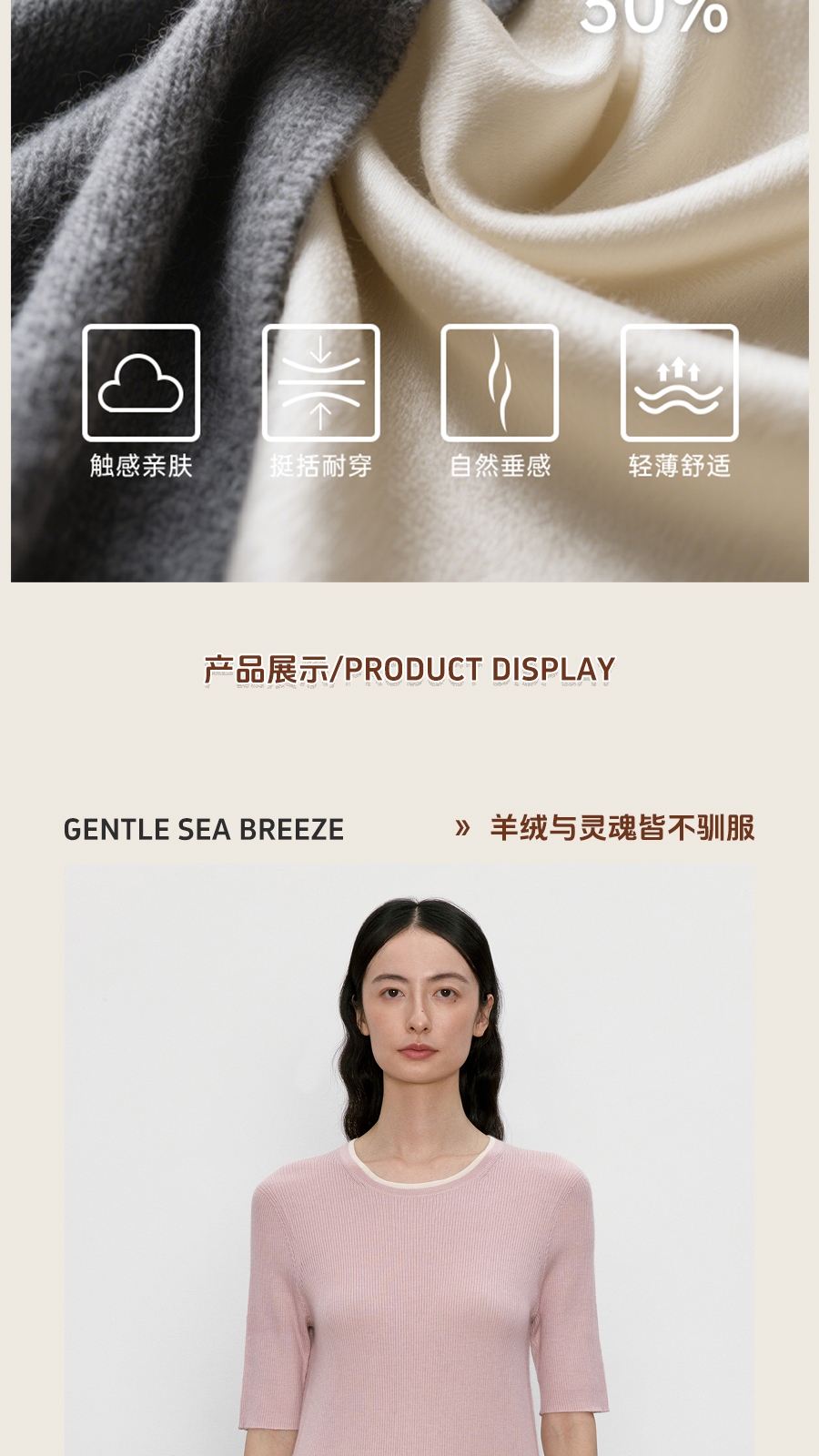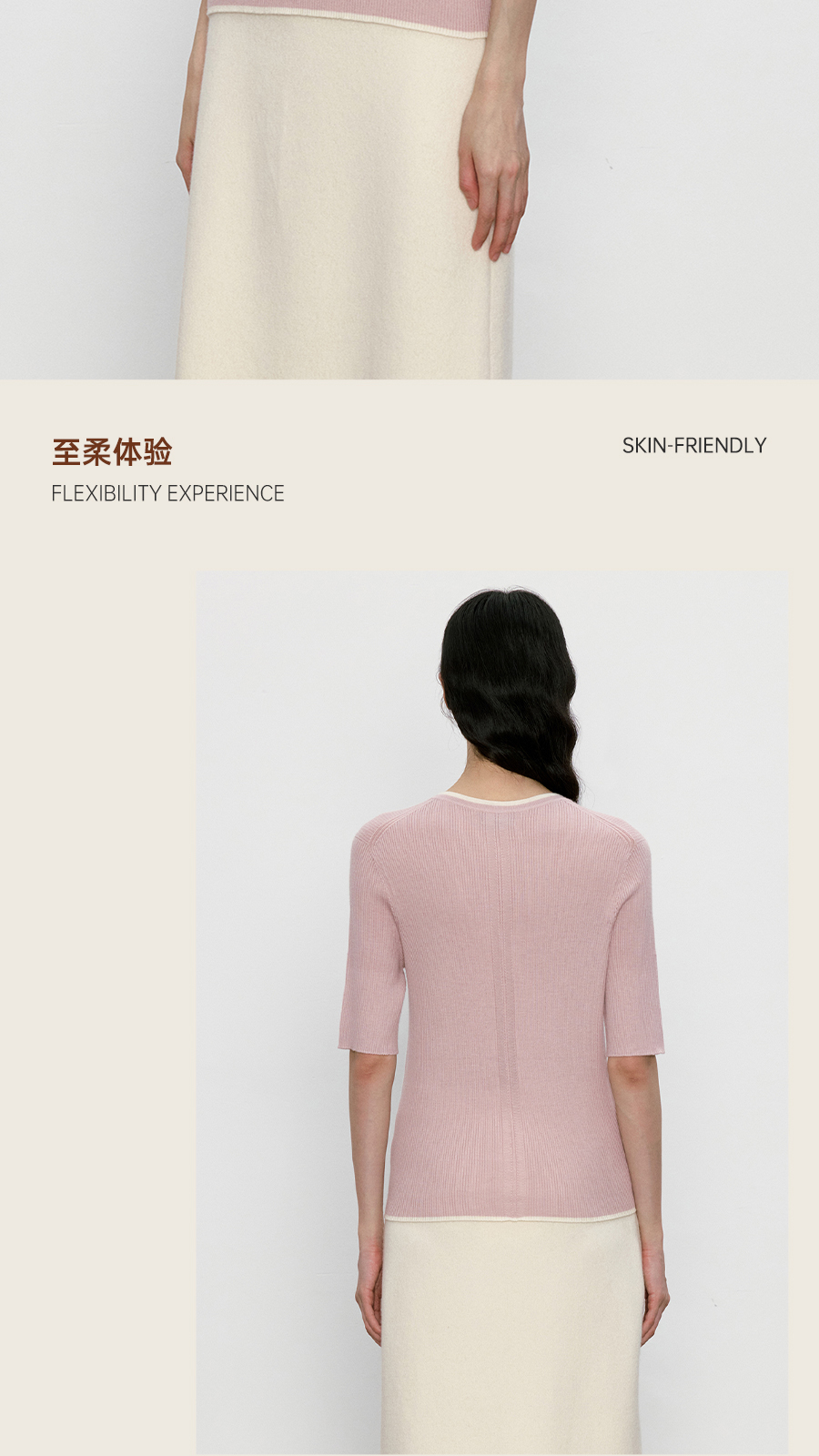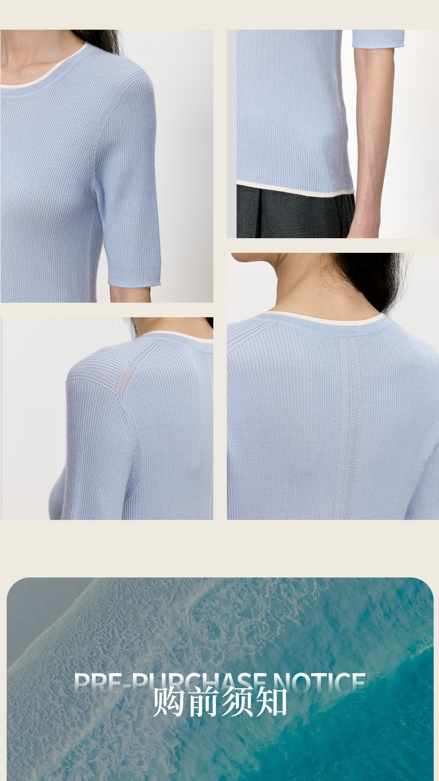 东黎 • 我不被驯化 柔律 山羊绒桑蚕丝女士撞色边圆领半袖 5392