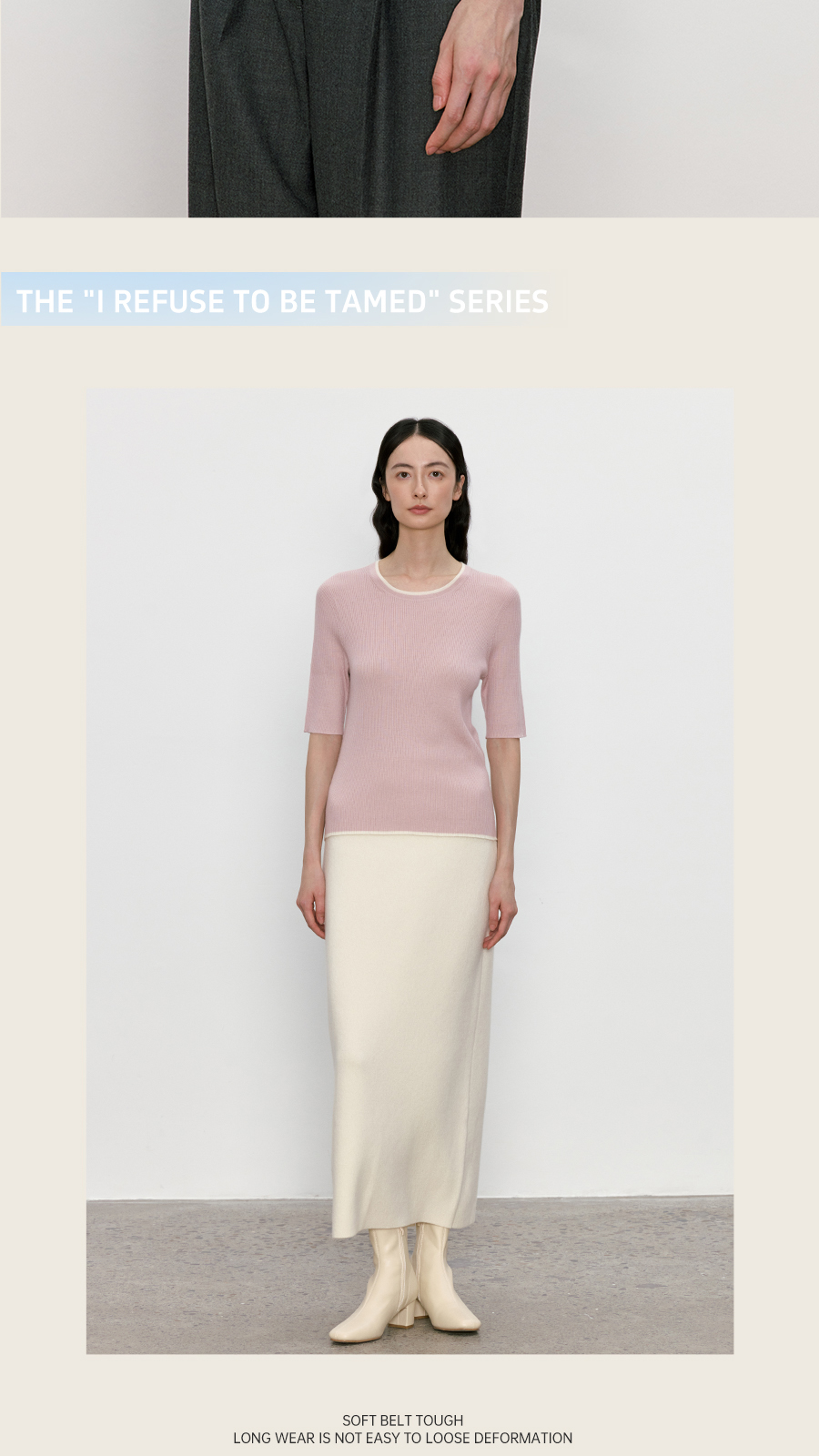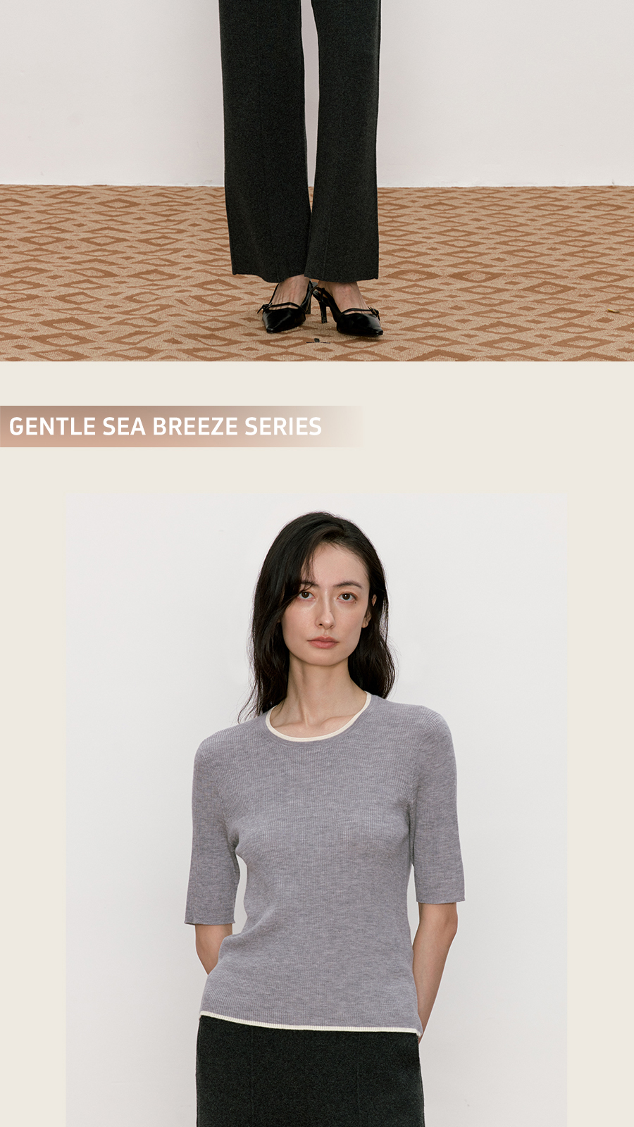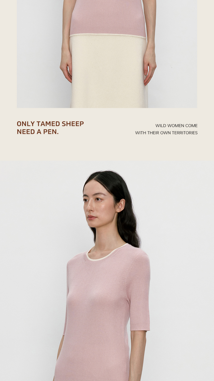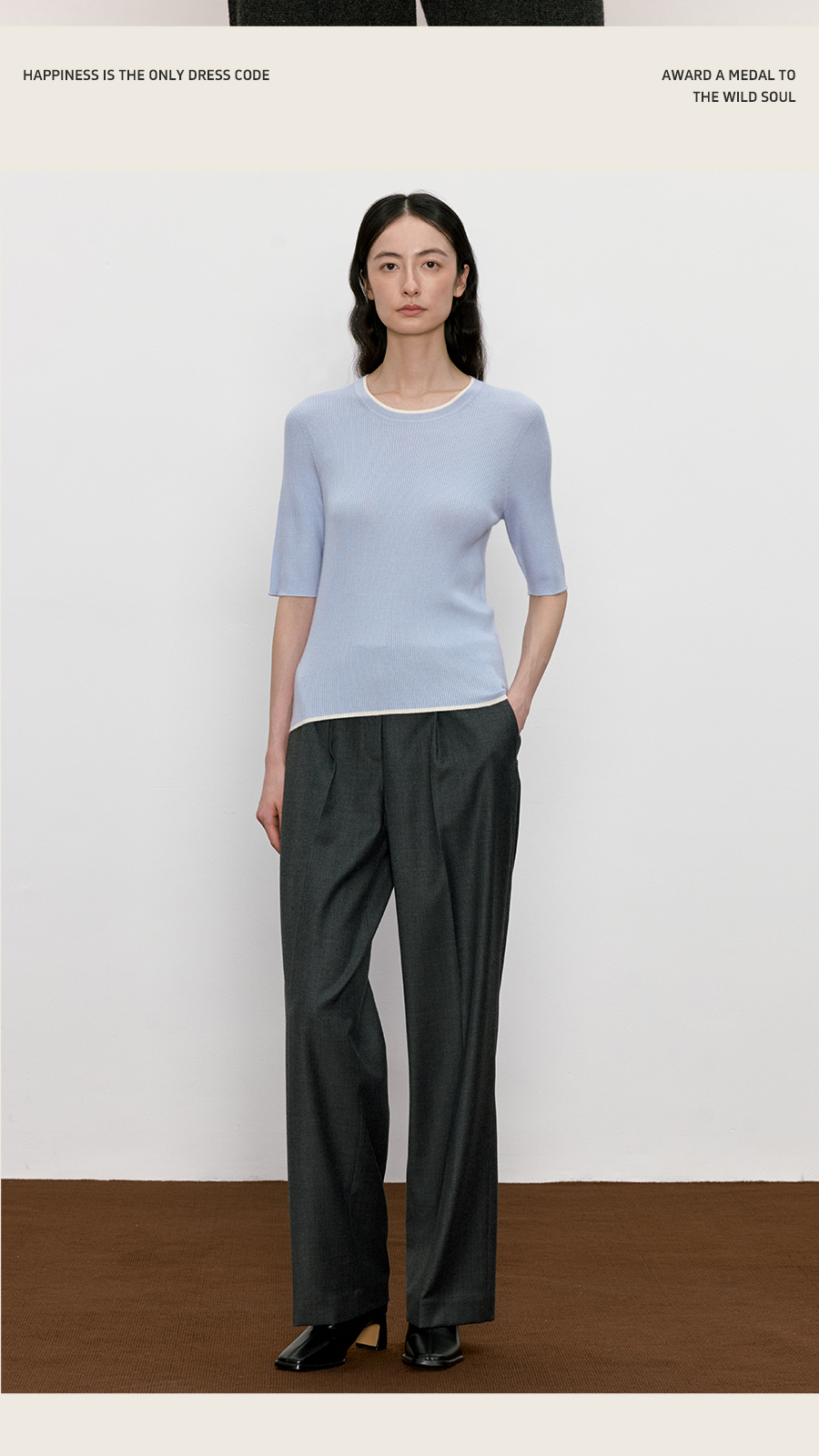 东黎 • 我不被驯化 柔律 山羊绒桑蚕丝女士撞色边圆领半袖 5392
