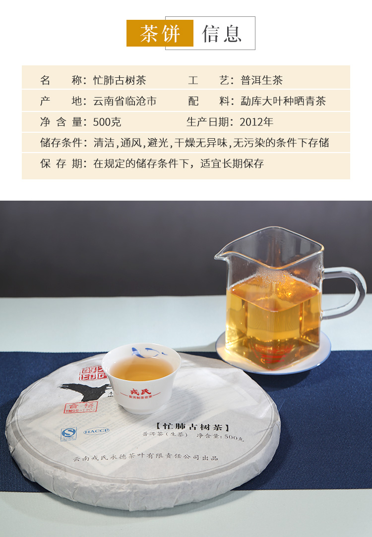 生普丨勐库戎氏 2012年 忙肺古树茶 500g