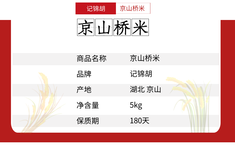 (乡村振兴商品)记锦胡大米5000g  商品图0